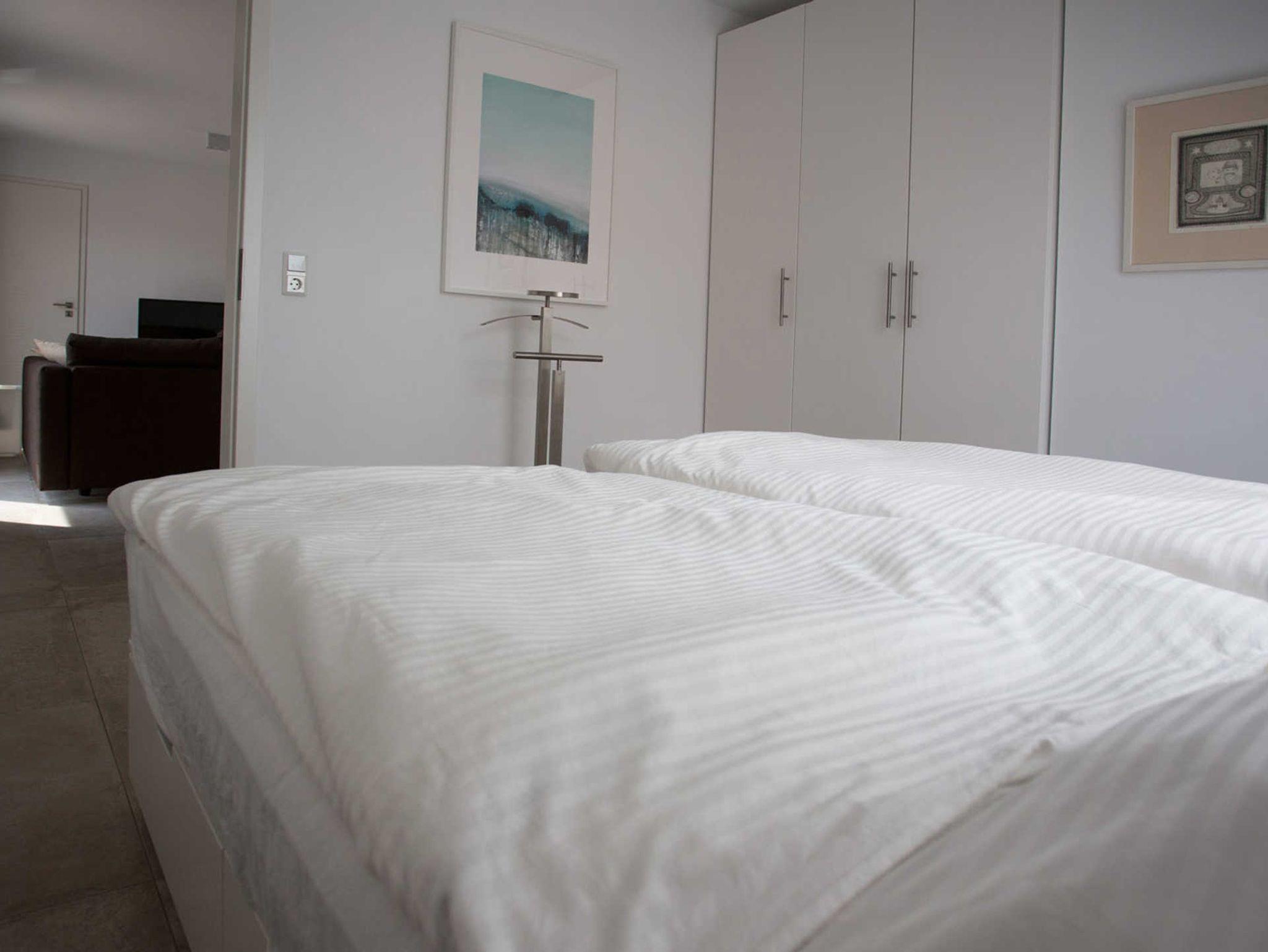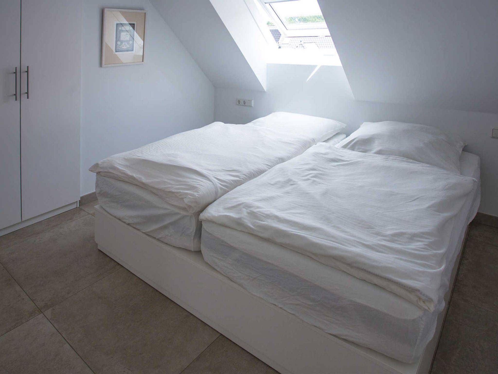 Die beiden Schlafzimmer sind mit je einem Doppelbett (1,80m x 2,00m) und mit Bettwäsche und Handtücher ausgestattet. Die Räume lassen sich komplett verdunkeln.