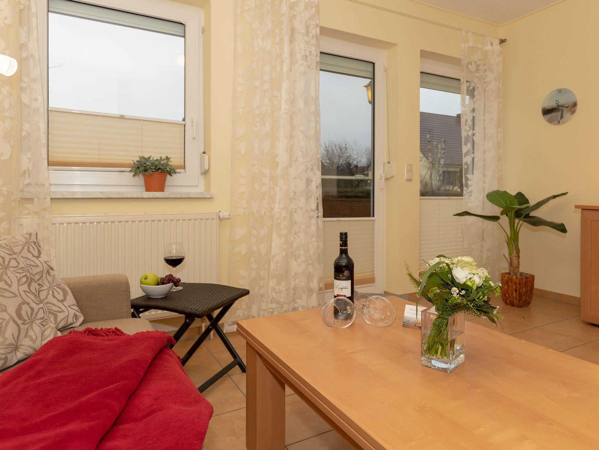 Die Ferienwohnung ist ruhig gelegen. Von dort aus ist alles fußläufig erreichbar. Der Strand, Supermarkt, Bäcker, Restaurants und Fahrradverleihe sind nur wenige Gehminuten entfernt. Ebenso ist es nicht weit zum Busbahnhof und zum Hafen am Salzhaff.