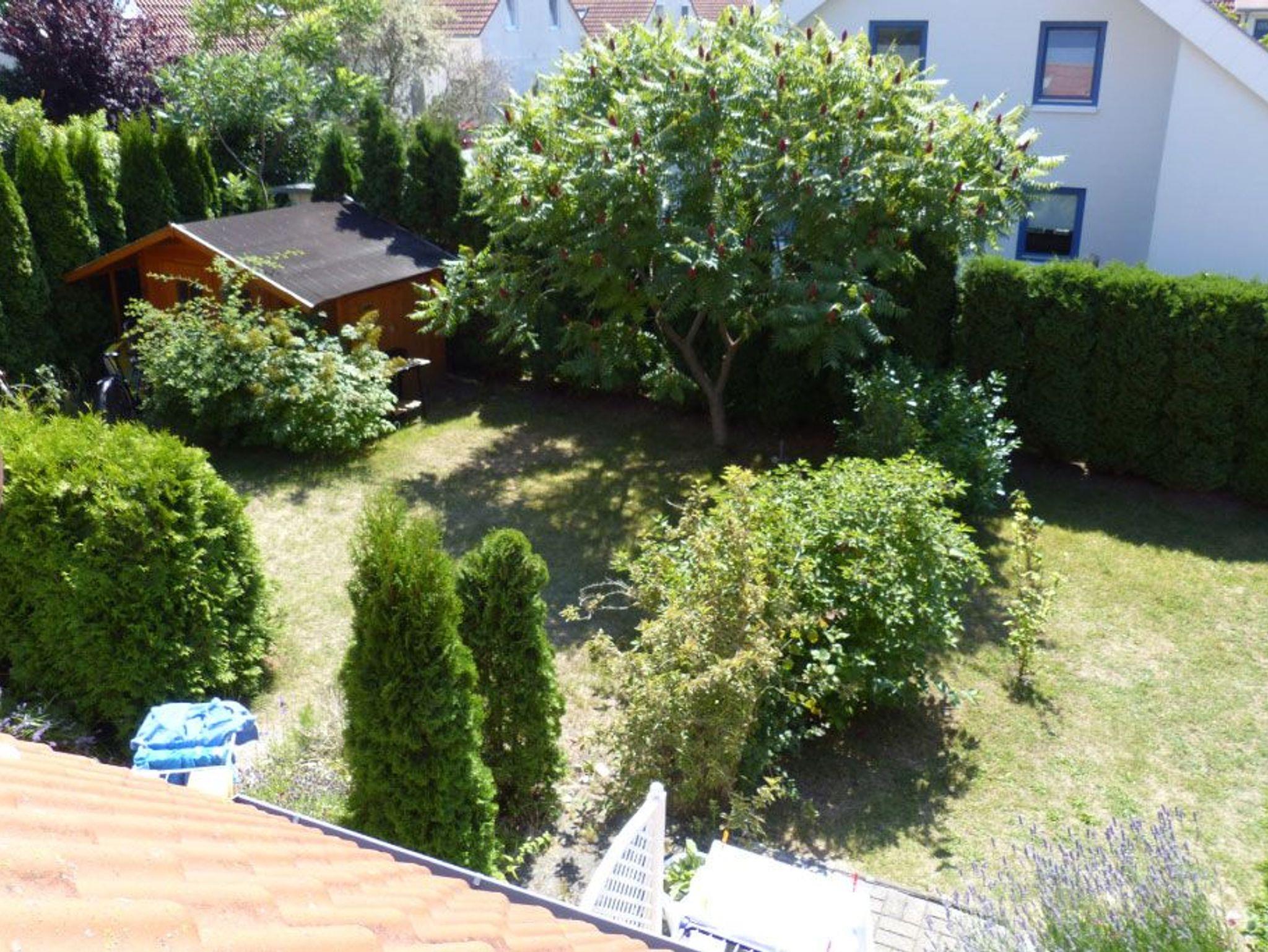 Parkplatz, Fahrradunterstellmöglichkeit, Terrasse mit Sitzmöbeln und Grill, eingezäunter Garten.