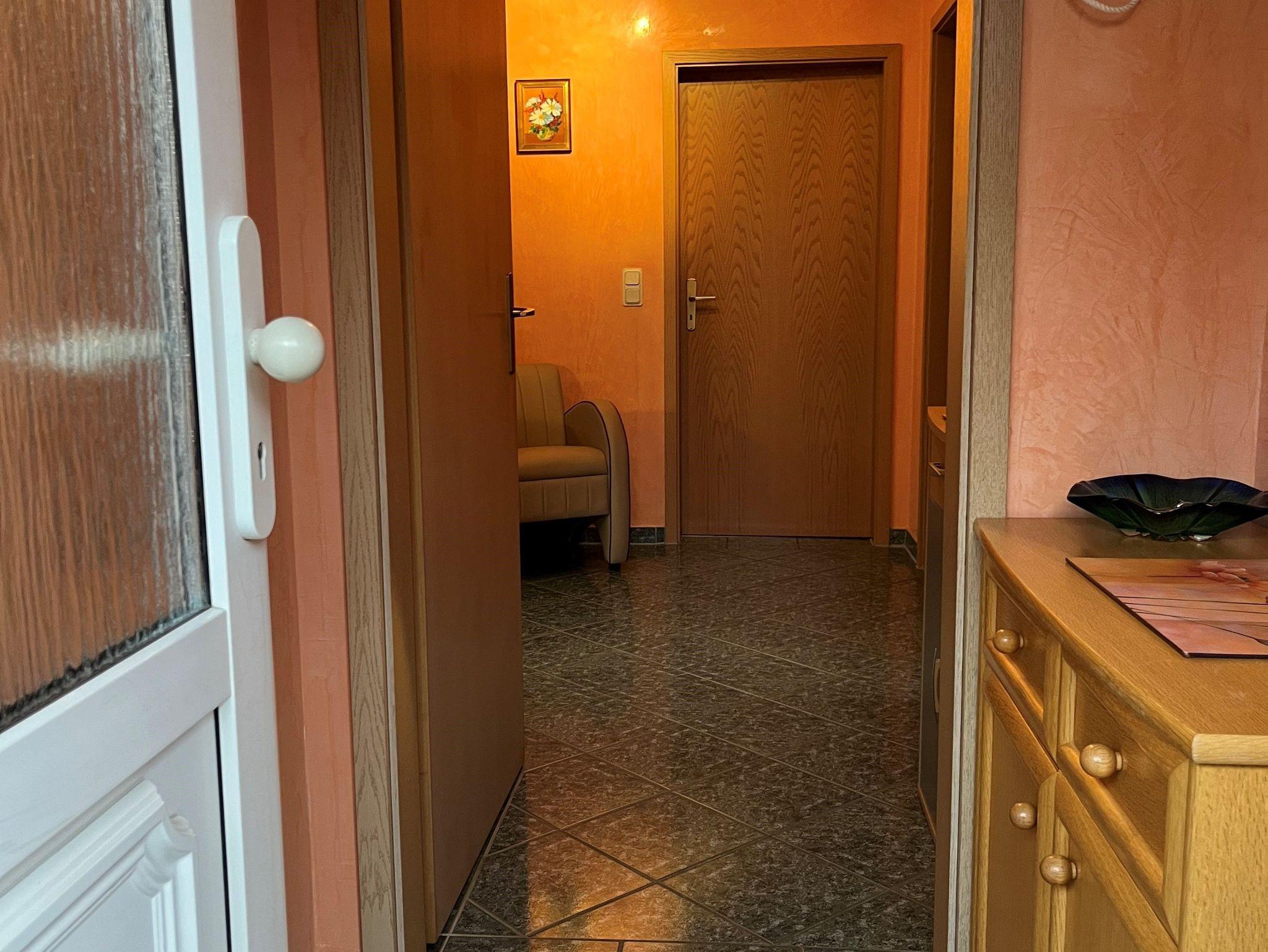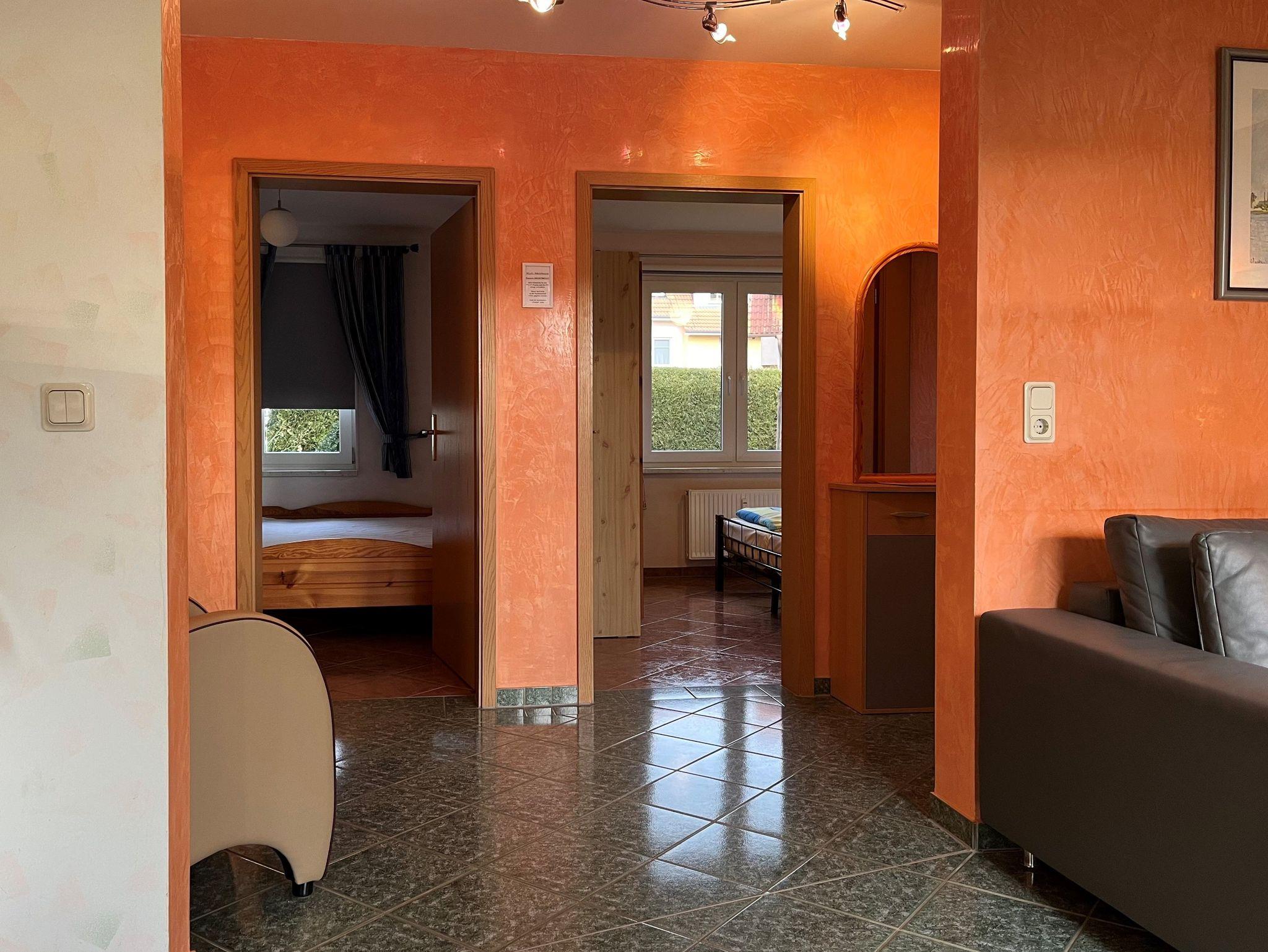 Ebenerdige 3-Raum-Ferienwohnung (65m²; max. 4 Pers. + 1 Baby) mit eingezäuntem Gartengrundstück. Nichtraucherhaus. 1 Haustier willkommen, max. 40cm Schulterhöhe (Gebühr)