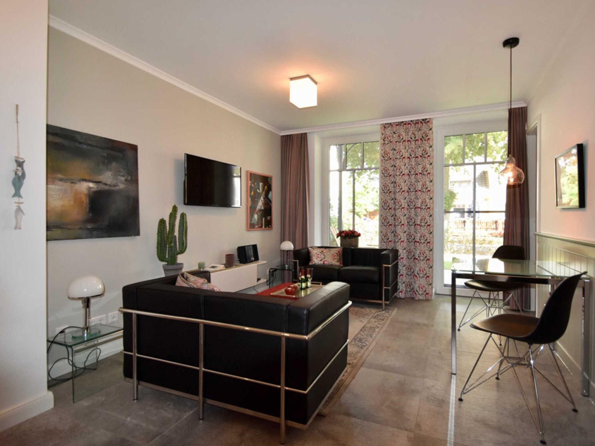 Unsere 42qm große Ferienwohnung ist ebenerdig in einer in den 1920-er Jahren erbauten und 2017/18 komplett sanierten Villa gelegen.