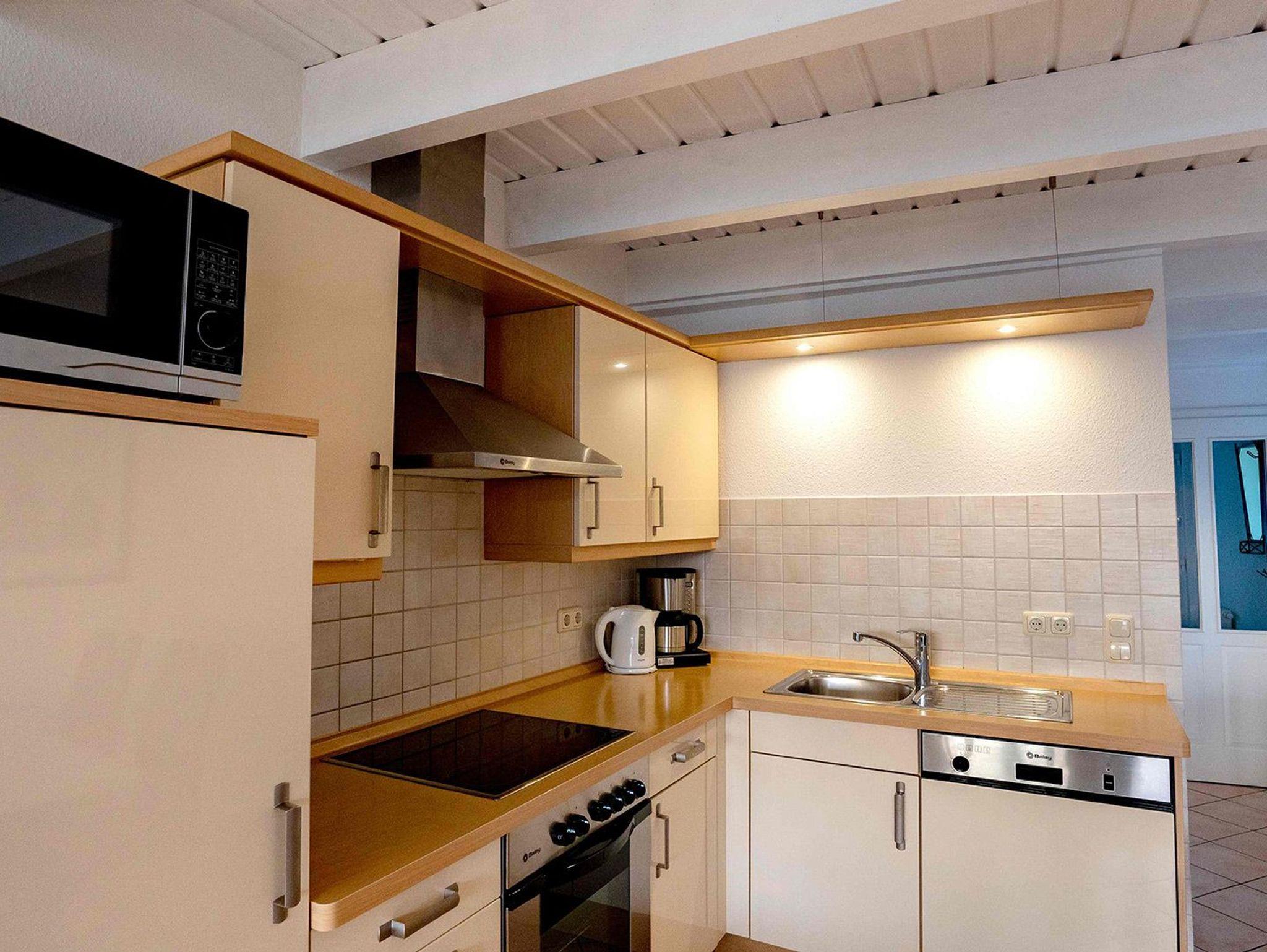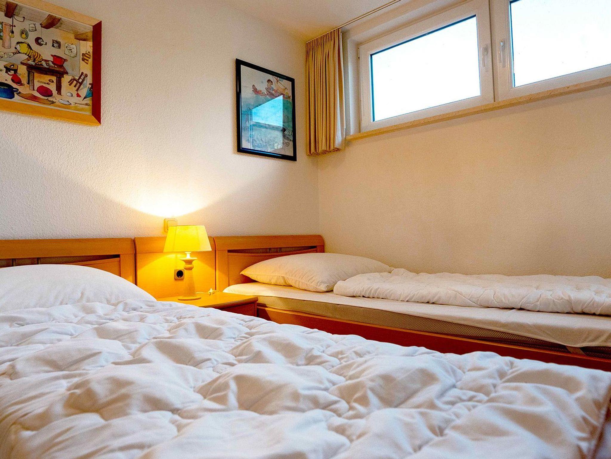 Ferienwohnung über 2 Ebenen mit 2 Schlafzimmern a 2 Betten, Wohnz.-Schlafcouch, 2 TV, Bettw. bitte mitbringen oder mieten (15,00 €/Pers.) Geschirrsp.u. Waschm .i.d. Whg., K-bett, K-stuhl, Terrasse, Balkon, Mikrowelle, keine Haustiere ,Schwimmbad (täglich geöffnet) und Sauna (Die., Fr., Sa.) i.Kurhaus inkl., Solarium gegen Gebühr nutzbar, DU/WC + Gäste-WC