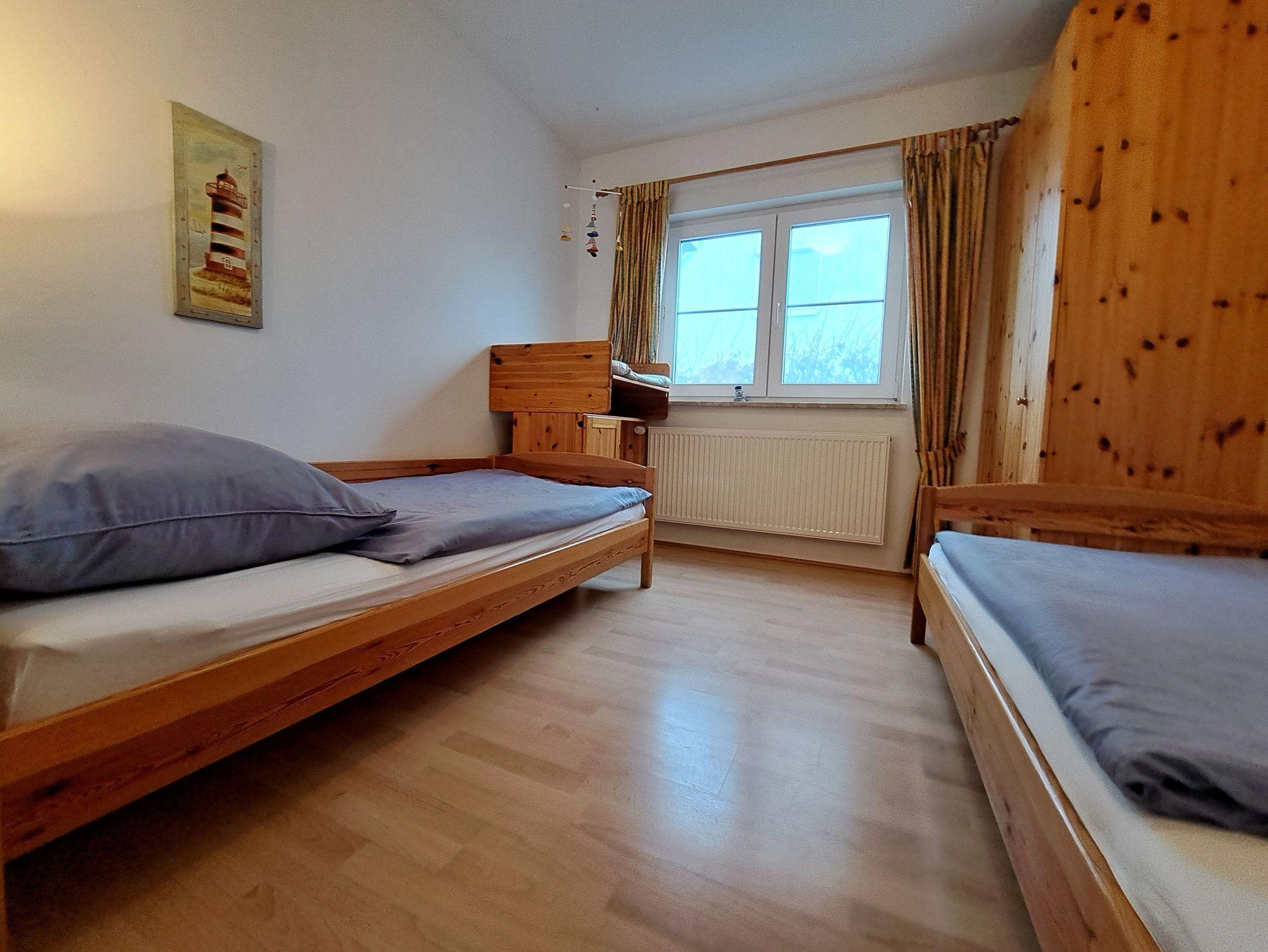 Die Wohnung bietet Erholung zu jeder Jahreszeit. Sie hat eine Größe von 61 qm und ist eingerichtet für 2 bis 4 Personen. Der gemütliche Wohnraum verfügt über eine Sitzecke mit Couch und einen Essplatz. Die integrierte Küche besitzt Spülmaschine, Mikrowelle und Backofen. Die beiden Schlafräume haben jeweils 2 Betten. Neben dem geräumigen Duschbad gehört noch ein Abstellraum zur Wohnung. Die Wohnung ist allergikergerecht ausgestattet und bietet ausreichend Platz für Familien. Kinderbett und Hochstuhl sind vorhanden. Auf der schönen Terrasse können Sie die Sonne genießen. Damit es drinnen auch bei großer Hitze angenehm kühl ist, sind alle Fenster mit Rollläden versehen.