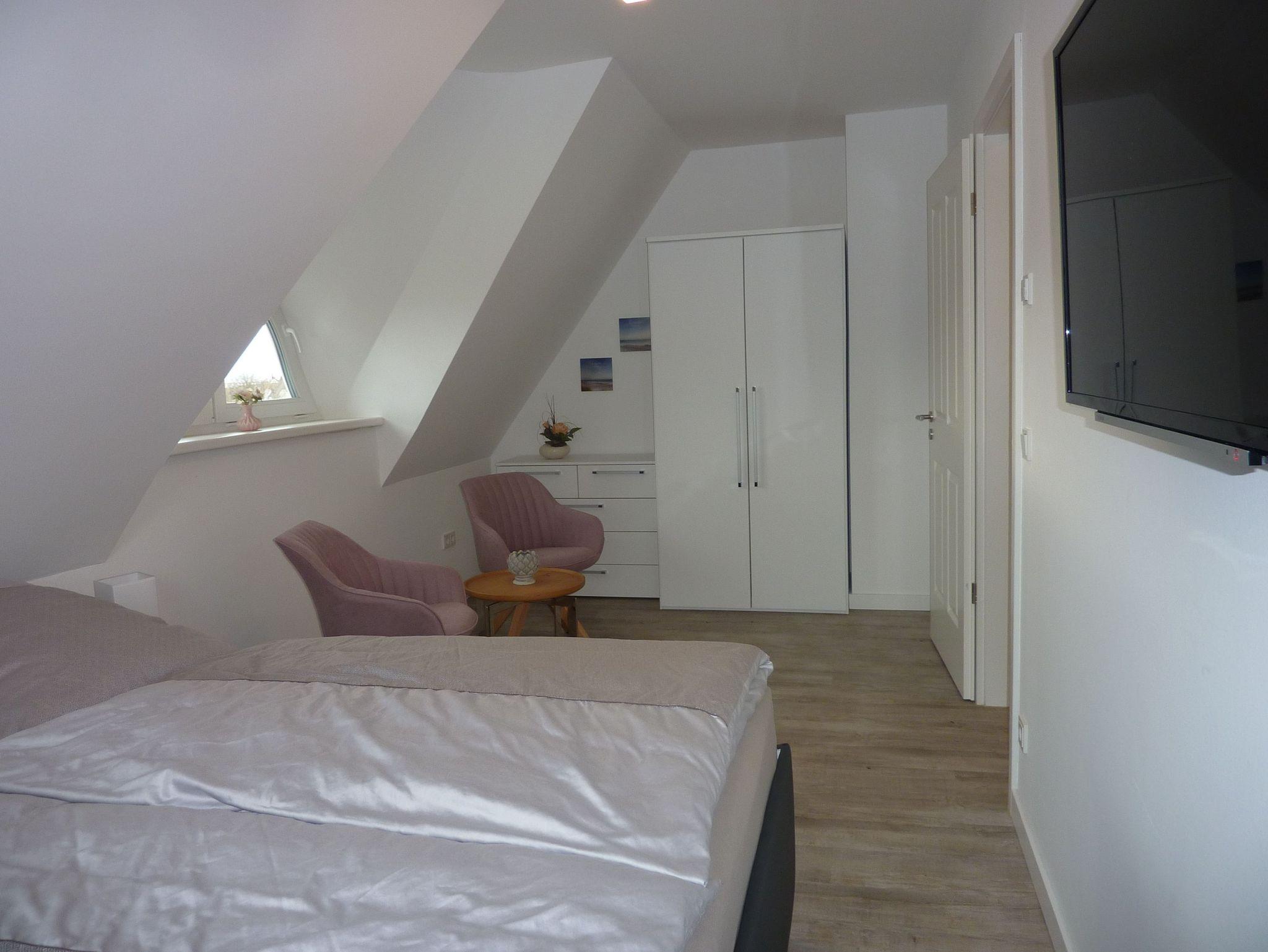 neu erbaute Reetdoppelhaushälfte (Baujahr 2020, Erstvermietung 2021) mit Flair auf großzügigem Grundstück in idyllischem Ort für Naturliebhaber, Ruhe- und Entspannungssuchende, modern eingerichtet, beide Schlafzimmer mit Doppelbetten und hochwertigen, bequemen Federkernmatratzen, Badezimmer (EG, OG) mit ebenerdiger Dusche und Tageslichtfenstern, großer Kicker und Sitzsäcke im Spitzboden, freier Blick in die Natur auf der Süd-West-Terrasse mit ausziehbarem Tisch, Premium Weber-Außengrill (Elektro) steht zur Verfügung, große Rasenfläche lädt zum Spielen ein, abschließbarer Schuppen mit Strom zum Aufladen von E-Bikes vorhanden, Waschmaschine mit integriertem Trockner kann ohne Zusatzkosten genutzt werden, Naturstrand ist fußläufig in ca. 10-15 min zu erreichen, zwei Surfschulen (auch Kitesurfen) in der Nähe