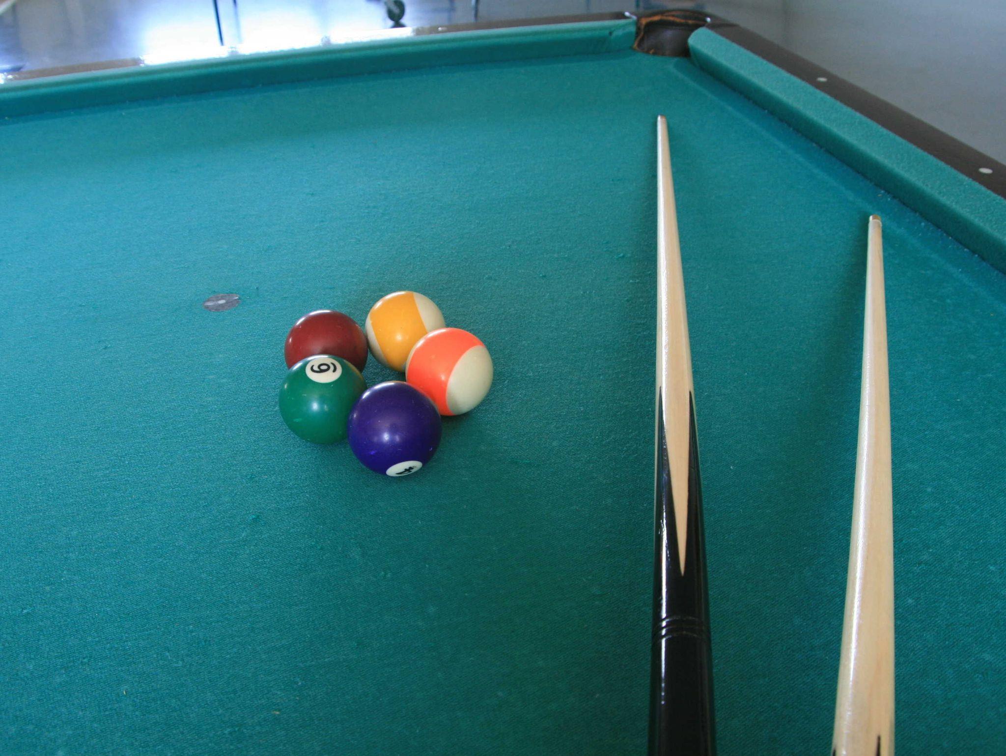 Spiele und Bücher, Tischtennisplatte, Billardtisch, Tischfußballkicker in großer Spielehalle mit genügend Platz auch für Motorräder, Fahrräder und E-Bikes.