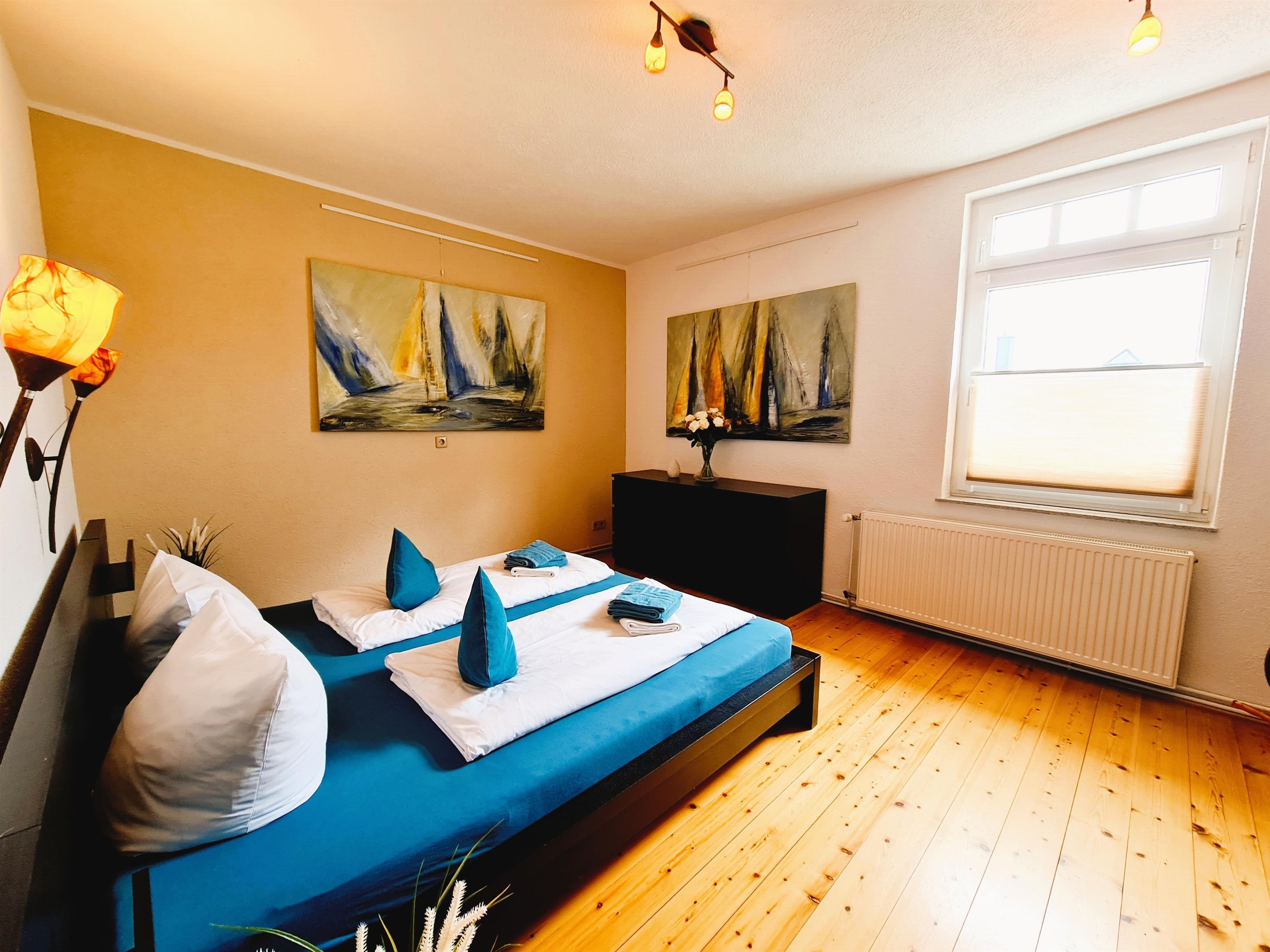 Die künstlerisch gestaltete Wohnung zeichnet sich durch zwei separate Schlafzimmer aus, ein Schlafzimmer besteht aus zwei Einzelbetten, die zusammengestellt werden können, das zweite aus einem komfortablen Doppelbett.