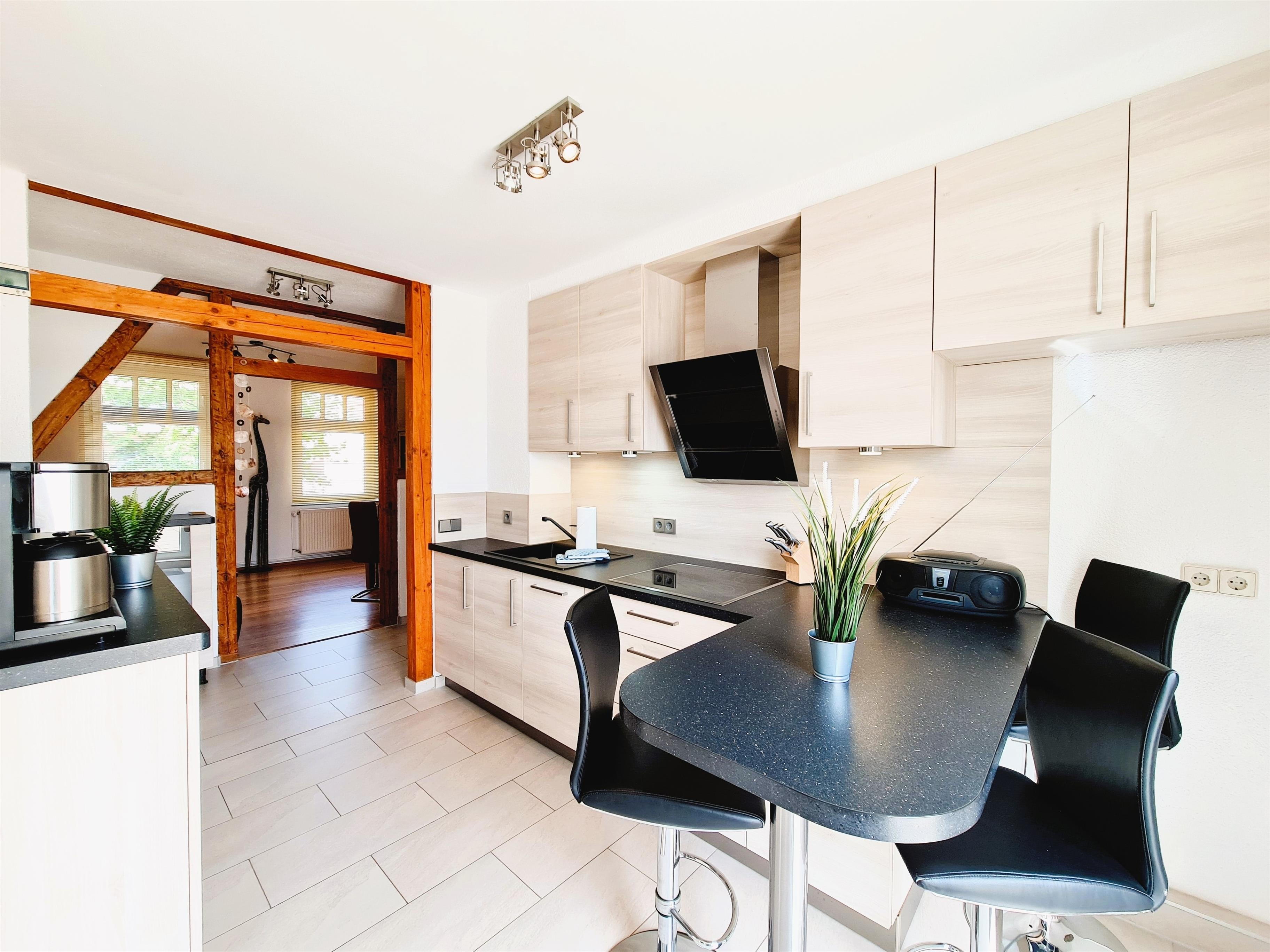 Die Wohnung verfügt über eine exklusive Küche mit Sitzgelegenheit, die Ihnen einen traumhaften Blick zum Haff ermöglicht.