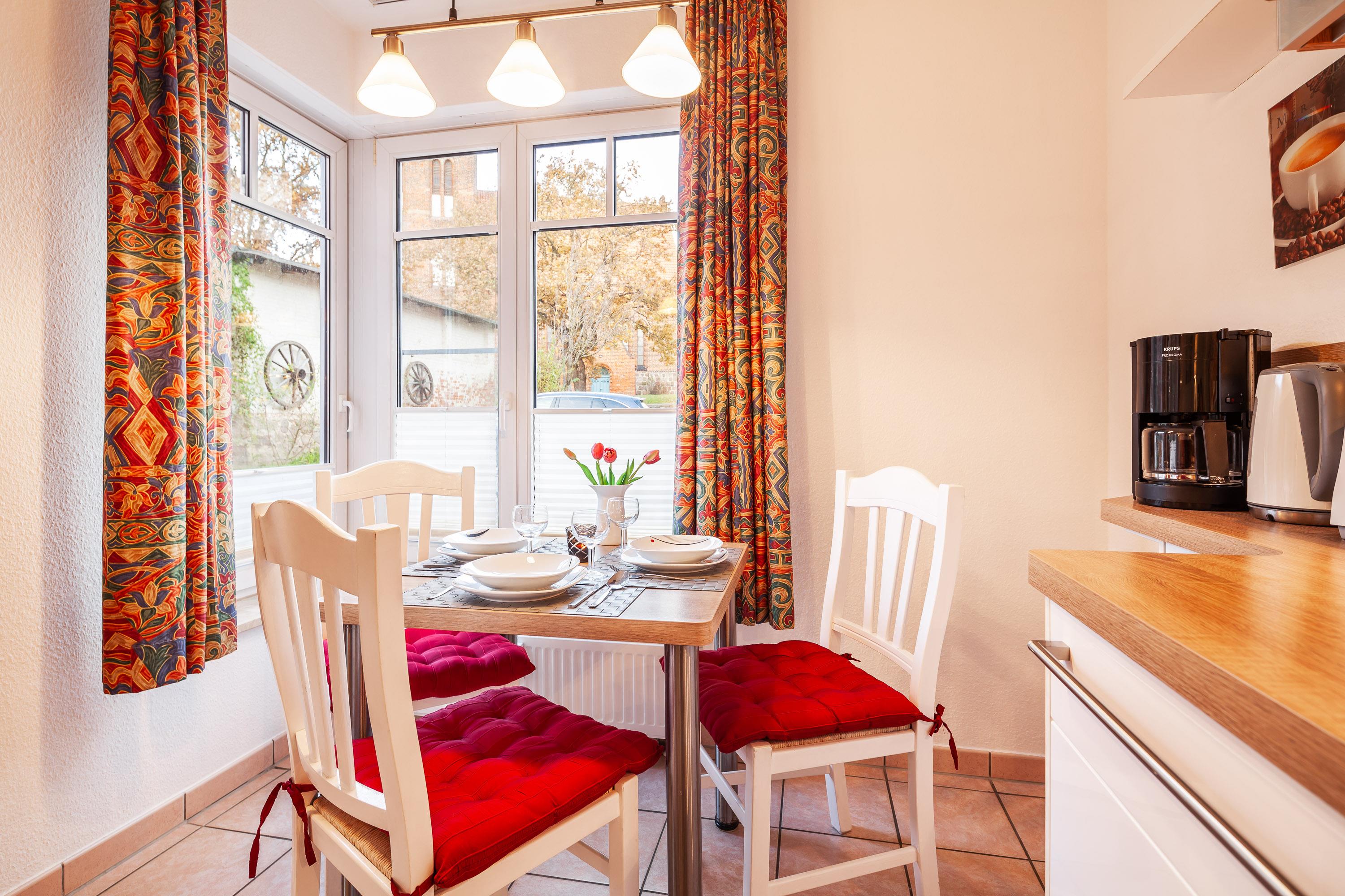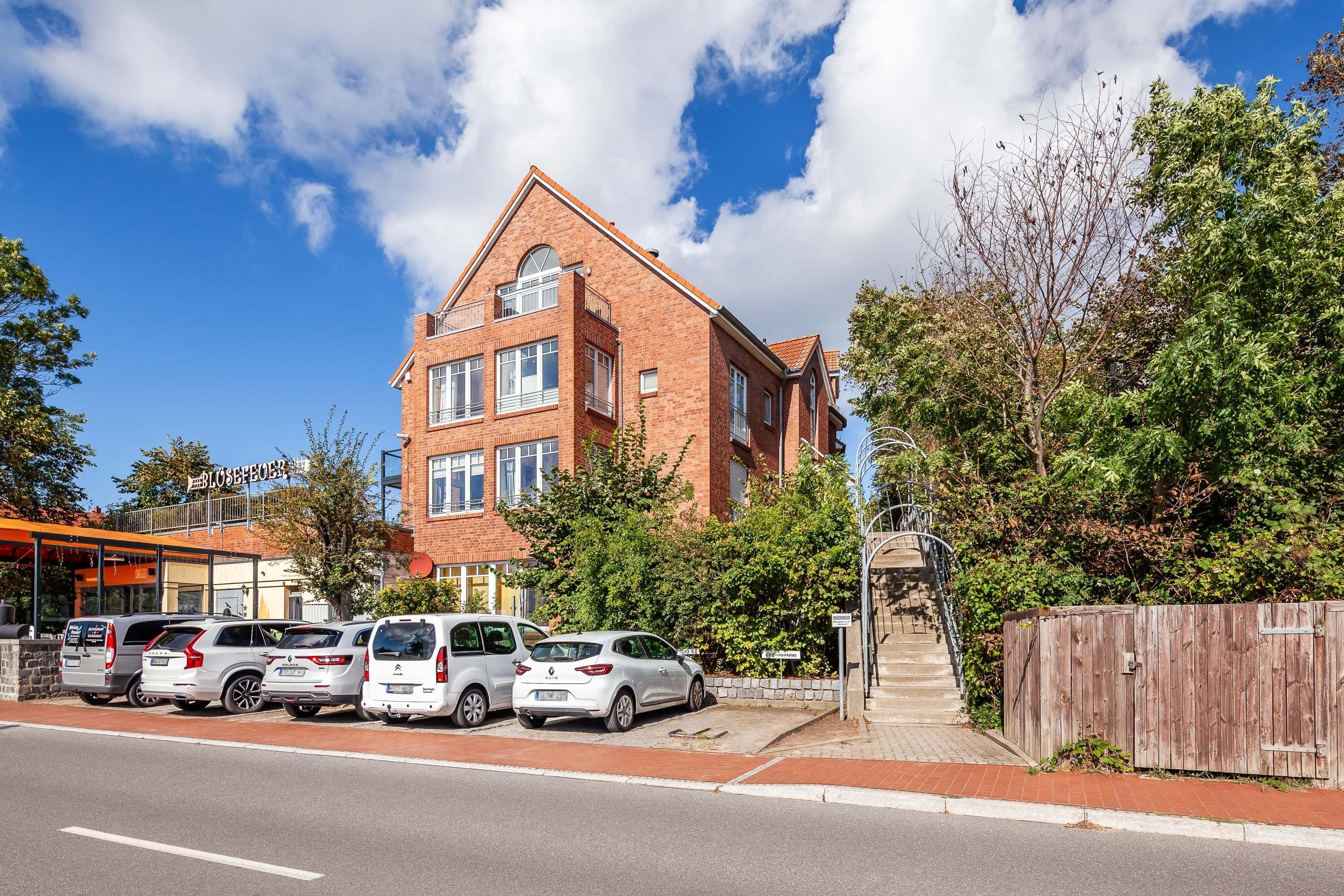 Ein kostenloser PKW-Stellplatz direkt vor dem Haus steht Ihnen zur Verfügung. Die Terrasse ist mit gemütlichen Korbstühlen ausgestattet.
