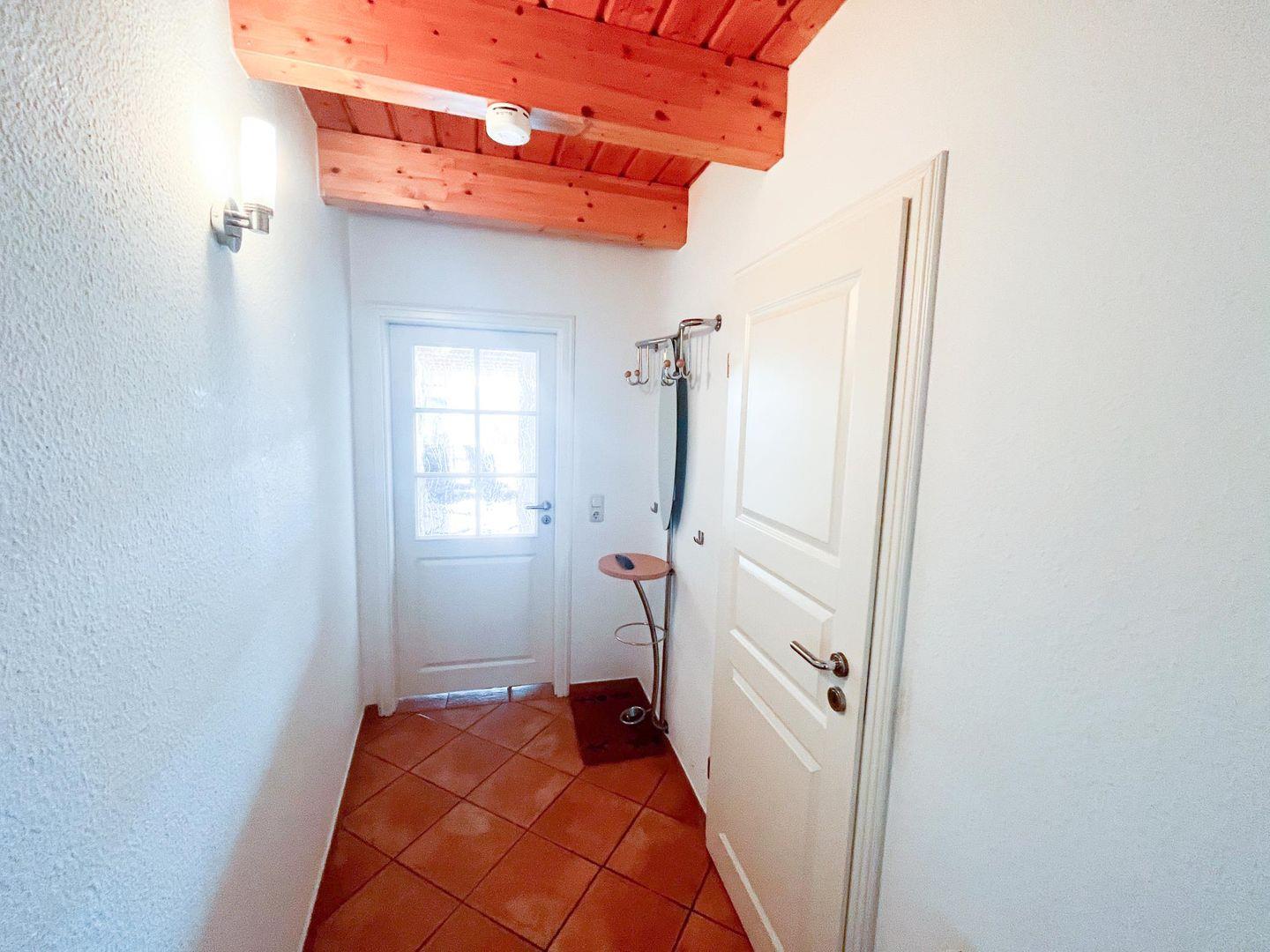 In dieser einem Reihenhaus ähnlichen Ferienunterkunft lässt es sich herrlich entspannte Urlaubstage verbringen. Das Objekt verläuft über zwei Ebenen und bietet Platz für maximal vier erwachsene Urlaubsgäste und zwei Kinder. Das Wohnzimmer befindet sich im Erdgeschoss, ebenso eines der beiden Bäder. Vom Flur aus erreicht man über eine Treppe das Obergeschoss. Hier kommt man zum fast schönsten Raum des Hauses: das Schlafzimmer mit vorgelagertem Balkon. Von Bett oder Stuhl aus genießen Sie einen wunderschönen Blick auf das Salzhaff als Teil der Ostsee. Auch auf dieser Etage gibt es ein Badezimmer mit Dusche. Das zweite Schlafzimmer ist hier ebenfalls untergebracht. Mit dieser praktischen und durchdachten Raumaufteilung macht der Aufenthalt zu jeder Jahreszeit Spaß. Und wenn das Wetter mal nicht so ganz mitspielen sollte, bietet sich ein Aufenthalt im eigenen Wellness-Bereich der kleinen Ferienanlage an. Frühschwimmer können hier täglich ab 8.00 Uhr ihre Runden drehen und haben dafür bis abends um 22.00 Uhr Zeit. Außerdem gibt es eine schöne Sauna (Öffnungszeiten beachten) sowie ein Solarium. Die Wege sind kurz: ob zum Strand, zum Salzhaff mit seinen schönen Restaurants, Cafés und Souvenir-Shops oder ins Zentrum, alles fußläufig bequem in wenigen Gehminuten erreichbar. Da kann das Auto getrost in der Tiefgarage stehenbleiben.