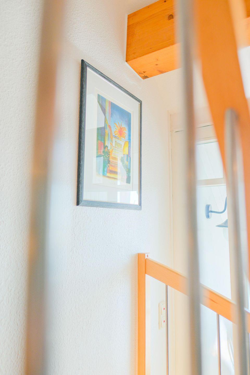 Die liebevoll eingerichtete Maisonettewohnung erstreckt sich über zwei Ebenen und bietet Platz für bis zu vier Personen. Im unteren Bereich befindet sich ein gemütlicher Wohnraum mit hoher Ledercouch, TV und einer charmanten Essecke – perfekt für gemeinsame Stunden. Eines der beiden Schlafzimmer liegt ebenfalls auf dieser Ebene, während das zweite über eine offene Treppe im Dachgeschoss zu erreichen ist – mit traumhaftem Ausblick auf das Salzhaff, der jeden Tag zu einem Erlebnis macht.