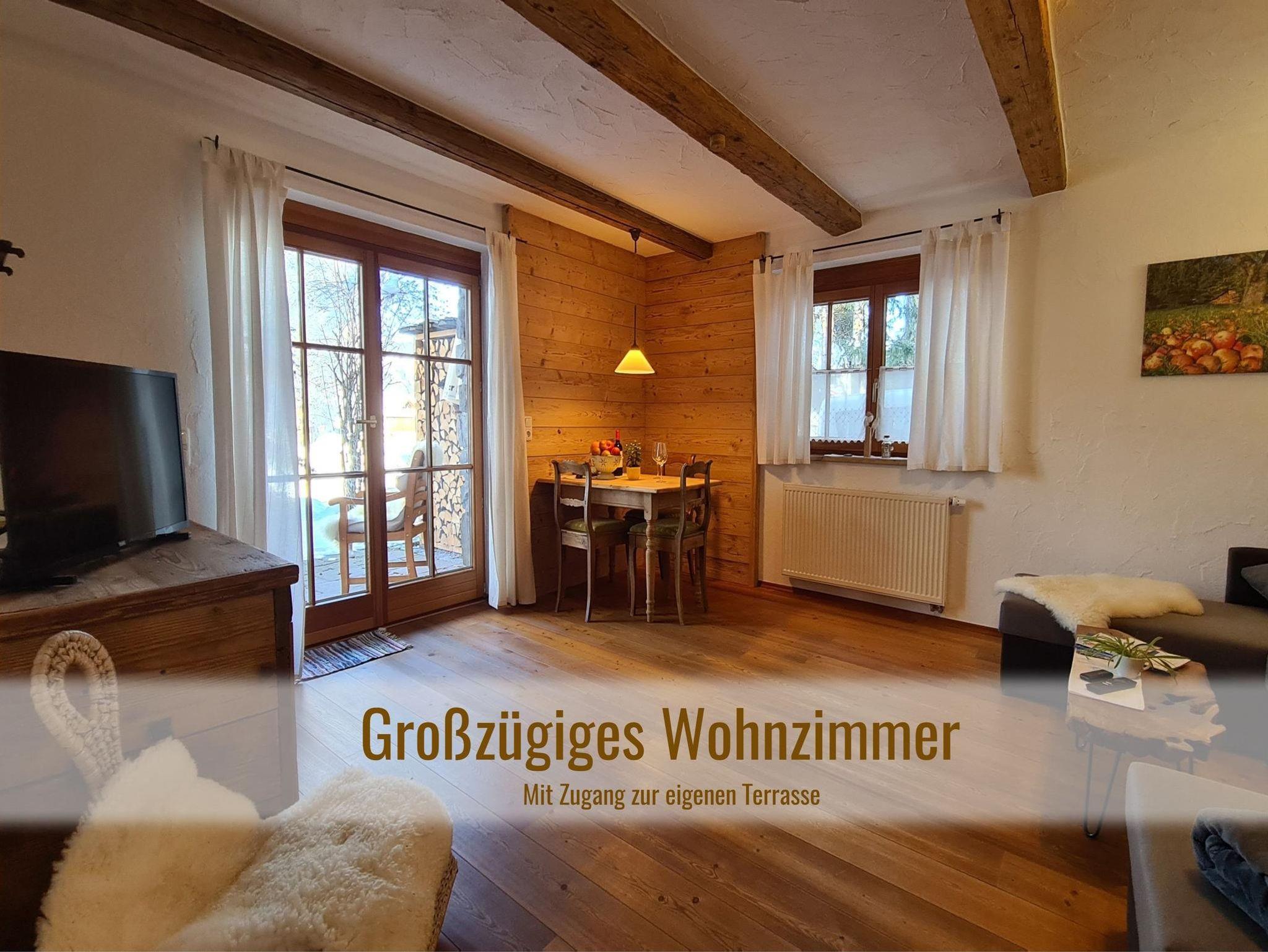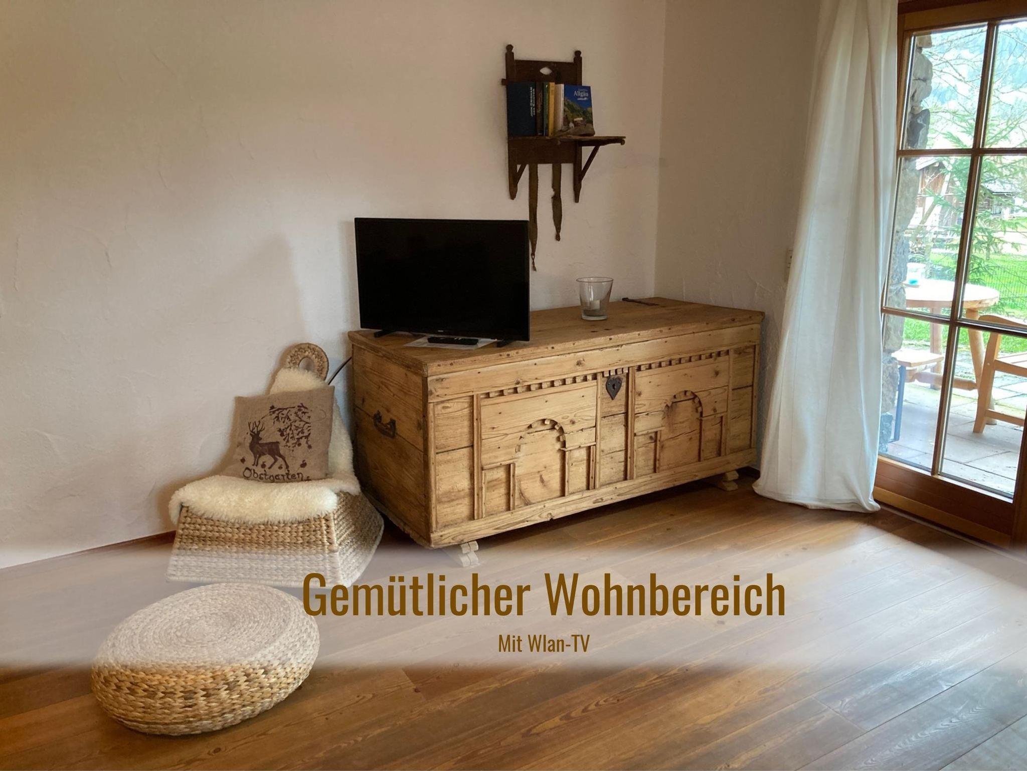 Die unterste Wohnung in der Kranzegger Bergheimat, unser zauberhafter „Obstgarten“ hat einen eigenen Eingang. Eine eigene Terrasse mit Schaukel, kleiner Rasenfläche und unserem alten Zwetschgenbaum mit süßen Früchten lädt zum verweilen ein.. Die Wohnung selbst liegt geborgen direkt am Hang des Grüntens.