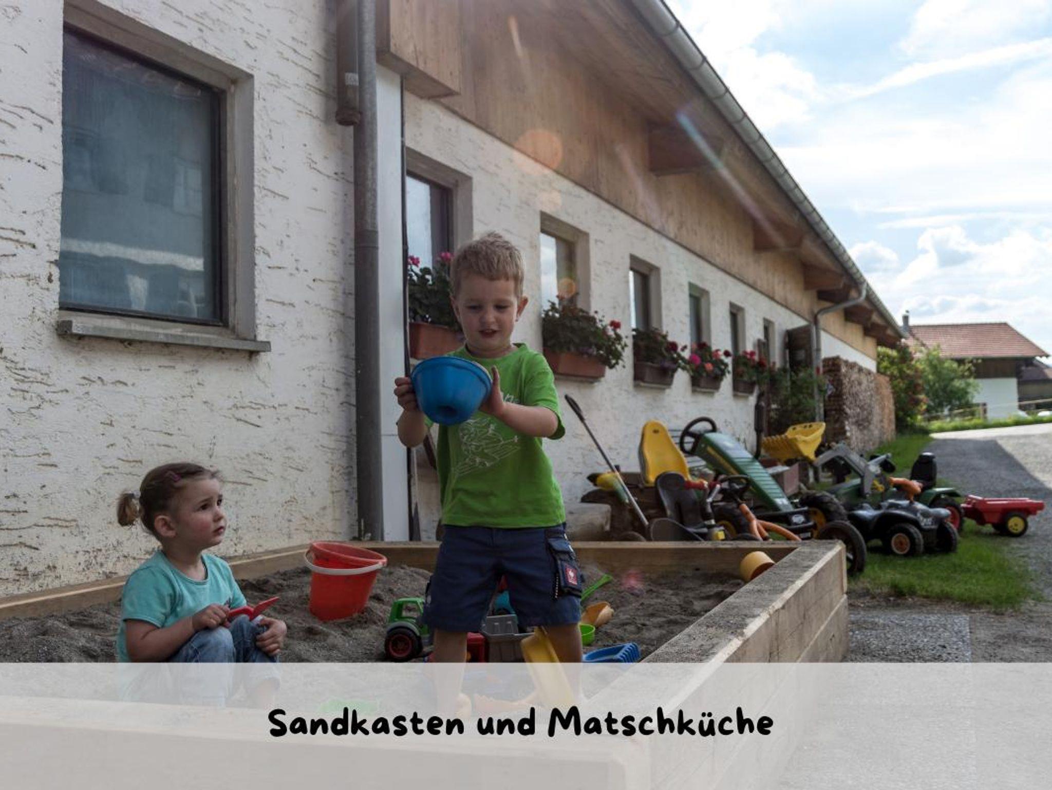 Unsere liebevoll eingerichteten Ferienwohnungen bieten höchsten Komfort, während draußen jede Menge Spaß wartet: Ein Spielplatz mit Kletterturm, Sandkasten, Trampolin und Kett-Cars lässt Kinderherzen höher schlagen. Im Winter geht’s direkt vom Hof zum Rodeln, Skifahren ist in den nahegelegenen Skigebieten möglich.