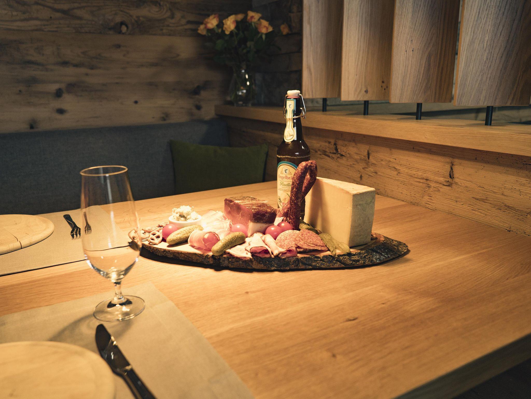 Entspannung finden Sie auf der großzügig, teils überdachten 28m² Terrasse mit Gartenmöbeln und Liegestühlen mit Blick auf den Dorfbach.