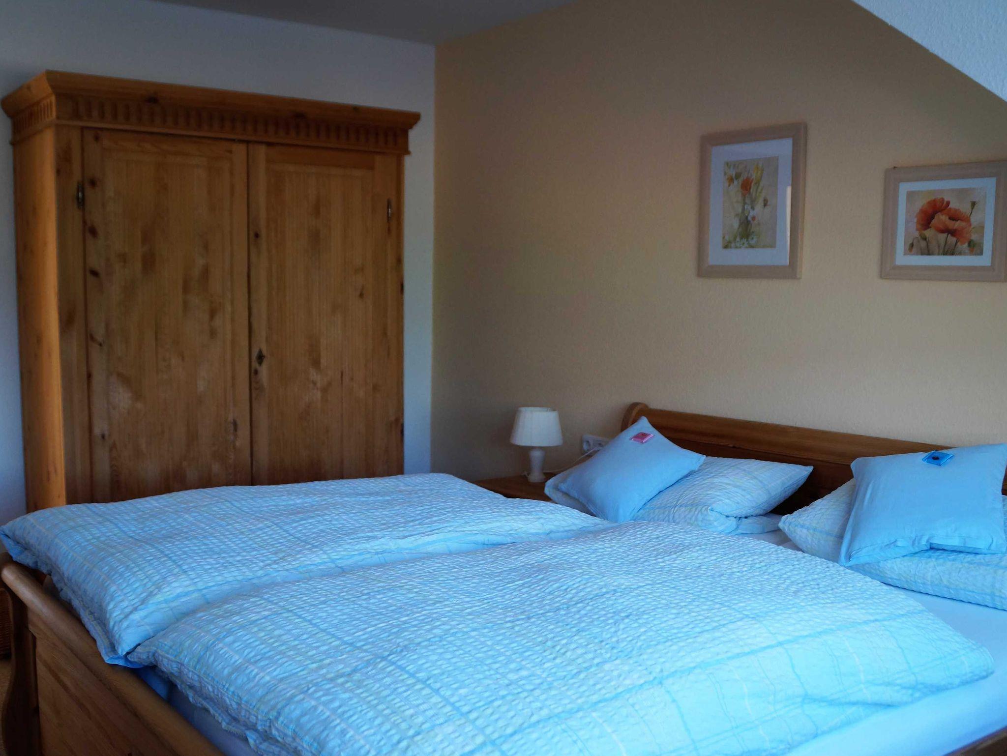 Unsere Ferienwohnung Lachmöwe bietet Platz für 3 Personen. Ein gemütlich eingerichtetes Schlafzimmer mit Doppelbett sowie ein weiteres Einzelzimmer sind vorhanden. Gemütlicher Wohn-/Essbereich mit super ausgestatteter Küche, hochwertigem Geschirr, Geschirrspüler, Sitzecke mit SAT-TV. Wunderschön: 100 % Fernblick auf die Ostsee in diesem gesamten Wohnbereich! Von hier haben unsere Gäste auch Zutritt zum Balkon. Im modernen Badezimmer mit Dusche gibt es sogar beim Zähneputzen Ostseeblick. Für einen Hund fällt eine Endreinigungsgebühr von 20,-- € an.