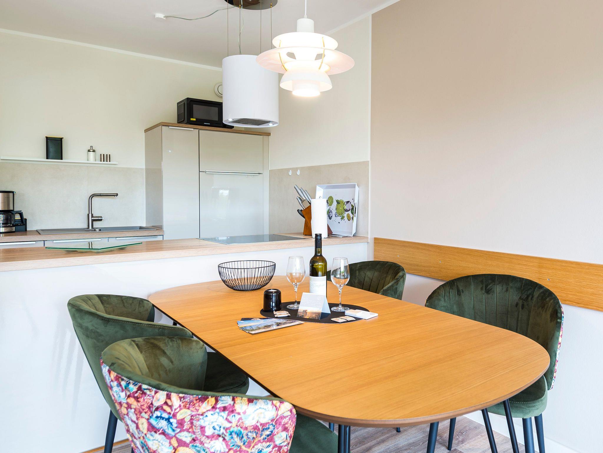 Ferienwohnung Düne 3 ist 2024 renoviert worden und liegt ebenerdig im Kortenkamp in Rettin. Es sind von dort nur 250 m Entfernung bis zum wunderschönen Rettiner Strand. Im lichtdurchflutetem Wohnzimmer und der offenen Küche lädt ein großes Sofa zum Entspannen ein. Die Wohnung verfügt über allerhand Annehmlichkeiten. Der 55 Zoll-TV ist mit Amazon-Stick ausgestattet, es gibt ein Soundsystem mit JBL Soundbar und ein 100 MB-WLAN. An heißen Tagen kann im Wohnzimmer eine Klimaanlage für nötige Abkühlung sorgen und im Winter für ein nachhaltiges Heizen. Das Badezimmer mit bodengleicher Regendusche und Fußbodenheizung wird Sie begeistern. Die Terrasse ist geräumig und mit elektrischer Markise ausgestattet. Zum leckeren Grillen kann ein Gasgrill genutzt werden - ein Eckplatz der Terrasse ist hierfür reserviert. Eine Waschmaschine und ein Trockner stehen im gemeinschaftlichen Wäschekeller (Kortenkamp 1, UG) gegen Gebühr zur Verfügung. Ein kostenloser PKW-Parkplatz steht Ihnen direkt vor der Tür zur Verfügung. In nur 350 m Entfernung kann eine öffentliche Elektrostation genutzt werden. Fahrräder können am Fahrrad-Ständer außen angeschlossen werden oder im Eigentümerkellervorraum, den Sie über 2 Treppen im Nachbarhaus (Nr. 1) erreichen. Kinder sind in der Wohnung besonders willkommen. Der nahe gelegene Hof Bauer Martin in Bliesdorf ist nur 4 km und bietet auch für Tagesgäste eine tolle Vielfalt für Kinder und ihre Begleitpersonen. Für kleinere Einkäufe kann der der Mini-Supermarkt in 250 m Entfernung zwischen Mai und September genutzt werden und es gibt sogar frische Brötchen.