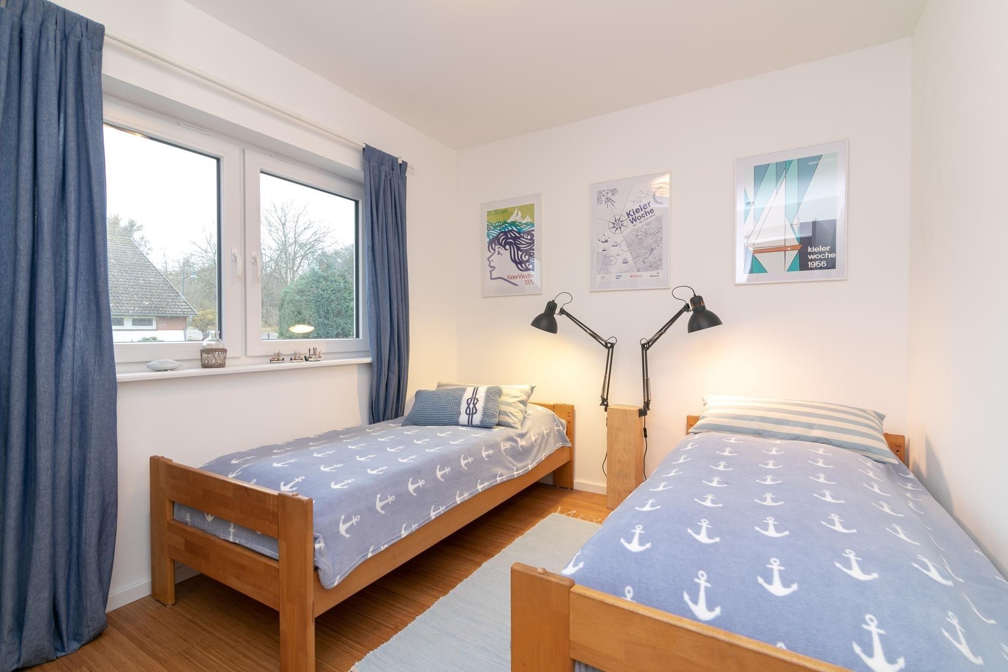 Schlafzimmer 3: 2 Einzelbetten (je 90x200 cm), Kleiderschrank, Verdunkelung (Plissees und Vorhänge)