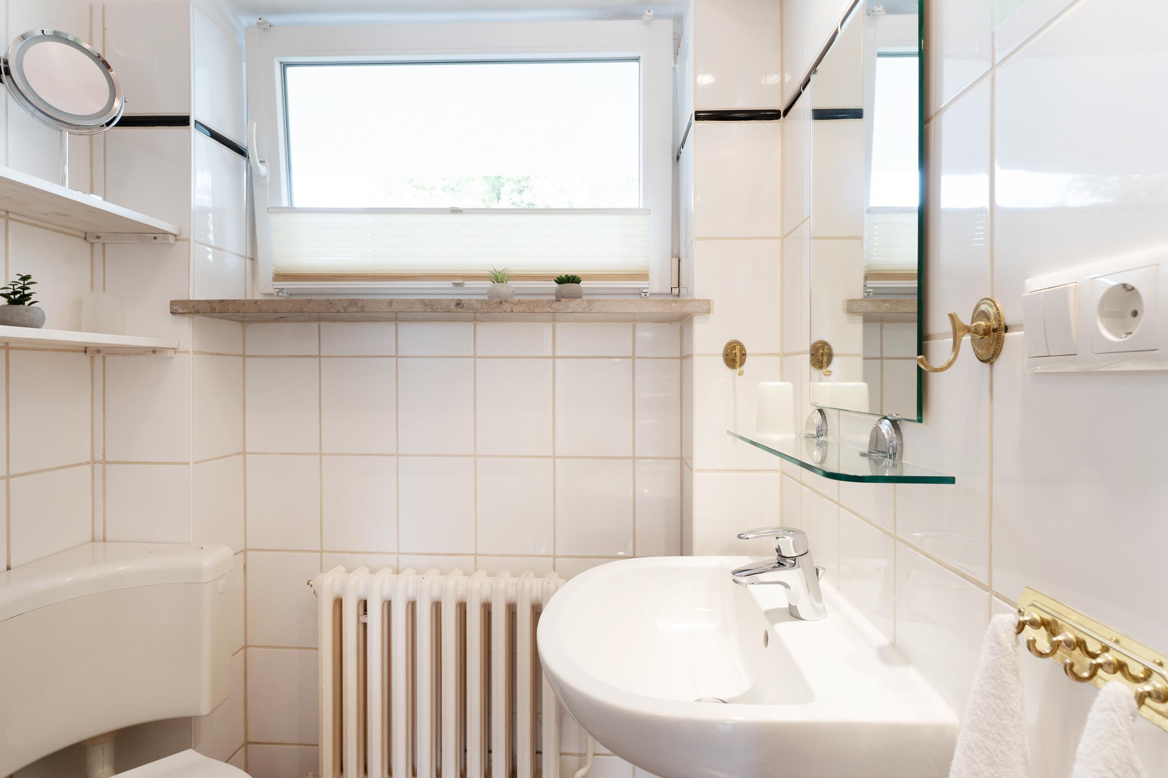 Die separate Küche ist voll ausgestattet und lässt keine Wünsche offen: Neben einem Backofen und Cerankochfeld stehen Ihnen auch eine Mikrowelle, eine Kaffeemaschine, ein Wasserkocher, ein Toaster sowie ein Kühlschrank zur Verfügung. Ein Esstisch lädt zum gemeinsamen Frühstück oder Abendessen ein.