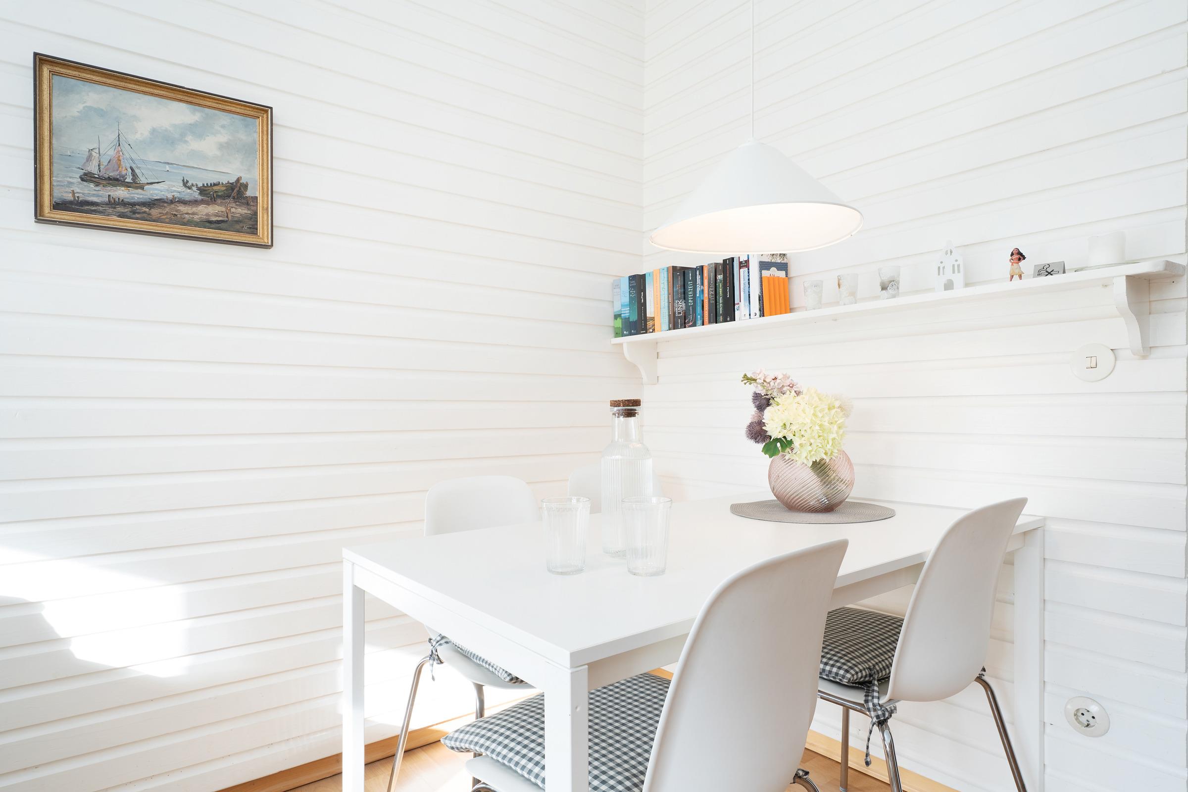 Die moderne Küche ist voll ausgestattet mit Backofen, Herd, Kühlschrank mit Gefrierfach, Mikrowelle, Kaffeemaschine und Wasserkocher und lässt keine Wünsche offen. Ein einladender Essbereich schließt sich an und bietet Platz für gemeinsame Mahlzeiten. Zwei separate Schlafzimmer mit jeweils einem Doppelbett sorgen für erholsame Nächte.