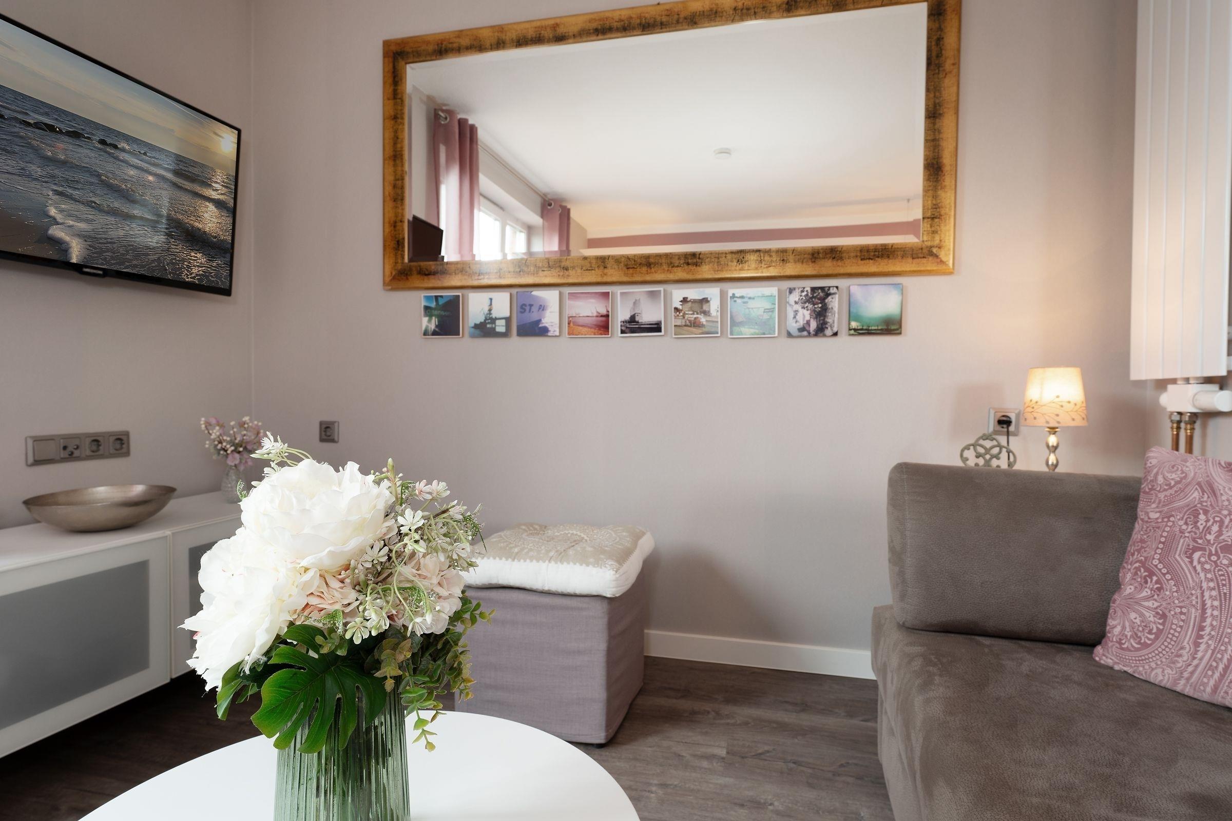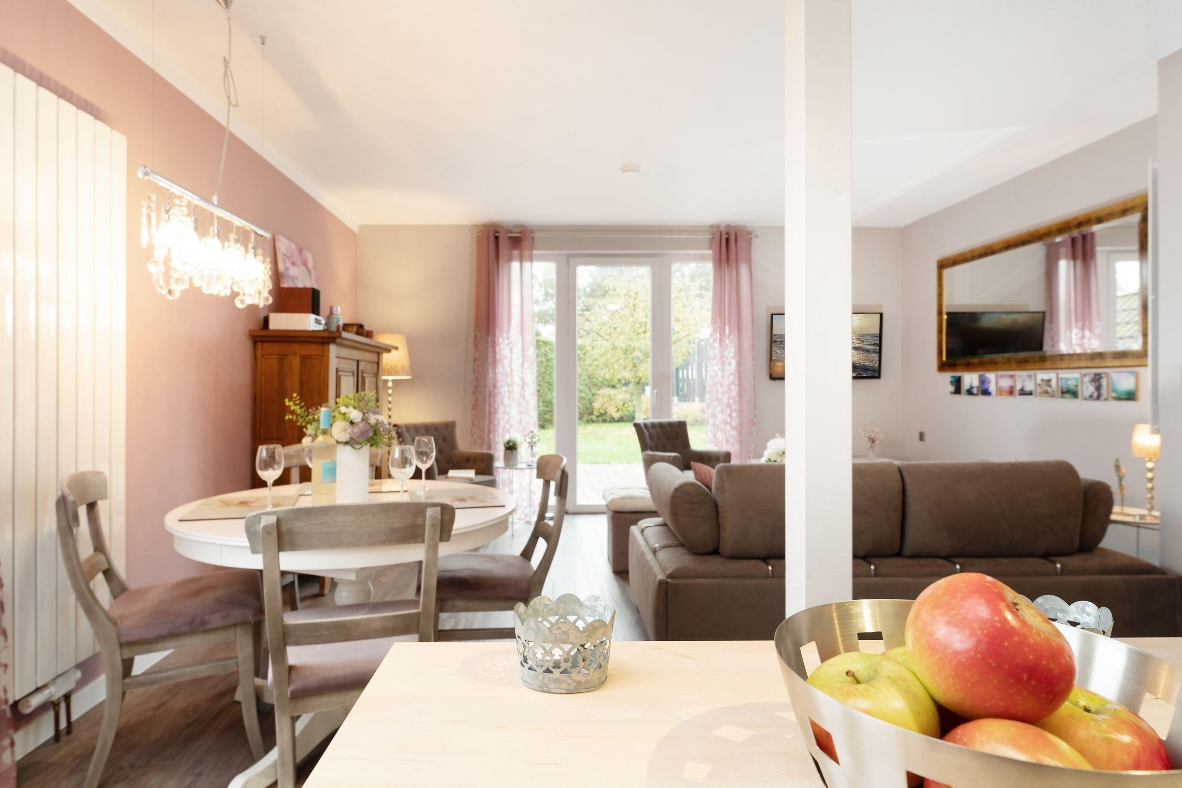 Treten Sie ein – in der charmanten Wohnung Fischhus werden Sie sich sofort wohlfühlen. Hier trifft guter Geschmack auf Gemütlichkeit: die Farben der Einrichtung sind perfekt aufeinander abgestimmt und sorgen für eine herrliche Atmosphäre. Der lichtdurchflutete Wohnbereich bietet neben einer großen Sofalandschaft mit TV-Gerät noch weitere Sitzmöglichkeiten zum gemütlichen Verweilen. In den Wohnraum integriert ist die moderne Küche, die mit Induktions-Herd, Nespresso-Maschine und Geschirrspüler punktet und jedem Hobby-Koch ein Lächeln ins Gesicht zaubert. Wenn die Sonne scheint, lockt es Sie sicher auf eine der zwei Terrassen oder in den eingezäunten Garten. Entspannen Sie tagsüber auf den Sonnenliegen. Oder lassen Sie den Abend mit einem Glas Wein und leckerem Grillgut ausklingen. Für die Nacht steht für Sie ein Doppelbett (2x 80x200 cm) im Schlafzimmer bereit. Die liebevolle Einrichtung wird Ihnen sicher süße Träume bescheren. Ihre Urlaubsgarderobe findet im Kleiderschrank Platz. Das moderne Badezimmer mit Tageslicht, bodengleicher Dusche und Badewanne sowie Föhn, Handtuchwärmer und Kosmetikspiegel bietet sicher den Komfort, den man sich im Urlaub wünscht.