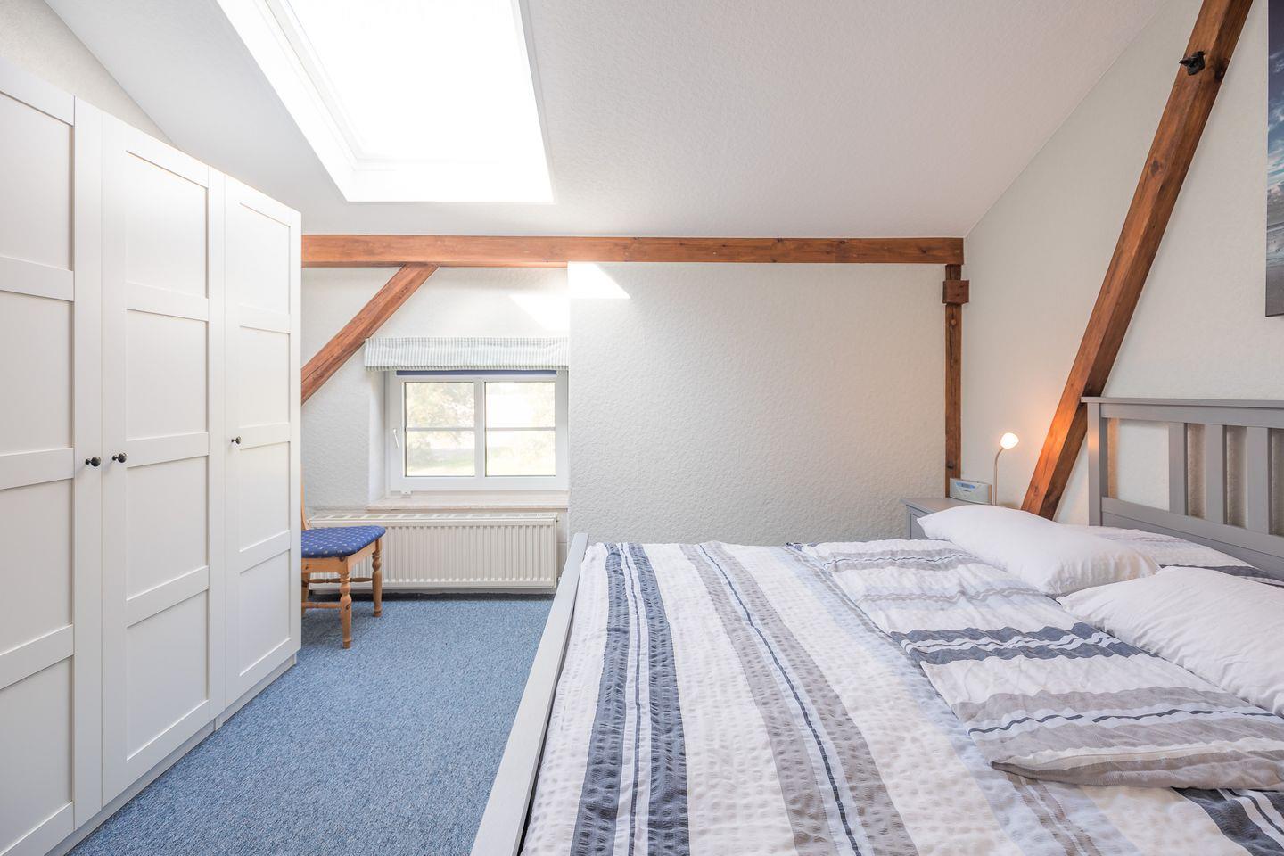 Die Wohnung mit einem separaten Eingang ist ca. 60 qm groß, großzügig geschnitten mit einem großen lichtdurchfluteten Wohn- und Essraum. Die vielen sichtbaren Balken bei hohen Decken sorgen für ein behagliches Raumgefühl. Die Einbauküche hat eine exklusive Ausstattung (Mikrowelle, Spülmaschine, separater Eisschrank), das Schlafzimmer ist mit einem Doppelbett (1,8 x 2,0 m) ausgestattet und ist ebenso wie der Wohn-Essraum mit viel Liebe eingerichtet und nordisch dekoriert. Das Badezimmer ist mit Dusche und WC eingerichtet. Im Garten stehen Grill und Gartenmöbel kostenlos zur Verfügung.
