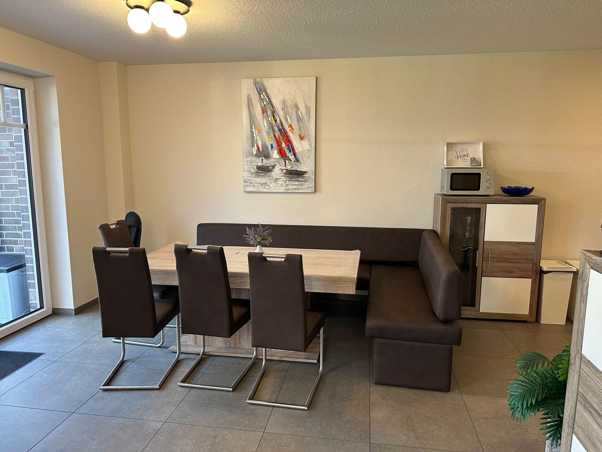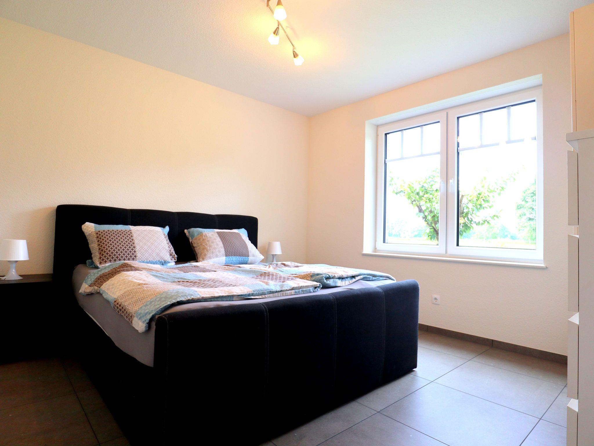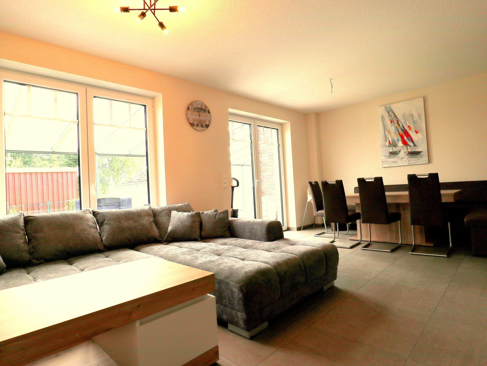 In unserem neu gebauten Ferienhaus mit zwei Wohneinheiten können Sie als 4-köpfige Familie in der Wohneinheit im Erdgeschoss Ihren Urlaub verbringen. Die Erdgeschosswohnung ist ausgestattet mit einer großen Küche mit Sitzgelegenheiten bis zu 10 Personen. Einem Wohnschlafraum mit einer Schlafcouch (1,00m x 2,30m), einem Doppelzimmer (Doppelbett 1,80m x 2,00m/1Matratze) und einem Bad mit einer Badewanne und einer ebenerdigen Dusche. Eine große Überdachte Terrasse können Sie in geselliger Runde bis in die späten Abendstunden genießen.