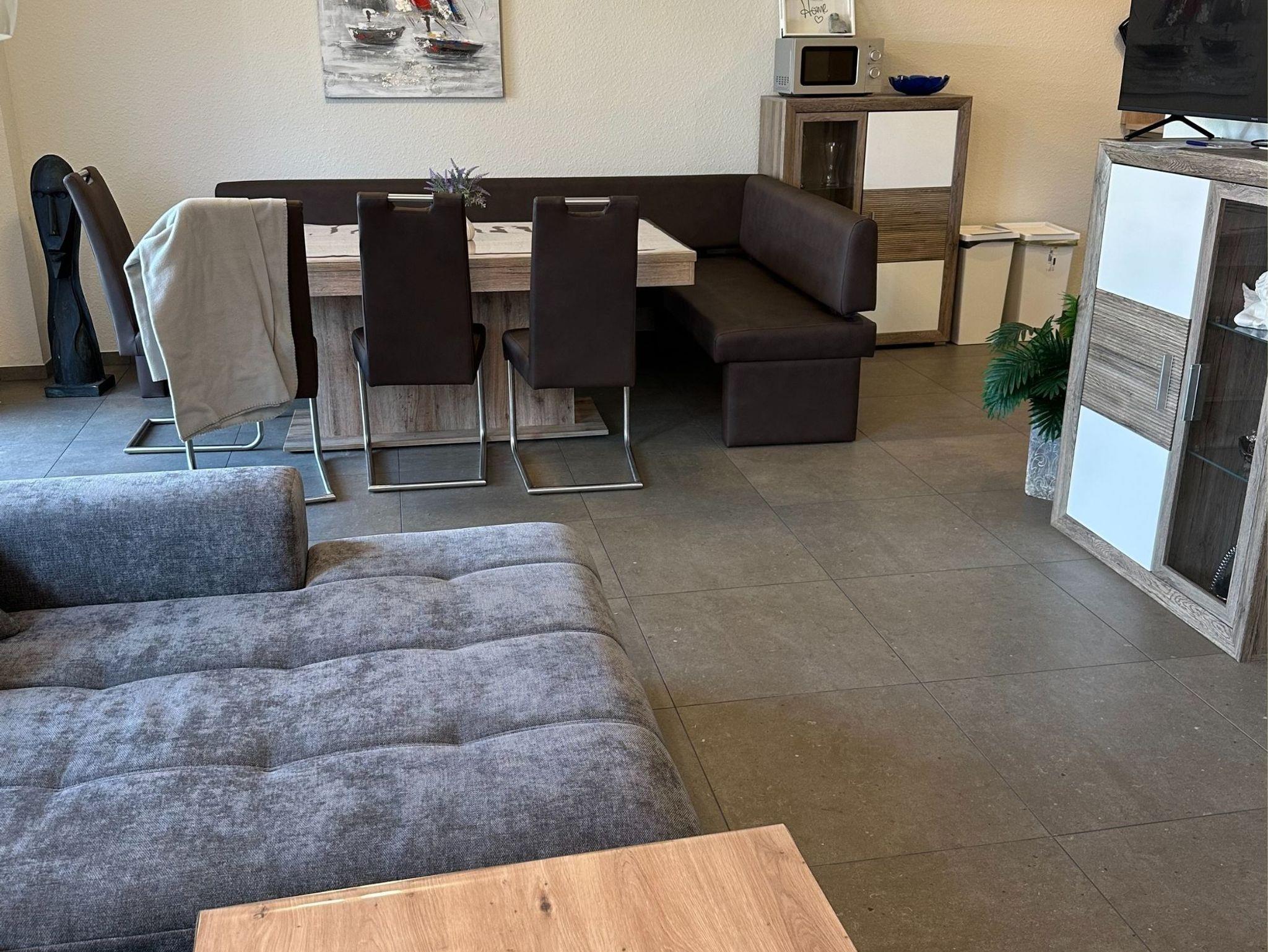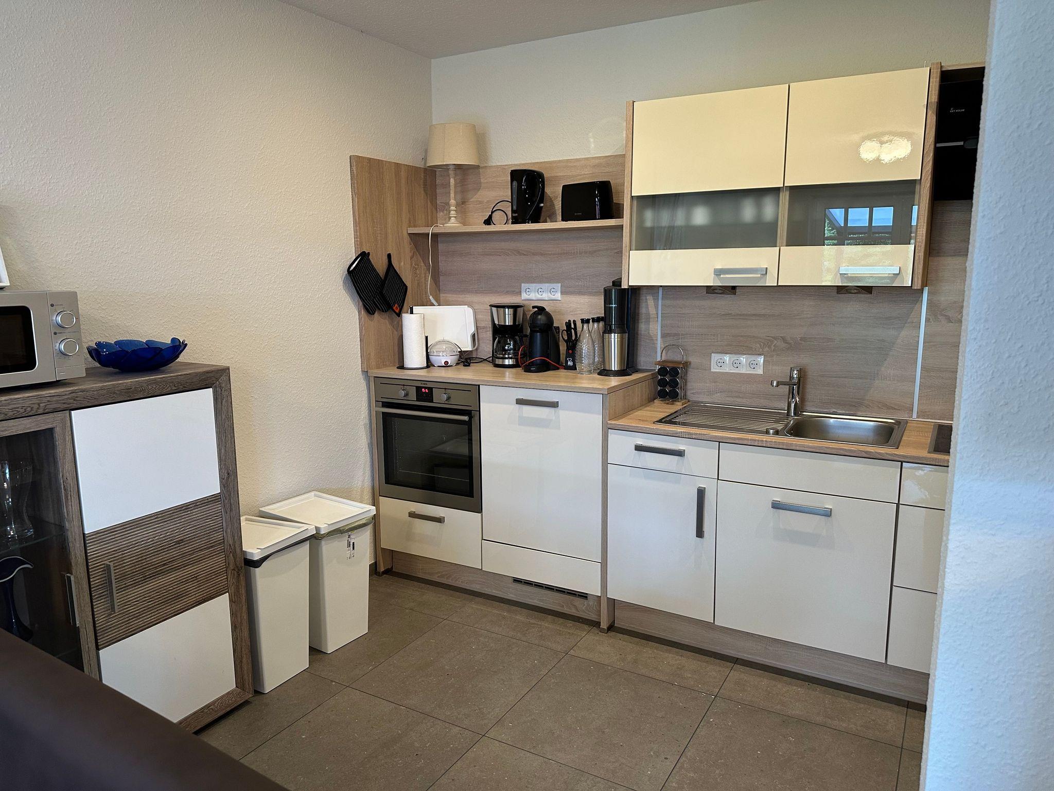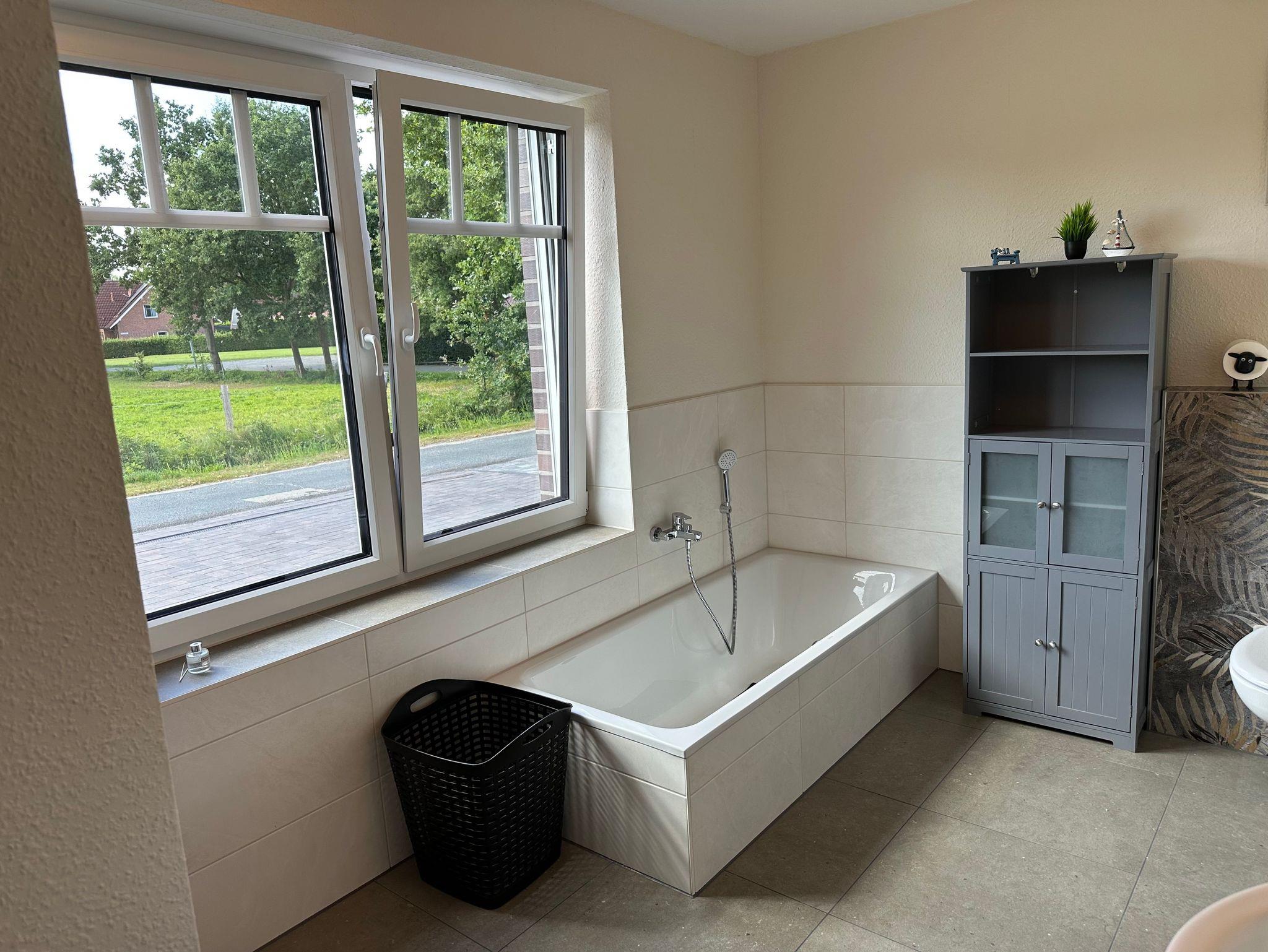 In unserem neu gebauten Ferienhaus mit zwei Wohneinheiten können Sie als 4-köpfige Familie in der Wohneinheit im Erdgeschoss Ihren Urlaub verbringen. Die Erdgeschosswohnung ist ausgestattet mit einer großen Küche mit Sitzgelegenheiten bis zu 10 Personen. Einem Wohnschlafraum mit einer Schlafcouch (1,00m x 2,30m), einem Doppelzimmer (Doppelbett 1,80m x 2,00m/1Matratze) und einem Bad mit einer Badewanne und einer ebenerdigen Dusche. Eine große Überdachte Terrasse können Sie in geselliger Runde bis in die späten Abendstunden genießen.