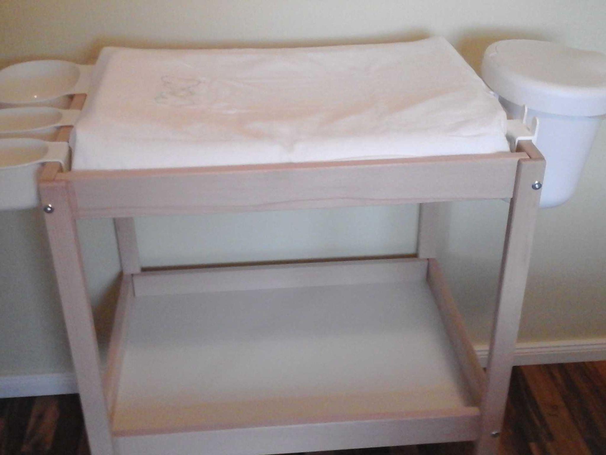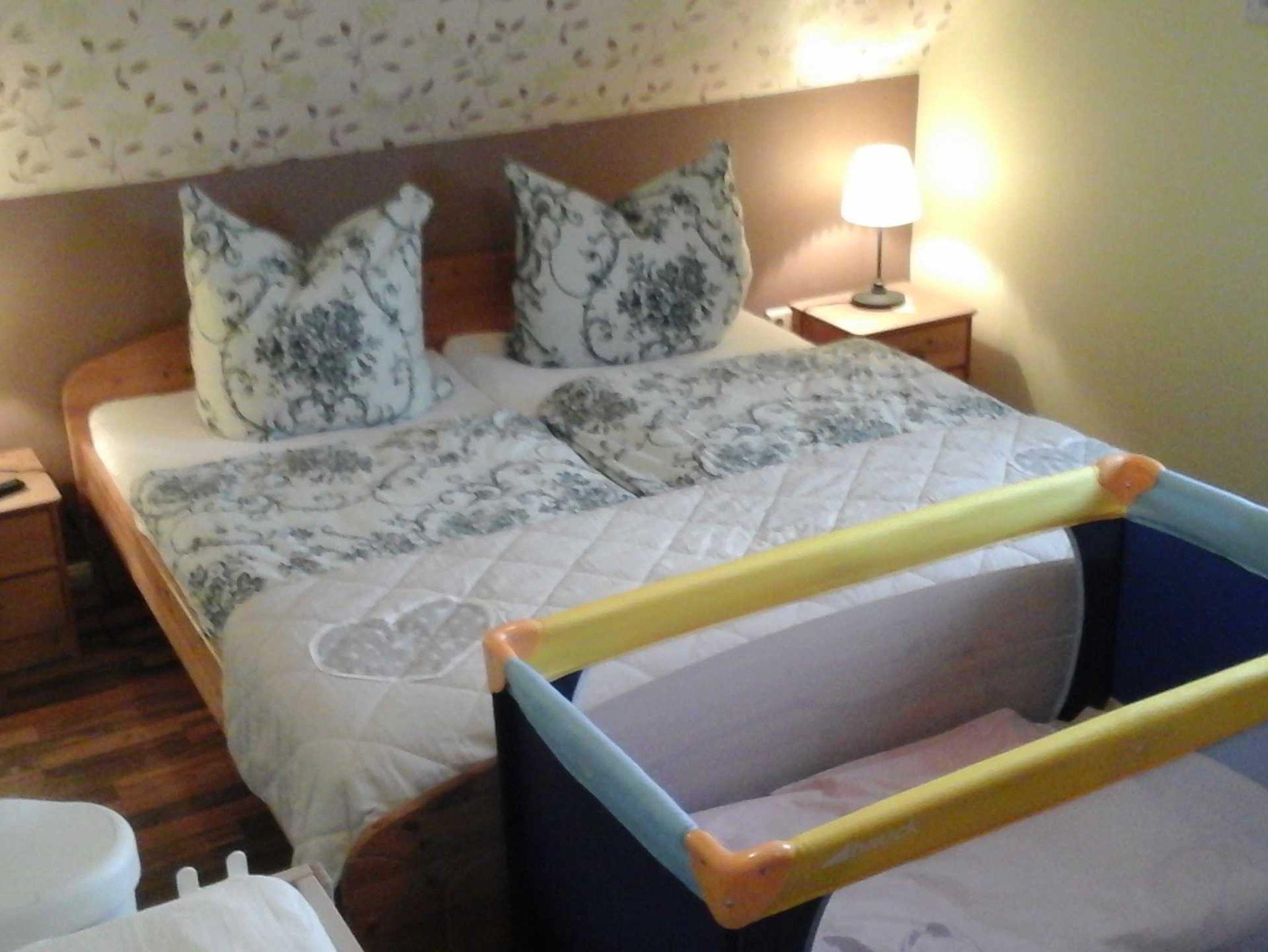 Ein Kinderbett, Kinderhochstuhl sowie auch ein Wickeltisch sind vorhanden.