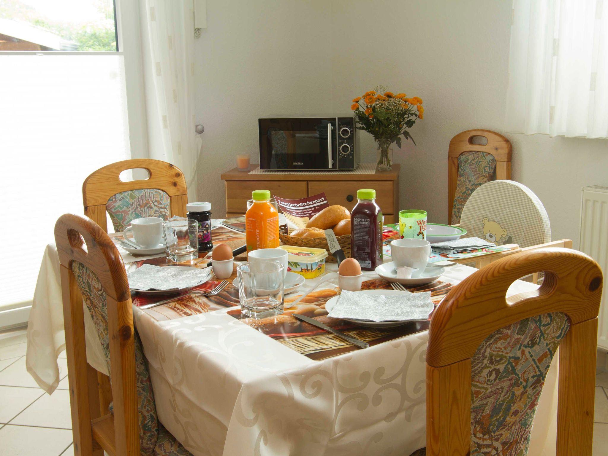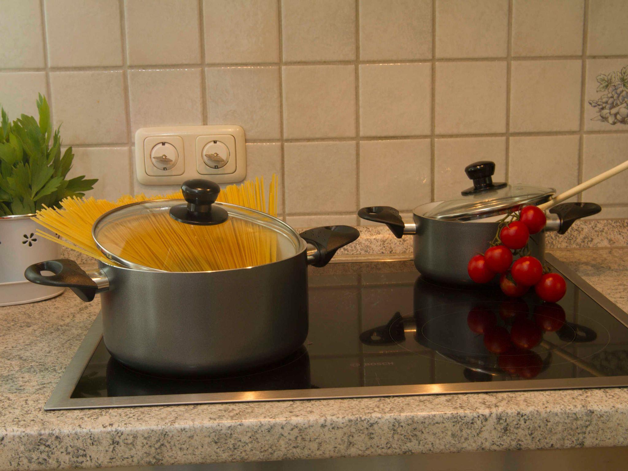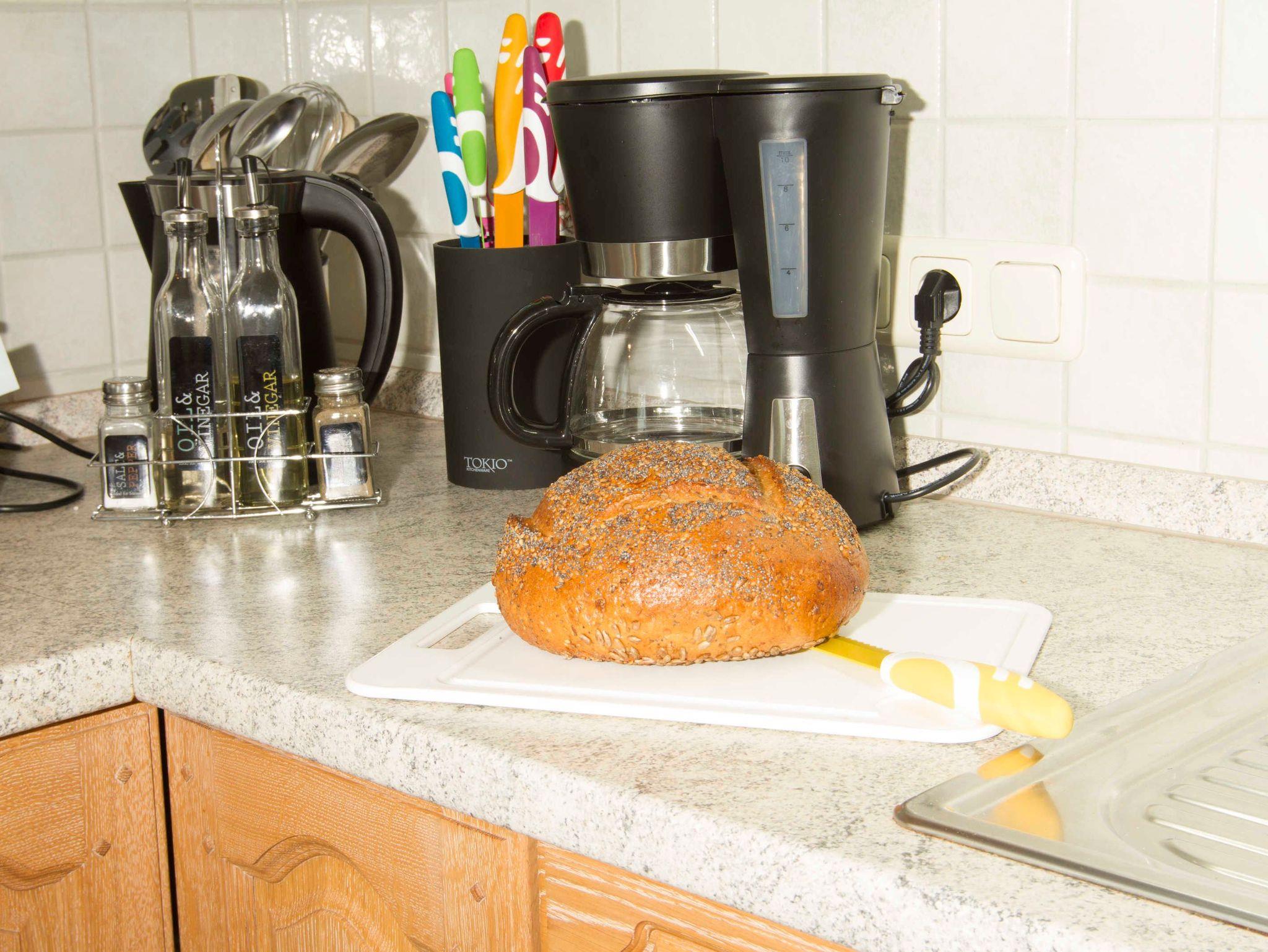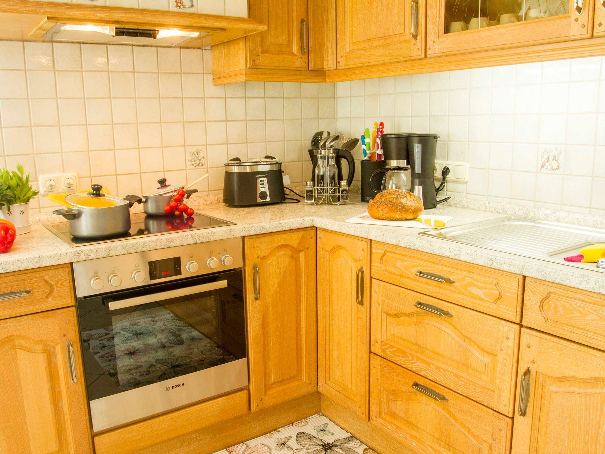 Im Erdgeschoss erwartet Sie eine vollausgestattete Küche mit Elektroherd, Backofen, Mikrowelle, Kaffeemaschine, Wasserkocher, Kühlschrank, Gefrierschrank,Toaster und natürlich noch vielen weiteren Kochutensilien.
