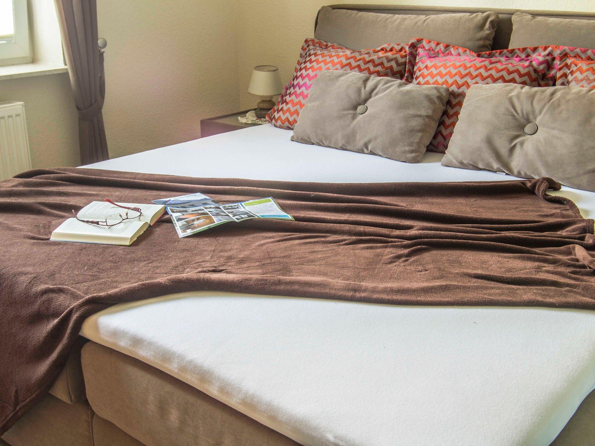 Es stehen Ihnen zwei Schlafräume mit gemütlichem Doppelbett im Erdgeschoss und ein weiterer Schlafraum mit einem Doppel- und Einzelbett im Obergeschoss zur Verfügung, welche Sie auch als Ruheraum zum Relaxen nutzen können.