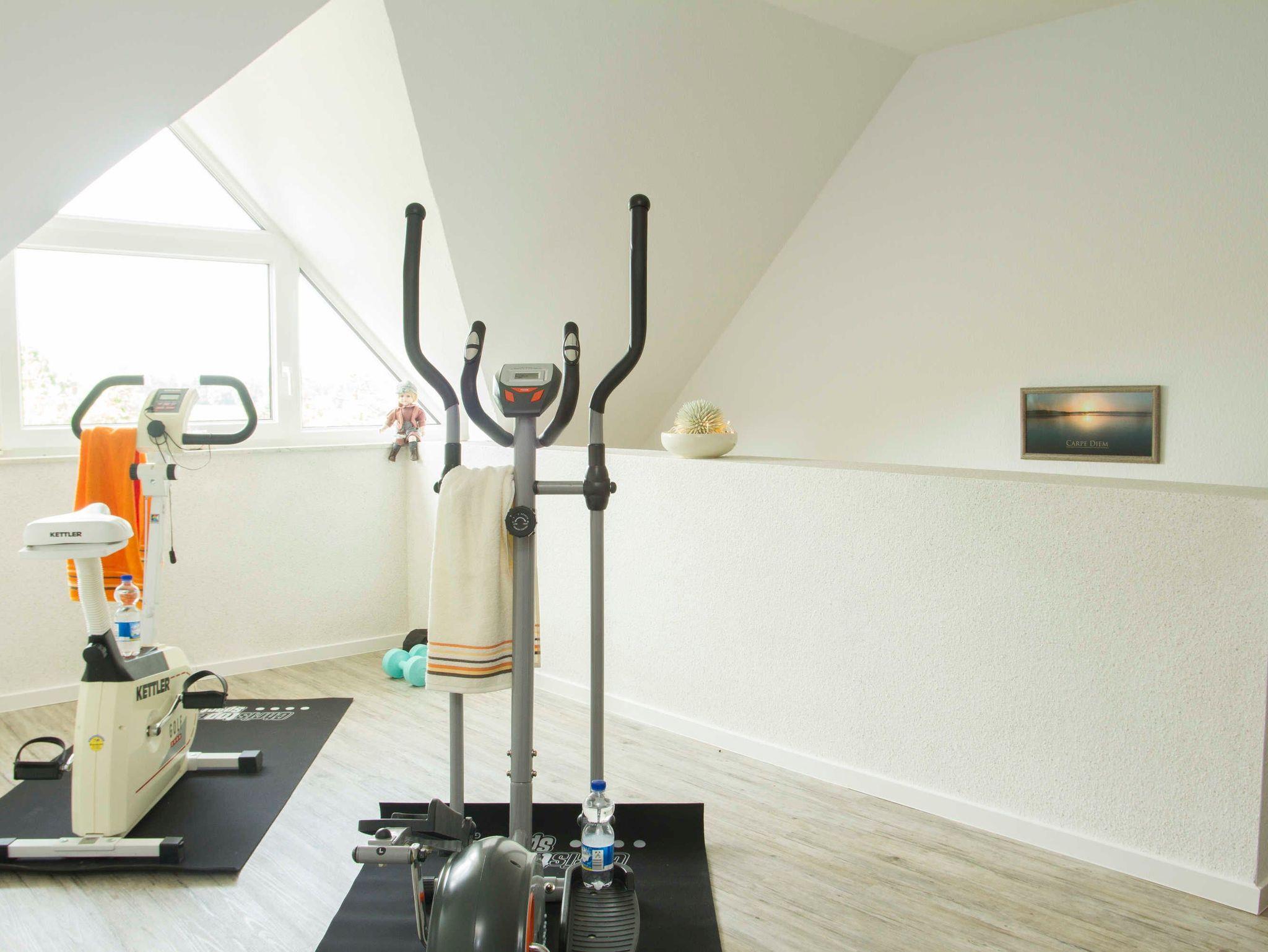 Sollte das Wetter mal typisch Ostfriesisch sein, können Sie gern unseren Fitnessraum im Obergeschoss ausprobieren.
