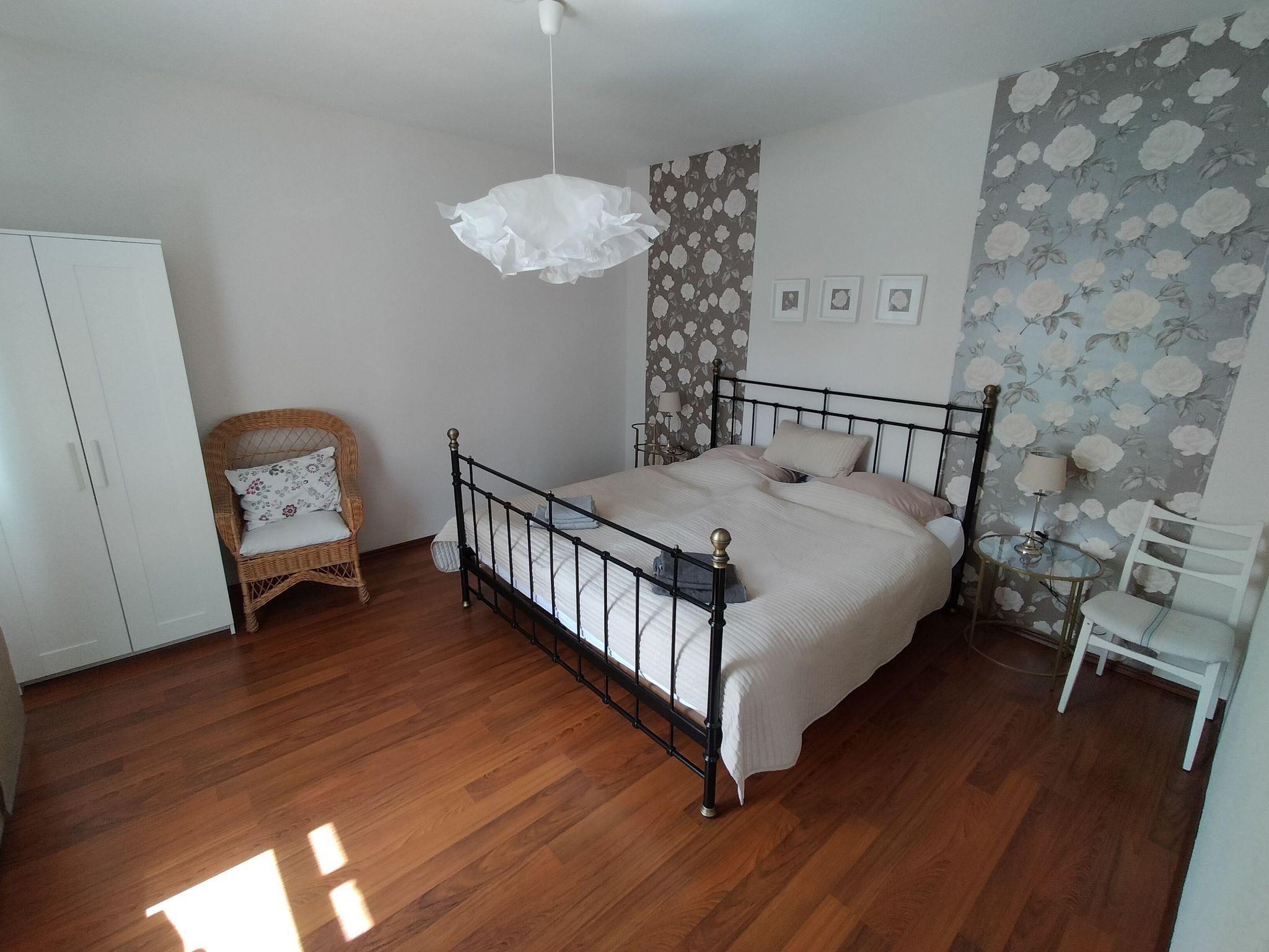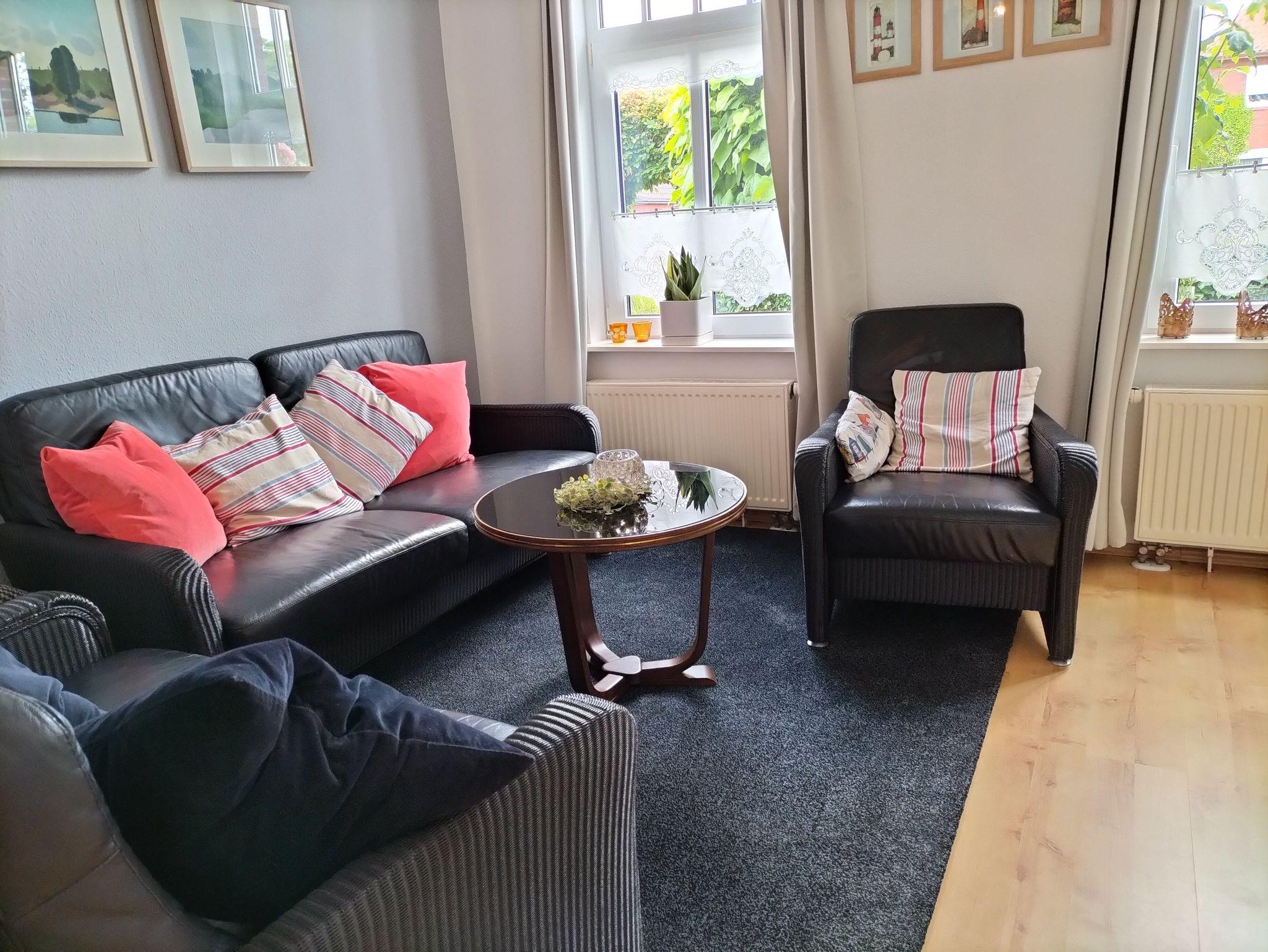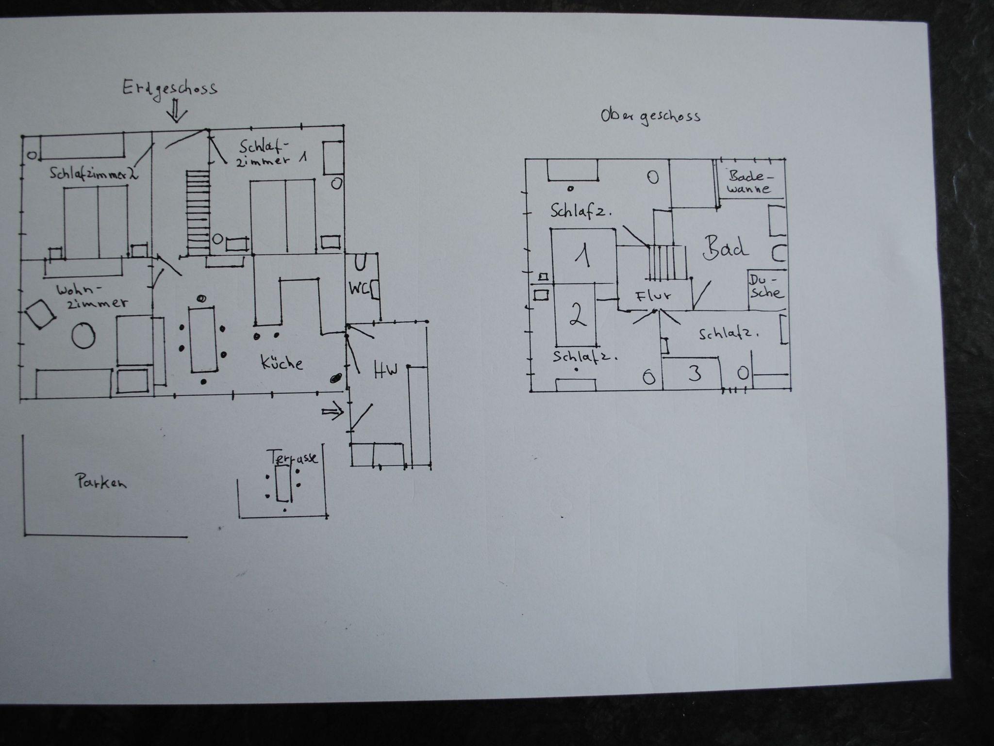Die Wohnung erstreckt sich über 2 Etagen und verfügt über 2 Schlafzimmer mit Doppelbetten im Erdgeschoss. Im Dachgeschoss befinden sich 3 Schlafzimmer mit Einzelbetten. Das große Familienbad befindet sich im Dachgeschoss und verfügt über Badewanne, Dusche und WC. Im Erdgeschoss ist die Küche mit Essplatz und einem extra Wohnzimmer mit TV. Eine Spielesammlung für Spieleabende mit der ganzen Familie steht zur Verfügung.