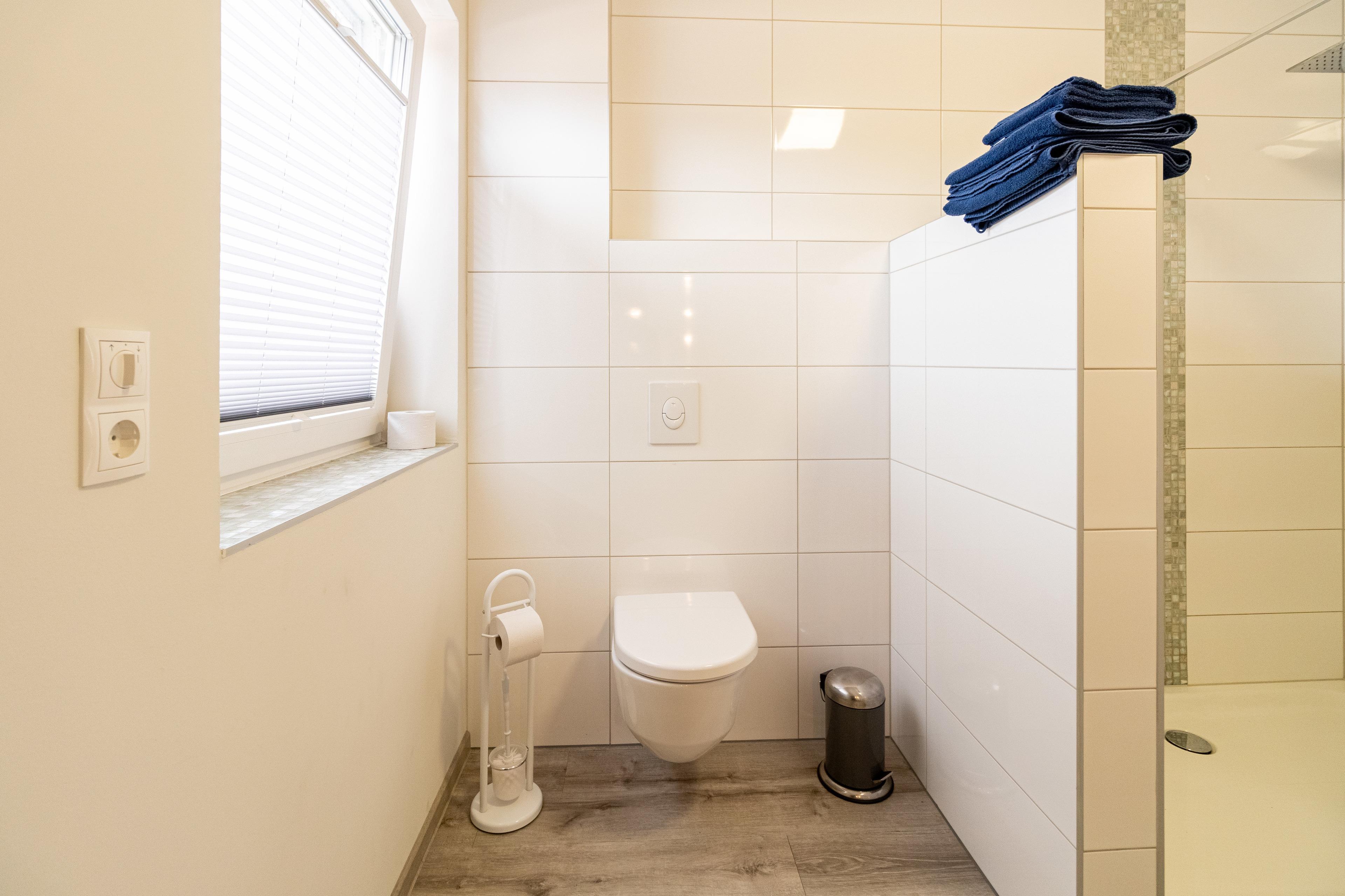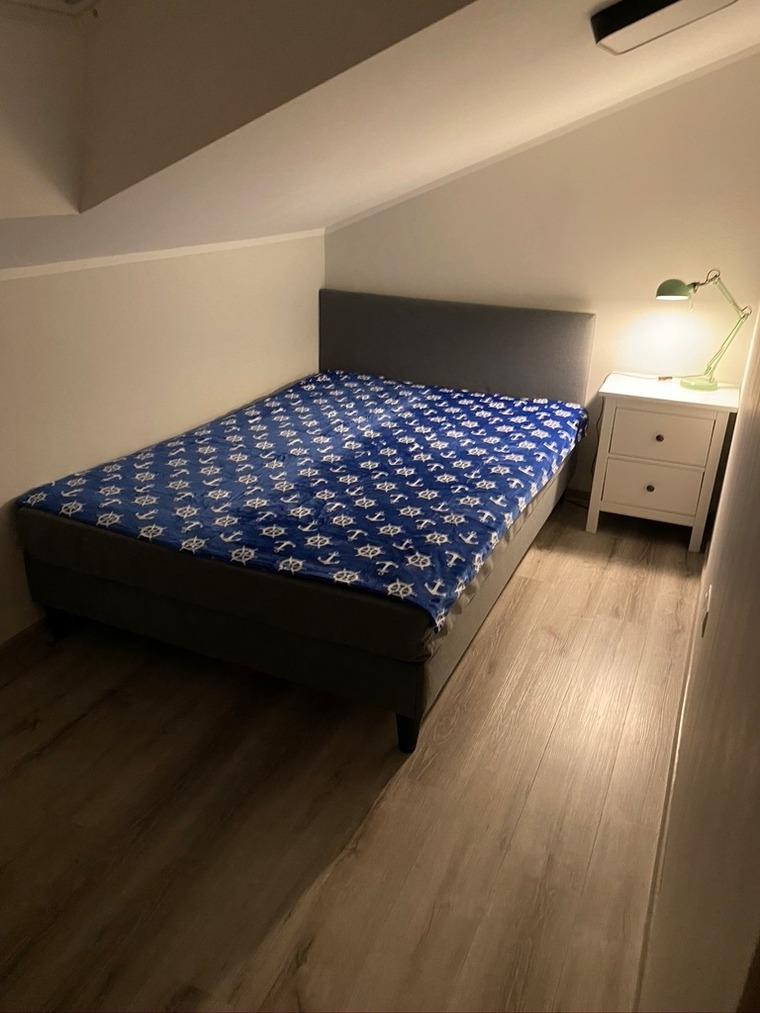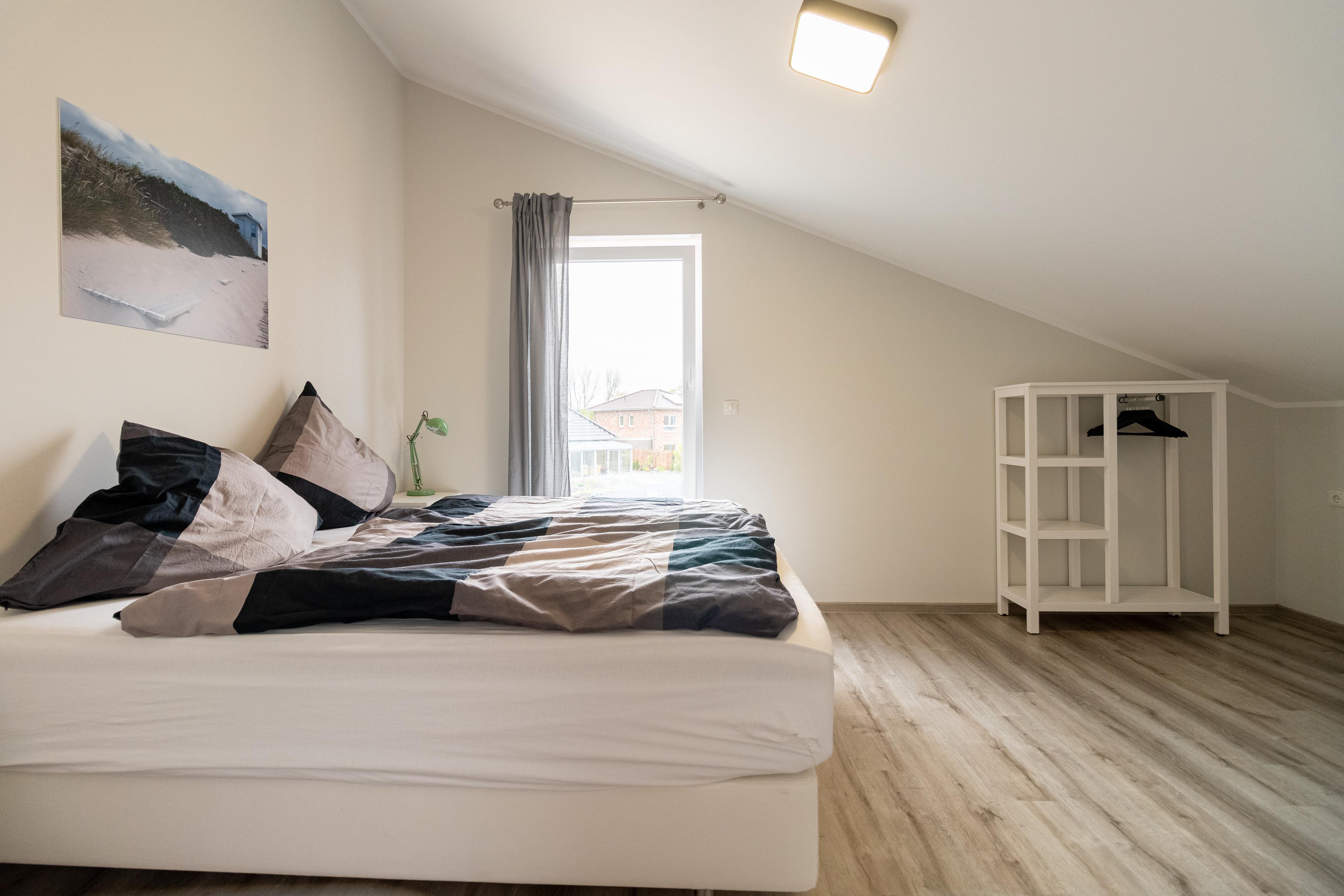 Auf der 2. Ebene befindet sich ein Schlafraum mit Komfortbetten, ein geräumiges Bad mit Fenster, Dusche u. Wanne, ein weiterer Schlafbereich mit Doppelbett, ein weiterer Wohnbereich, Hauswirtschaftsraum mit Waschmaschine und Trockner, Parkplatz am Haus und eine Strand-Fasssauna zur Nutzung nach Absprache auf dem Grundstück.