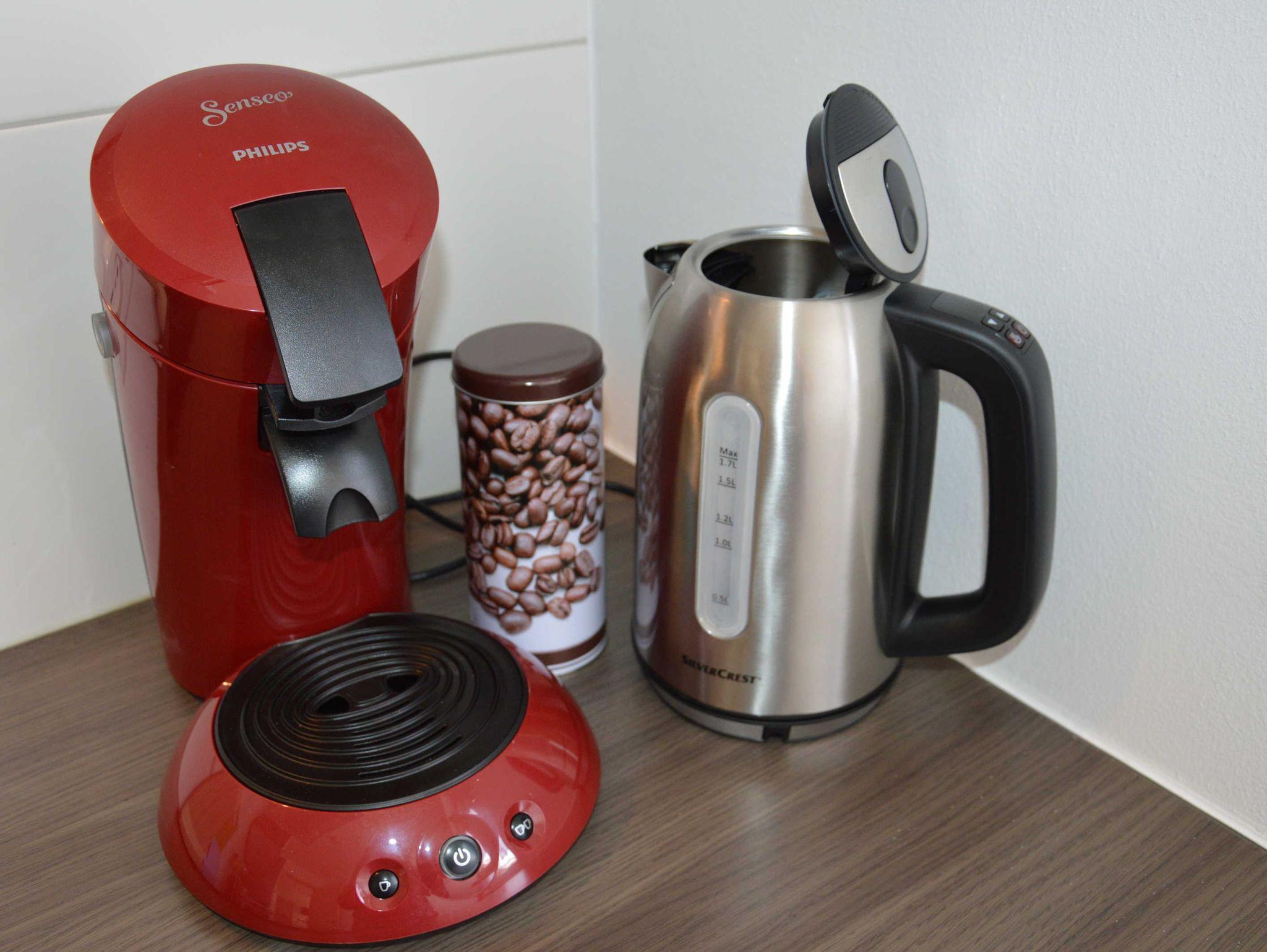 Die separate Küche ist mit Geschirrspüler, Cerankochfeld und Backofen, Kühlschrank mit Gefrierfach, Kaffeepadmaschine, Toaster, Eierkocher, Wasserkocher und dem notwendigen Geschirr ausgestattet.