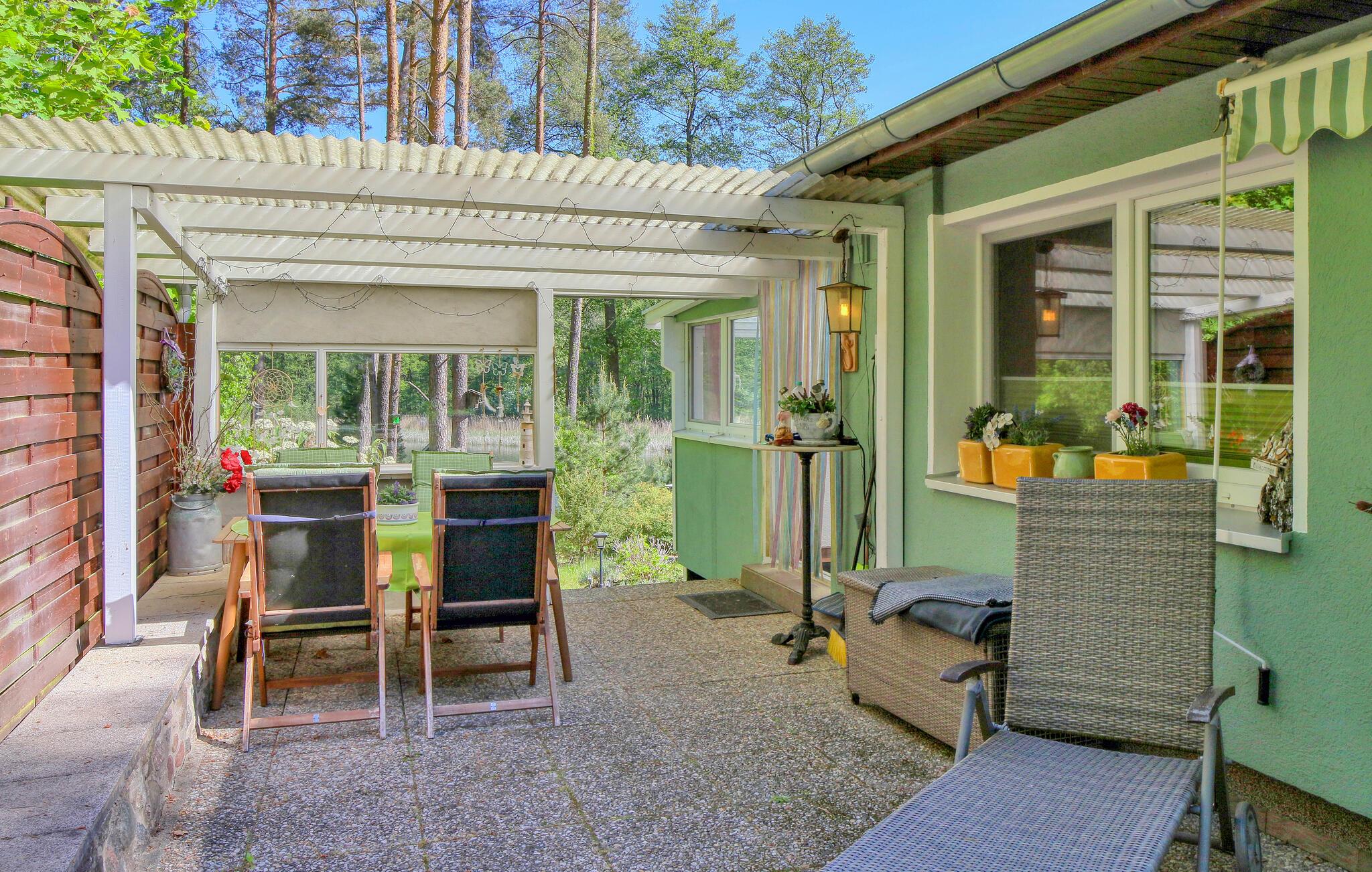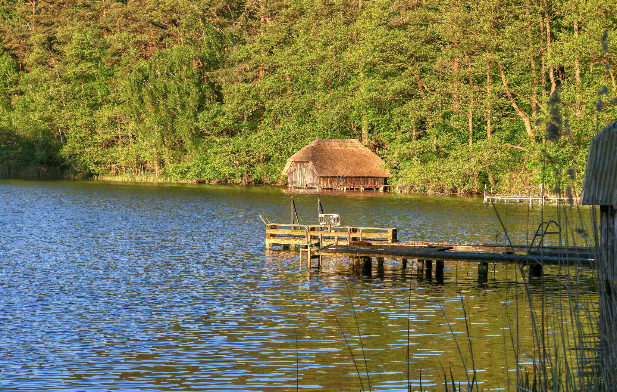 Direkte ved Großer Zechliner See, en af Tysklands reneste søer, lige uden for byen, ligger dette hyggelige feriehus på en separat søejendom på cirka 1200 kvadratmeter (til egen rådighed). En indhegnet, lovpligtig vandresti går tværs over ejendommen, stranden kan nås efter cirka 200 meter.