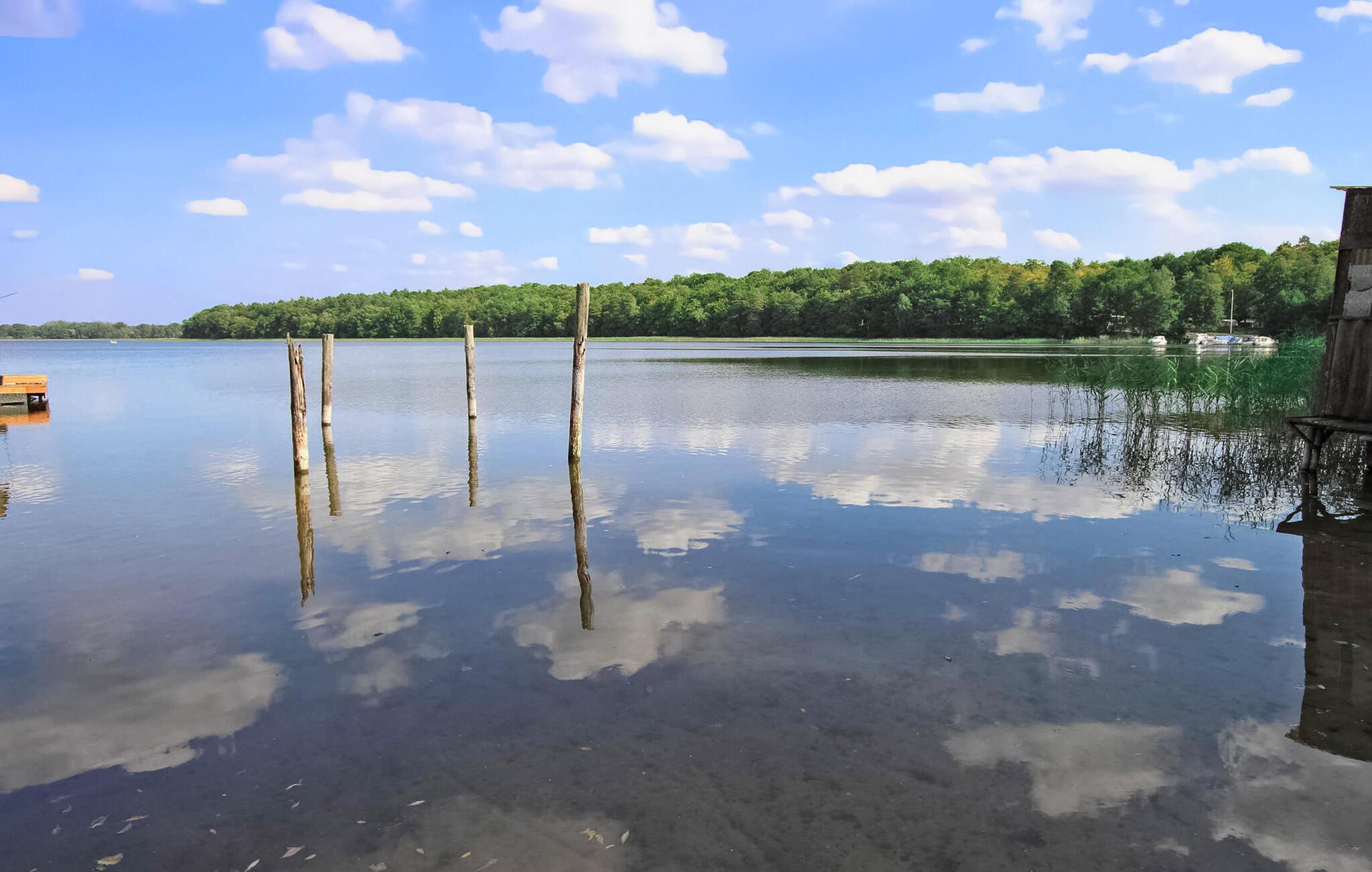 Dette af tre feriehuse er beliggende på en separat, 3000 kvadratmeter stor fritidsejendom i en rolig by- og skovbryns beliggenhed i Warenthin. Kun en uberørt vådområdebiotop adskiller ejendommen fra Rheinsbergsøen. Privat badebro med robåd pr. sommerhus (5 EUR/dag), lille badeområde og restauranter inden for 500 m. Feriehuset er udstyret med: stue (polstrede møbler med sovefunktion, tv, radio, pejs), 1 soveværelse ( dobbeltseng 140x200), 1 lille børneværelse (sovesofa), åbent tekøkken (el-komfur, køleskab med fryser, diverse køkkenmaskiner), bad/WC, el-varme evt. Til rådighed: overdækket terrasse med opholdsområde, grill, 2 simple cykler hver (børnecykel til rådighed). (anmodning), lille legeplads, bålplads, brænde mod betaling, parkeringsplads og cykelparkering. Ejendommen er indhegnet. Slutrengøring og vand er inkluderet i den samlede pris. Betales på stedet: Energi efter forbrug, turistskat, brænde hvis nødvendigt, sengelinned og håndklæder kan medbringes eller lejes. Der er højst tilladt 2 hunde på op til 40 cm i denne ejendom. Kæledyr er ikke tilladt i juli og august eller på helligdage. Warenthin er et lille feriested i et skovområde direkte ved Rheinsberg-søen. I byen, der har restaurant, båd-, kano- og cykeludlejning samt minibutik, er der langt flere ferieboliger end beboelseshuse takket være et stort sommerhuskompleks og en campingplads. De bedste betingelser for vandreture, cykling, fiskeri, vandvandring, svampeplukning og for naturrejsende, der søger fred og ro. Den tidligere boligby Rheinsberg med et seværdigt slot, en kammeropera og talrige seværdigheder ligger cirka 4 km væk.