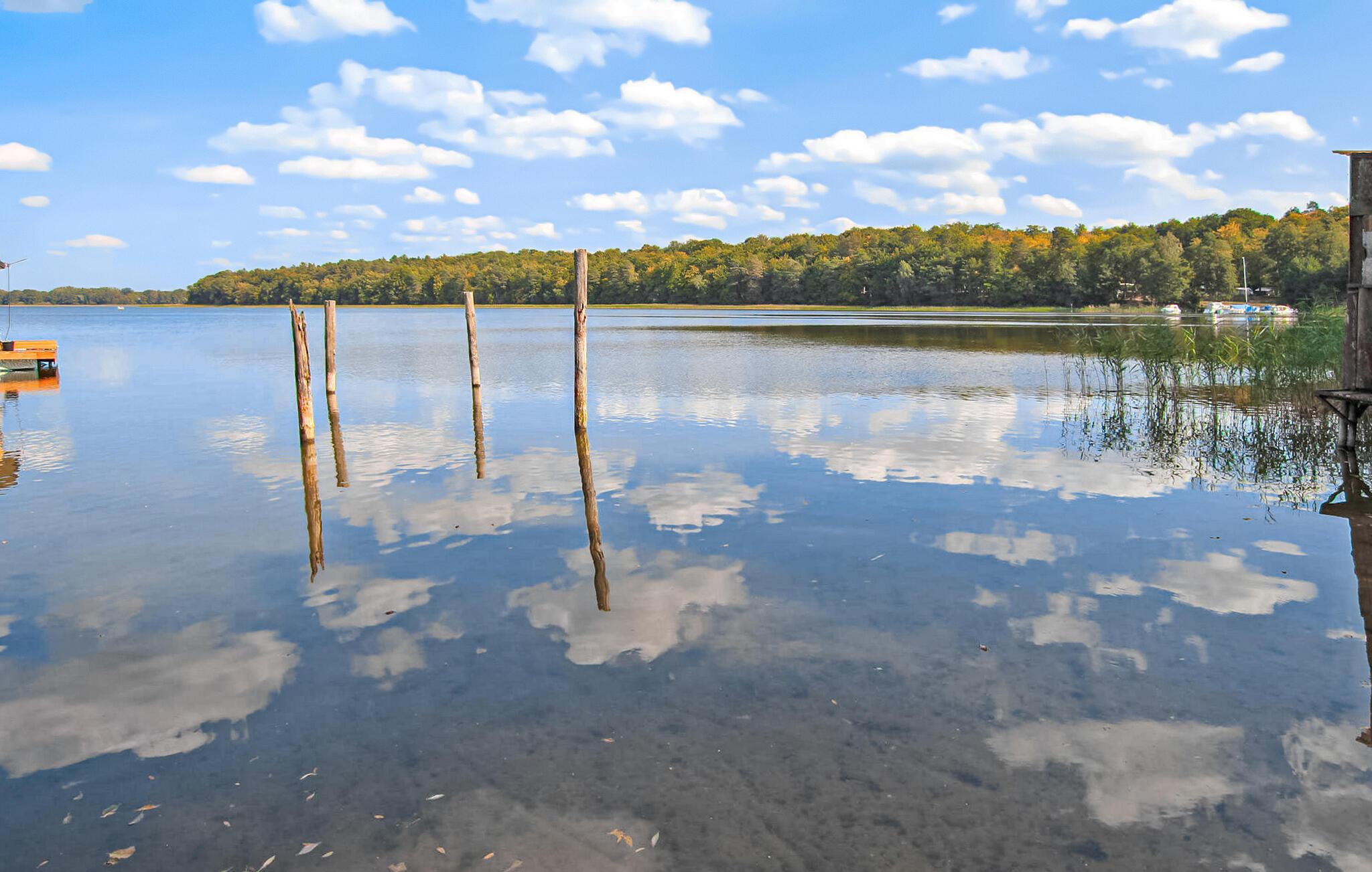 Idyllisk beliggende midt i skoven og mellem to søer - Rheinsberger og Großer Linowsee - er der et rummeligt, indhegnet feriekompleks med flere bungalows. Et badeområde og en kro kan nås efter 4-5 minutters gang. Robåde, motorbåde og kanoer kan lejes her, men du kan også bruge din egen. Butikker og andre spisemuligheder findes i Rheinsberg, cirka 4 km væk. Det enkle, ikke-ryger feriehus i stueplan til 4 personer har en stor stue (polstrede møbler, med en sovesofa til 2 personer, fladskærms-tv, spisebord) med et lille tekøkken (komfur, køleskab med fryserum , nogle med mikroovn, forskellige små køkkenmaskiner). Der er soveværelse (dobbeltseng) og badeværelse (bruser, toilet, hårtørrer), som blev totalrenoveret i 2022, møbleret, overdækket terrasse, insektbeskyttelse på vinduerne og justerbare el-radiatorer.Der er også parkeringsplads, grill , en barneseng efter anmodning, gratis WiFi og en legeplads er til rådighed på stedet. Efter anmodning kan morgenmad eller en rundstykkeservice bruges mod et gebyr. (Tilmeld 1 dag i forvejen!). Den samlede pris inkluderer slutrengøring, sengelinned, håndklæder og vand. Betales på stedet: spa-afgift, el efter forbrug, hvis det ønskes: morgenmad 13,50 EUR pr. person (bestil 1 dag i forvejen!), robåd 15 EUR, motorbåd 95 EUR, kajak eller kano 25 EUR. Kæledyr er tilladt i denne ejendom. Den lille ferieby Warenthin, en bydel i byen Rheinsberg, ligger midt i skoven, idyllisk mellem Rheinsberger og Großer Linowsee. Området rigt på skove og søer i udkanten af Mecklenburg Lake District og i naturparken Stechlin-Ruppiner Land har altid været et populært udflugtsmål og byder på talrige muligheder for en aktiv ferie.Området er særligt attraktivt for vandvandrere, fordi de mange vandområder i regionen er alle forbundet med hinanden. En udflugt i regionens uforstyrrede og rolige natur kan også anbefales for cyklister og vandrere.Der er kro i landsbyen samt udlejning af båd, kano og cykel. Den tidligere boligby Rheinsberg med sit imponerende slotsanlæg, den smukke gamle bydel med talrige restauranter og caféer, mange butikker, passagerbådsservice og badeanstalten ved søen Grienericksee ligger cirka 4 km væk.