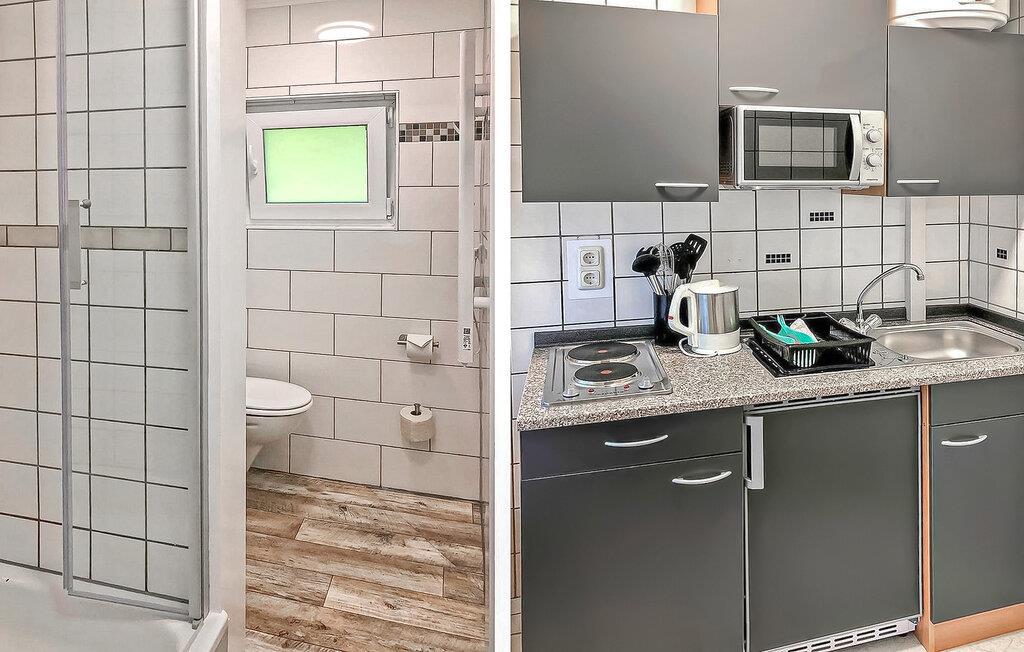 Idyllisk beliggende midt i skoven og mellem to søer - Rheinsberger og Großer Linowsee - er der et rummeligt, indhegnet feriekompleks med flere bungalows. Et badeområde og en kro kan nås efter 4-5 minutters gang. Robåde, motorbåde og kanoer kan lejes her, men du kan også bruge din egen. Butikker og andre spisemuligheder findes i Rheinsberg, cirka 4 km væk. Det enkle ikke-ryger sommerhus i stueplan til 2 personer har en stor stue (polstrede møbler, fladskærms-tv, spisebord) med et tilstødende køkkenområde (komfur, køleskab med fryser, diverse små køkkenmaskiner). Der er et soveværelse (dobbeltseng) og et badeværelse (bruser, toilet, hårtørrer), som blev fuldstændig renoveret i 2022. Der er møbleret, overdækket terrasse, insektnet på vinduerne og justerbare el-radiatorer Parkering, grill, barneseng på forespørgsel, gratis Wi-Fi og legeplads er også til rådighed på stedet. Efter anmodning kan morgenmad eller en rundstykkeservice bruges mod et gebyr. (Tilmeld dig 1 dag i forvejen!). Den samlede pris inkluderer slutrengøring, sengelinned, håndklæder og vand. Betales på stedet: spa-afgift, el efter forbrug, hvis det ønskes: morgenmad 13,50 EUR pr. person (bestil 1 dag i forvejen!), robåd 15 EUR, motorbåd 95 EUR, kajak eller kano 25 EUR. Kæledyr er tilladt i denne ejendom. Den lille ferieby Warenthin, en bydel i byen Rheinsberg, ligger midt i skoven, idyllisk mellem Rheinsberger og Großer Linowsee. Området rigt på skove og søer i udkanten af Mecklenburg Lake District og i naturparken Stechlin-Ruppiner Land har altid været et populært udflugtsmål og byder på talrige muligheder for en aktiv ferie.Området er særligt attraktivt for vandvandrere, fordi de mange vandområder i regionen er alle forbundet med hinanden. En udflugt i regionens uforstyrrede og rolige natur kan også anbefales for cyklister og vandrere.Der er kro i landsbyen samt udlejning af båd, kano og cykel. Den tidligere boligby Rheinsberg med sit imponerende slotsanlæg, den smukke gamle bydel med talrige restauranter og caféer, mange butikker, passagerbådsservice og badeanstalten ved søen Grienericksee ligger cirka 4 km væk.