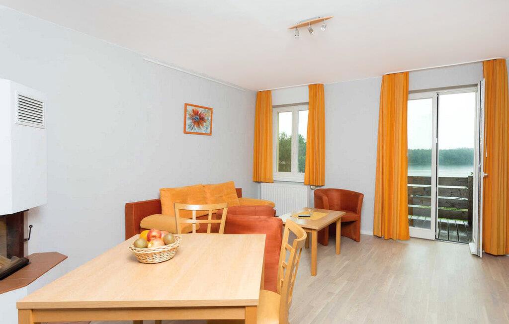 Feriekomplekset med i alt ti separate ferielejligheder i forskellig størrelse til to til seks personer ligger direkte ved søen Grienericksee, cirka 500 meter fra Rheinsberg Slotspark, på en cirka 1.100 kvadratmeter stor grund med eget wellnessområde. De er komfortabelt indrettede (sidde- og spiseplads, køkken, nogle med pejs, fladskærms-tv, WiFi), tilgængelige med elevator og har alle balkon eller terrasse med udsigt over søen. Lejligheden ligger på 1. sal. Det er 60 m² stort og er ideelt for par eller familier med et barn. Det har en rummelig opholdsstue (polstrede møbler med sovefunktion, fladskærms-tv, hi-fi, spisebord, pejs), et åbent tekøkken (elkomfur med ovn, køleskab med fryser, opvaskemaskine, mikroovn, diverse køkkenmaskiner) , et soveværelse (dobbeltseng) og bad/toilet. Der er også balkon med udsigt over søen. Ejendommen har: egen bådhavn, fiskedam med hyggeligt læsehjørne, græsplæne, sandkasse, bordtennisbord, plads nok til at lege, grillplads til grill, cykelkælder og parkeringspladser. I vores eget wellnessområde kan flere saunaer eller massagetilbud (reservation nødvendig) benyttes mod betaling. Desuden: leje af cykler (6 EUR/cykel/dag) og brug af vaskerum med vaskemaskine og tørretumbler Inkluderet i totalprisen: slutrengøring, sengelinned, håndklæder, vand og energi. Betales på stedet: turistskat, brug af sauna, massage, cykeludlejning. Rygning er kun tilladt udendørs. Den lille by Rheinsberg er et statsanerkendt feriested midt i det smukke Rheinsberg-sølandskab i Brandenburg. Regionen imponerer med utallige søer, der er forbundet med hinanden med kanaler. Et ideelt feriested, ikke kun for vandvandrere. Takket være den preussiske kronprins Friedrich, der residerede i rokokoslottet i Rheinsberg i 1700-tallet, blev stedet et blomstrende kulturcenter og inspirerede blandt andre Kurt Tucholsky og Theodor Fontane. I dag finder Kammeroperafestivalen og andre musikbegivenheder sted hvert år på slottets område, som også omfatter et teater, kammeroperaen og Kurt Tucholsky-museet. Udover den attraktive gamle bydel med talrige restauranter og caféer, er byens besøgsmagneter blandt andet passagerbådture, båd- og cykeludlejning og en badeanstalt ved søen Grienericksee. Forbindelse til langdistancecykelstien Berlin-København er 20 km væk.
