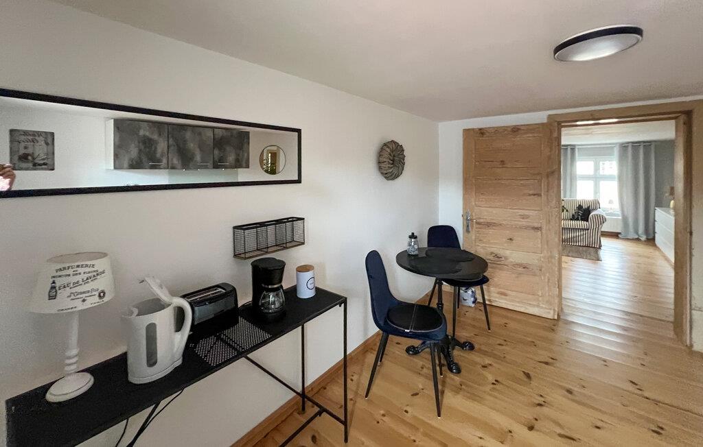 Midt i den charmerende gamle bydel, kun få skridt fra Rheinsberg Slot og Rheinsberg-søen, er der to ferielejligheder til hhv. 2 voksne i en stille sidegade i stueetagen og øverste etager i en nænsomt renoveret bindingsværkshus fra 1870. I Restauranter, caféer, bagerier, dampskibsmolen og diverse indkøbsmuligheder findes i umiddelbar nærhed.