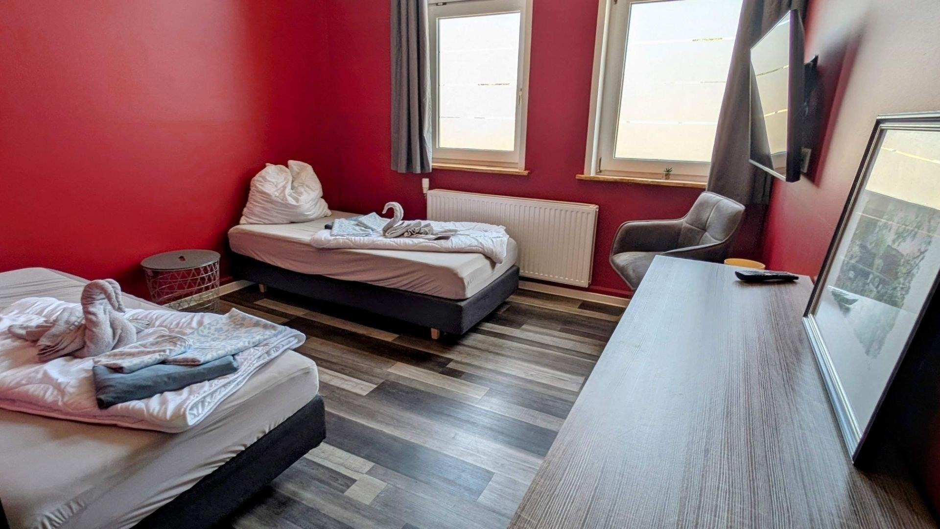 Die Unterkunft verfügt über vier separate Zimmer, jedes mit zwei Betten, eigenem Duschbad und TV ausgestattet. Bei Bedarf ist eine Aufbettung möglich. Kostenfreies W-LAN steht in der gesamten Wohnung zur Verfügung und sorgt für eine zuverlässige Verbindung ob zum Arbeiten, Streamen oder Planen von Ausflügen.
