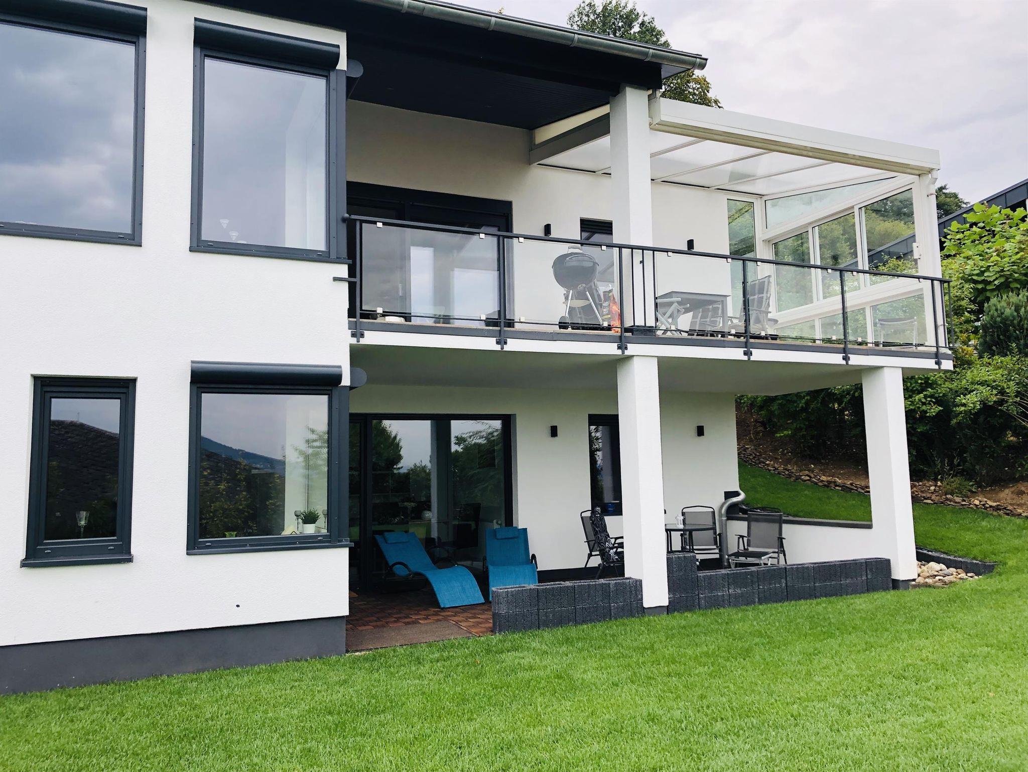 In dem 2019/2020 komplett sanierten Haus in ruhiger Lage in direkter Nähe zum Wald befinden sich unsere Ferienwohnungen Rheinpanorama und Wolfsdelle. Wanderungen der Traumpfade kann man direkt vom Haus aus starten.