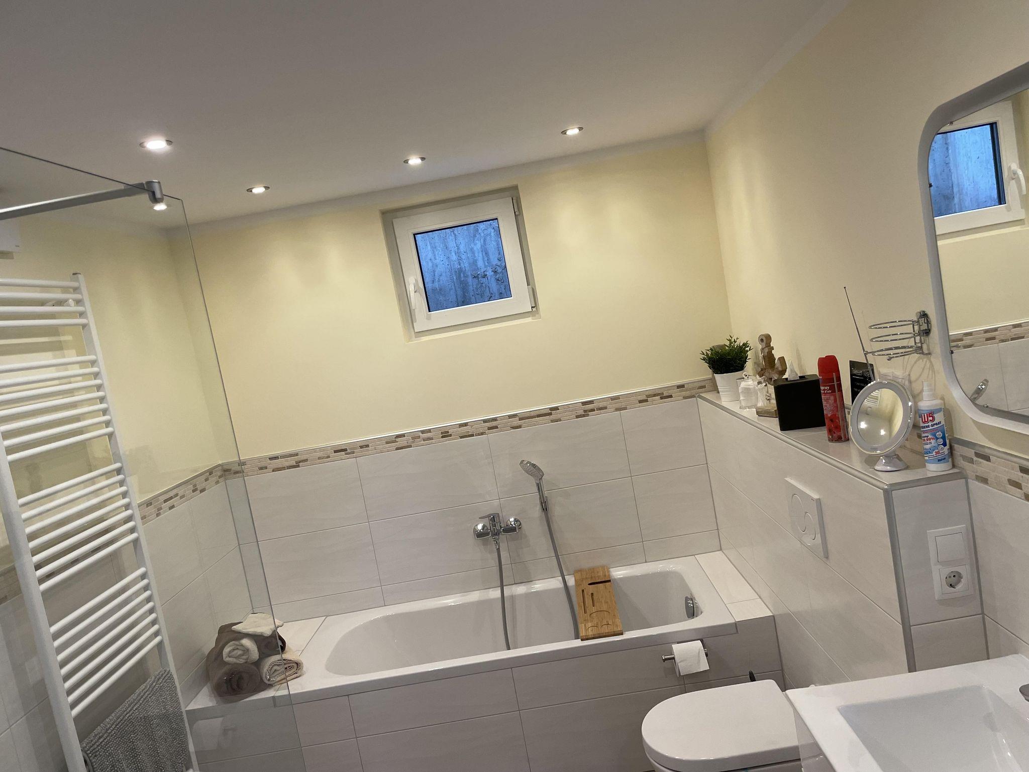 Die Wohnung verfügt über ein separates Schlafzimmer. Ein Beistellbett/ Kinderbett können Sie auf Nachfrage erhalten.Das Badezimmer ist mit einer großzügigen ebenerdigen Dusche und einer Badewanne ausgestattet und bietet somit viel Raum für Wellness und Entspannung. Der angrenzende Gemeinschaftsgarten mit separater Grillecke ist direkt von der Terrasse zu erreichen.