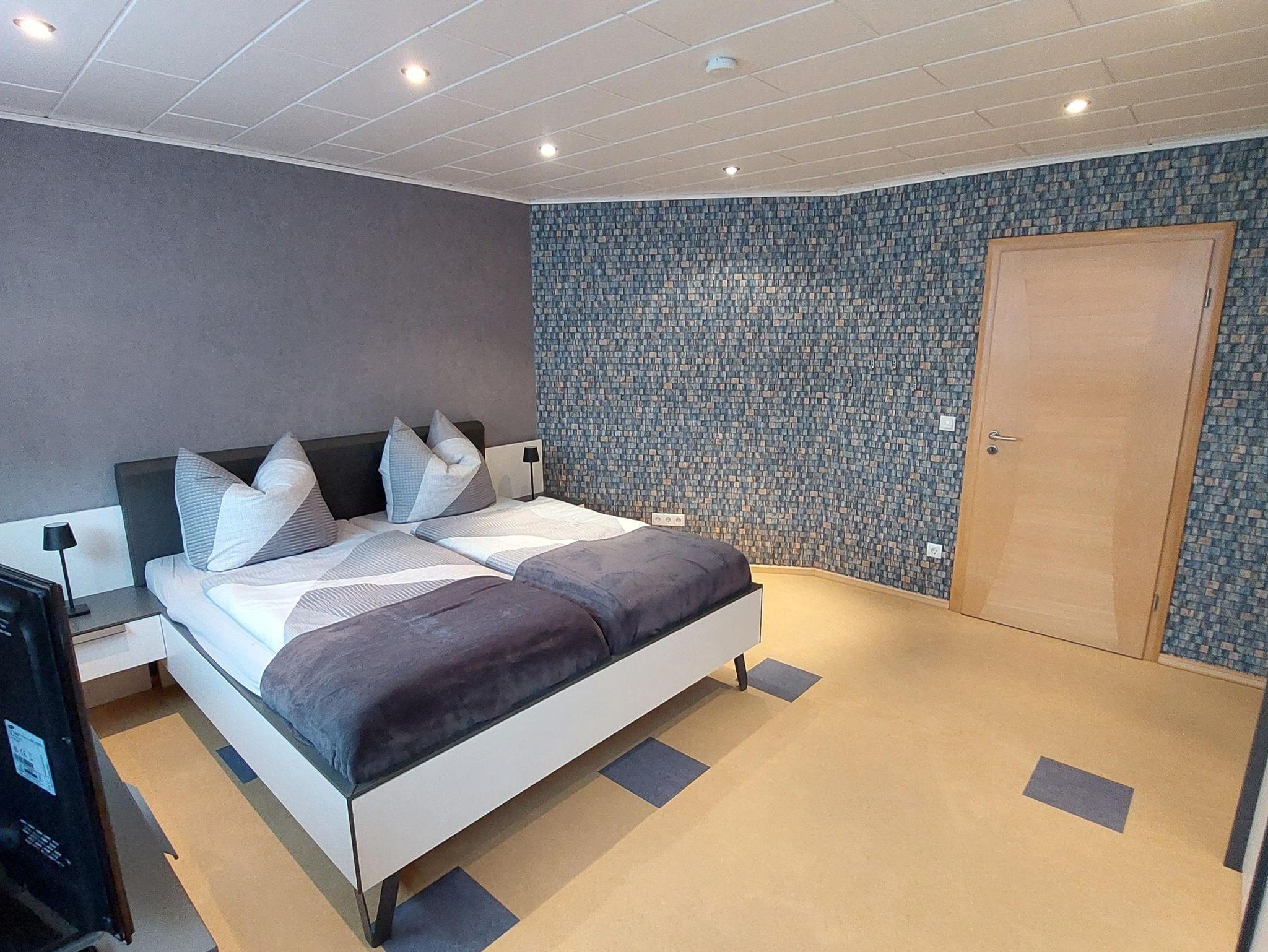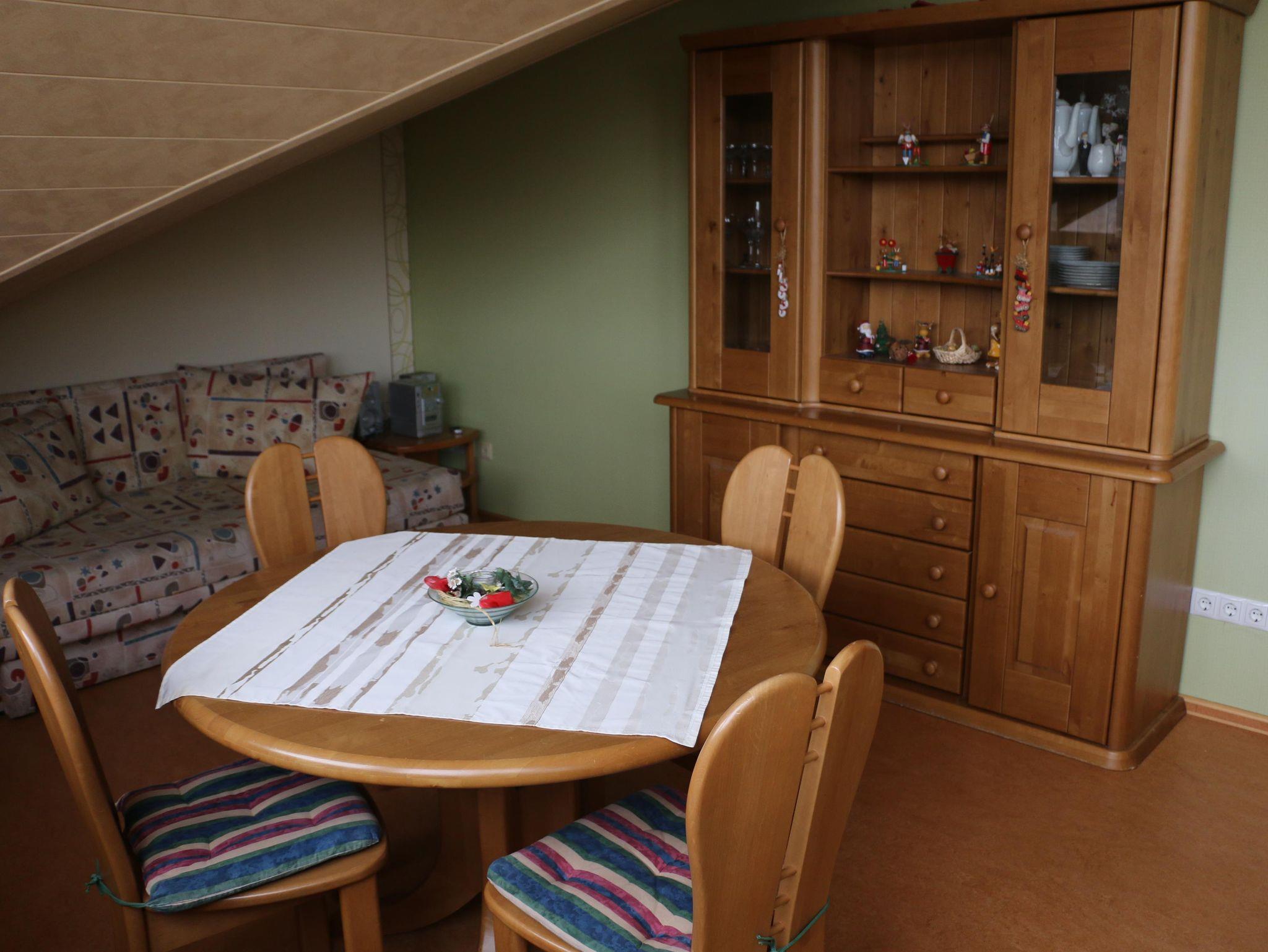 Unsere Ferienwohnung liegt im 2. Stock und besteht aus einem großen Wohnzimmer mit Flachbild-TV und zwei verschiedenen Essgelegenheiten, einer voll ausgestatteten Küche, zwei Schlafzimmern (Doppelschlafzimmer mit 1,80 m-Doppelbetten und einen zweiten Fernseher, Einzelschlafzimmer mit 0,90 x 2.00 m Bett), großes Badezimmer mit Badewanne & Dusche sowie einem Gäste-WC. Die Ferienwohnung verfügt über kostenlosen Internetanschluss WLAN. Damit Sie von der Bahnlinie nicht gestört werden, sind alles Fenster mehrfach verglast.