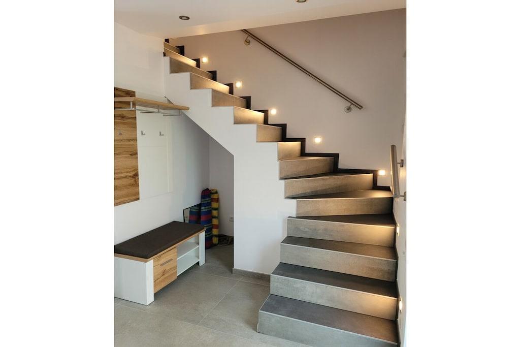 Vores feriehus er hyggeligt, rummeligt og luksuriøst, nybygget og ideelt egnet til fire personer på 81 kvadratmeter boligareal. Et stort køkken med spiseplads og gulv-til-loft-vinduer, to soveværelser, et gæstetoilet, et stort badeværelse og en udendørs sauna tilbyder alt, hvad du behøver for et afslappende og forfriskende ophold! Flere terrasser og siddeområder ved søen inviterer dig til at blive hængende. Perfekt til ferier og udflugter som par, med venner eller som familie!