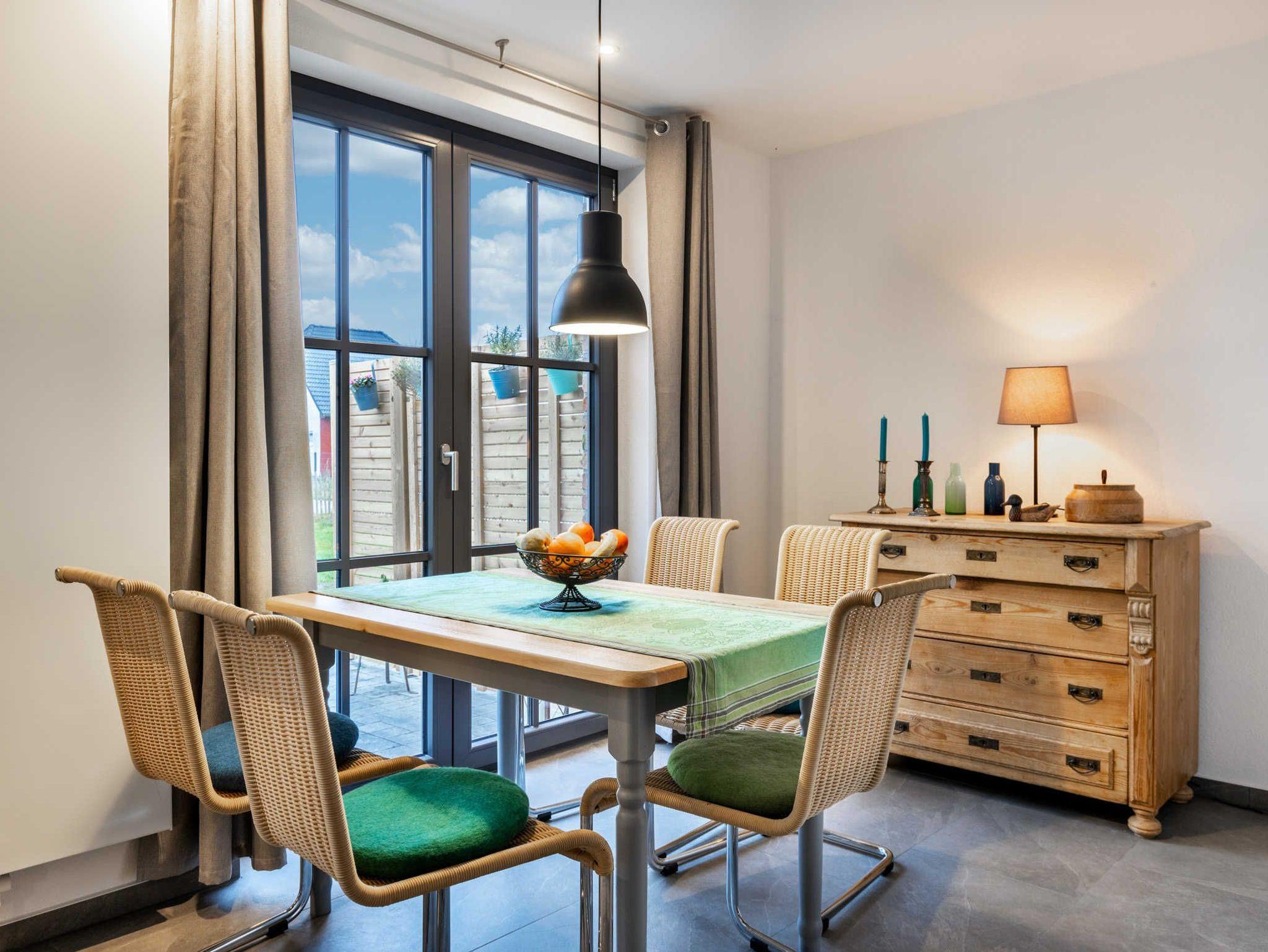 Modern und stilvoll eingerichtetes Reihenferienhaus mit 85qm Wohnfläche, einer großzügigen Sonnenterrasse und einem separaten abgeschlossenen und einzäunten Gartengrundstück. Das Haus bietet auf zwei Ebenen viel Raum für einen erholsamen Ostseeurlaub und besticht durch seine charmante Verbindung aus modernem Komfort, kombiniert mit stilvollen antiken Einzelstücken.