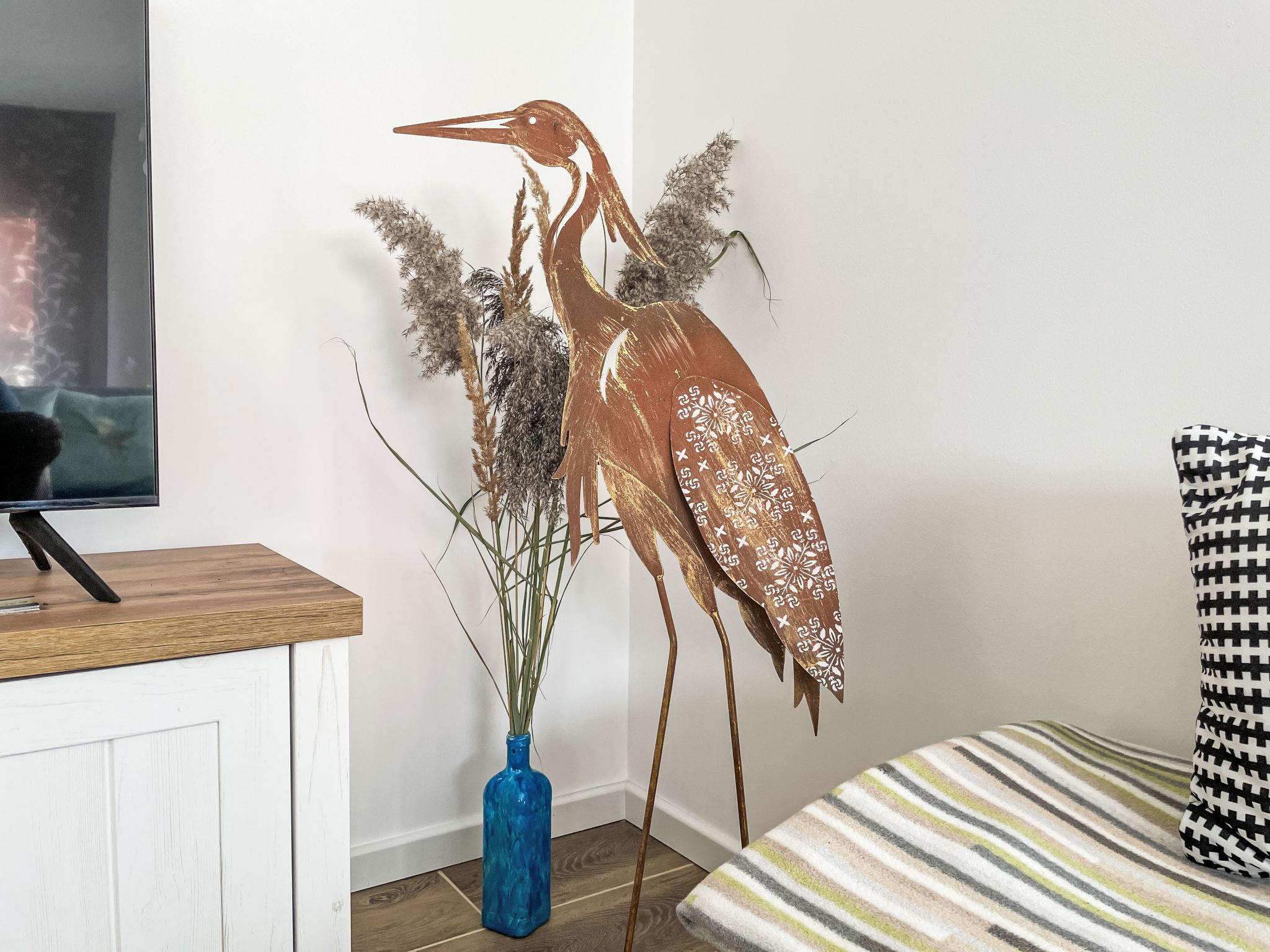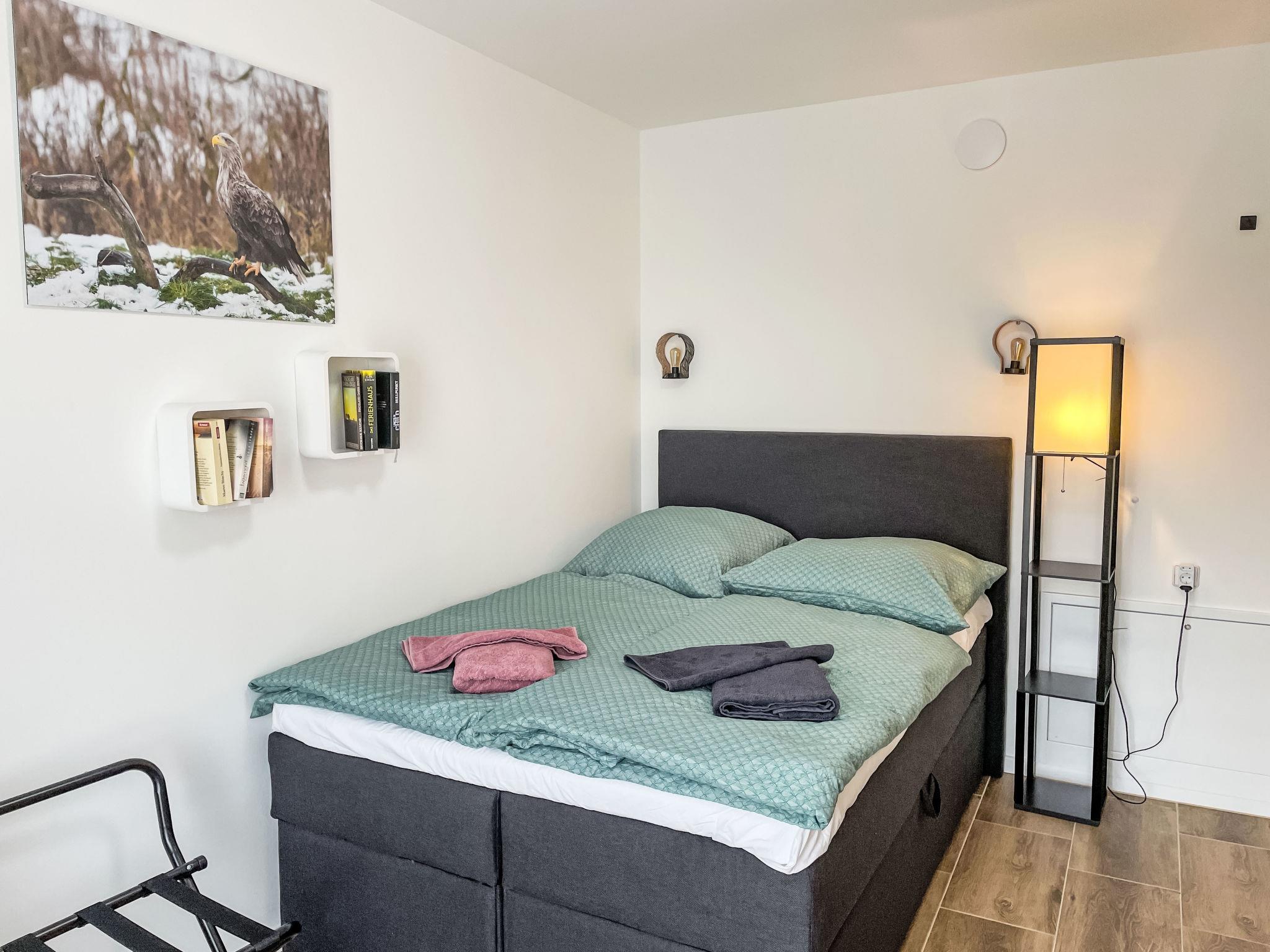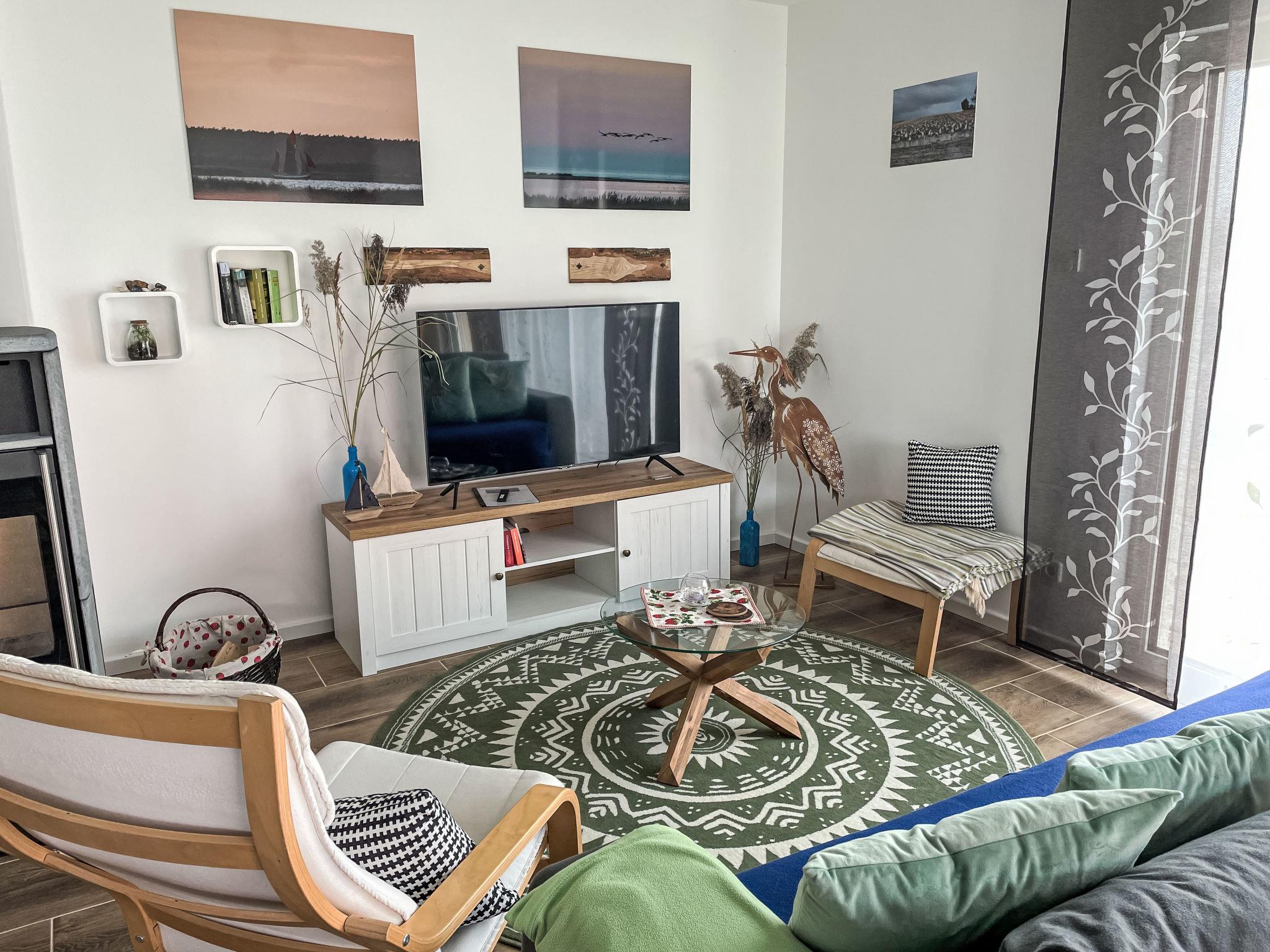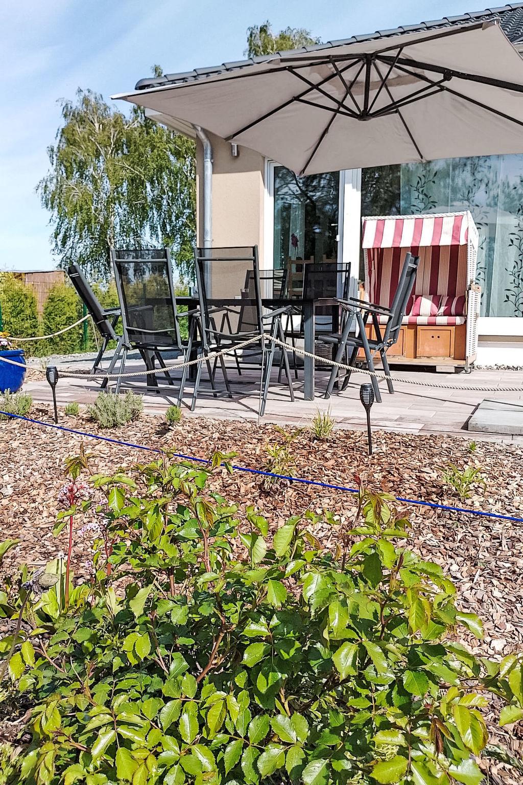Beautiful, cosy bungalow "Der kleine Kranich", built in 2024, surrounded by meadows and fields. In the district of Neuendorf 2.5 km from the centre of Neuendorf-Heide, 8.5 km from the centre of Lüdershagen, 14 km from the centre of Ribnitz-Damgarten, in the residential district, 26 km from the sea, 200 m from the lake, 200 m from the beach. Private: garden with flowers and trees. In the complex: storage room for bicycles. Parking on the premises. Shop 12 km, supermarket 10.5 km, restaurant 4 km, bus stop "Neuendorf" 150 m, railway station "Ribnitz-Damgarten" 12 km, grass beach "Saaler Bodden" 200 m, thermal baths "Bodden Therme" 15 km, lake Saaler Bodden 200 m. Sports harbour 200 m, cycle lane 20 m. Nearby attractions: Kloster Ribnitz 15 km, Bernsteinmuseum 15 km, Stralsund 40 km. Hiking paths: Fischland Darß Zingst 10 km. Please note: car recommended. There is a beach chair and a herb garden.