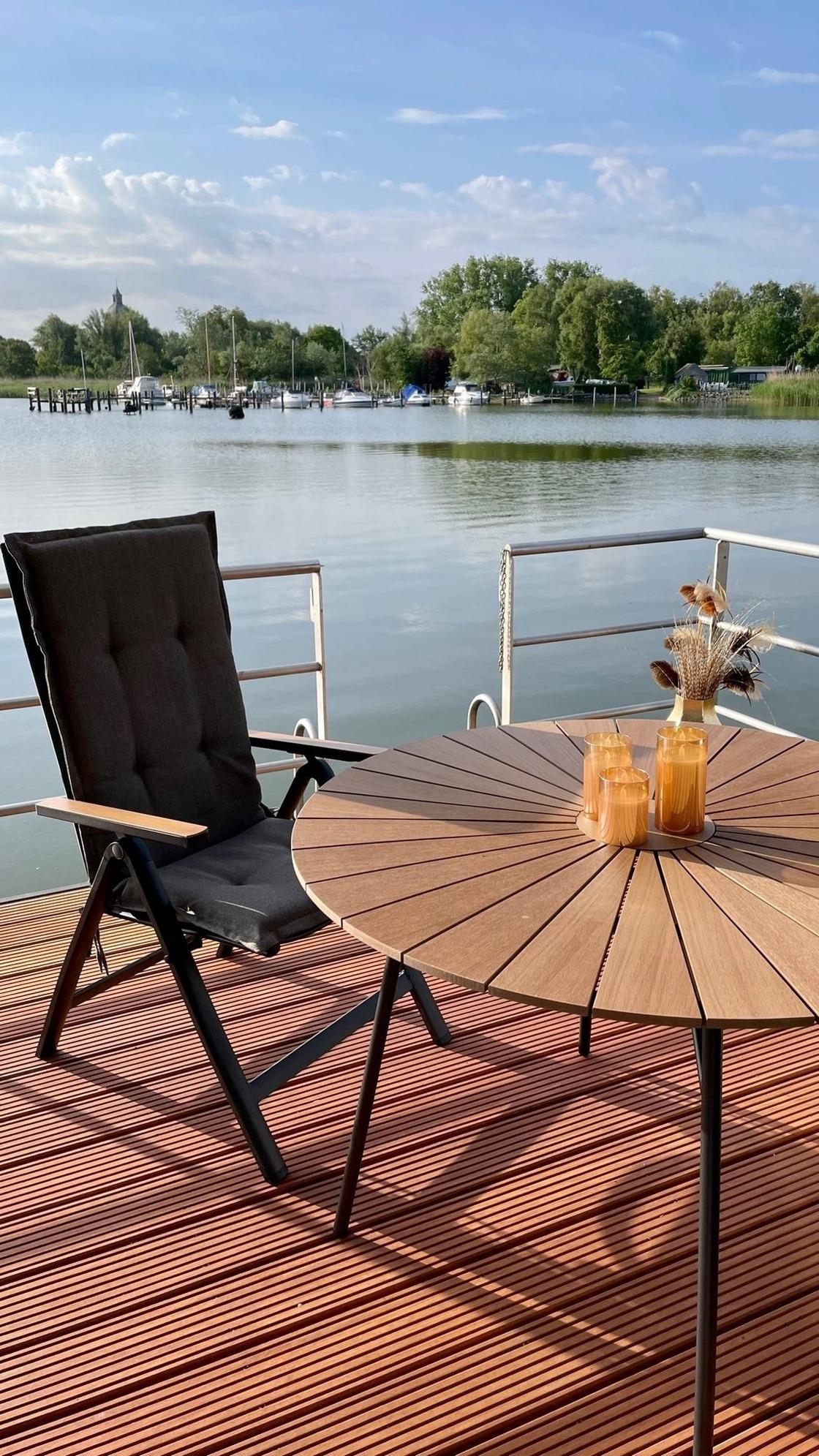 Aus dem Wohn- und Essbereich gelangen Sie auf die Terrasse. Hier können Sie Ihre Mahlzeiten genießen. Auf der Dachterrasse kann man sehr gut entspannen und die Seele baumeln lassen. Erleben Sie das Gefühl von Freiheit auf dem Wasser!