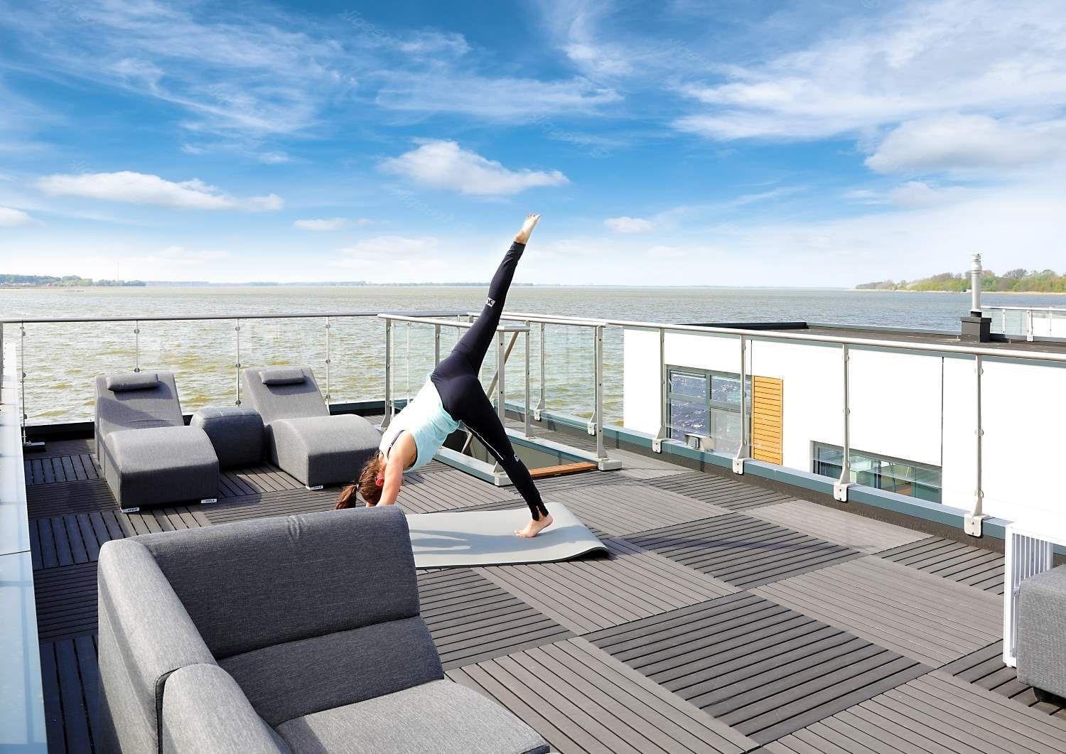 Abtauchen vom Alltag kann so einfach sein! Fest verankert auf den Wellen treibend bietet die Bernstein Suite mit einer komplett und hochwertig ausgestatteten Wohnfläche (84 m²) und zwei Sonnenterrassen (62 m²), alles was das Herz begehrt.
