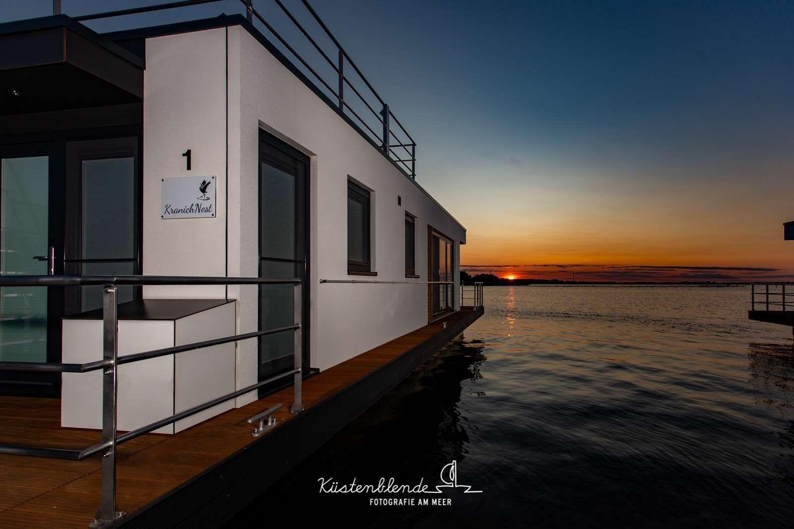 Und zu guter Letzt: Das Schwimmhaus hat seinen festen Liegeplatz an der Boddenküste mit Blick weit weit raus über den Bodden Richtung Westen: Die Sonnenuntergänge warten also auf Dich. Das KranichNest liegt zudem in unmittelbarer Bademantel-Nähe zur Boddentherme Ribnitz-Damgarten. Somit bist Du bestens gerüstet, auch für Tage, an denen der Küstenwind mal kräftig bläst.