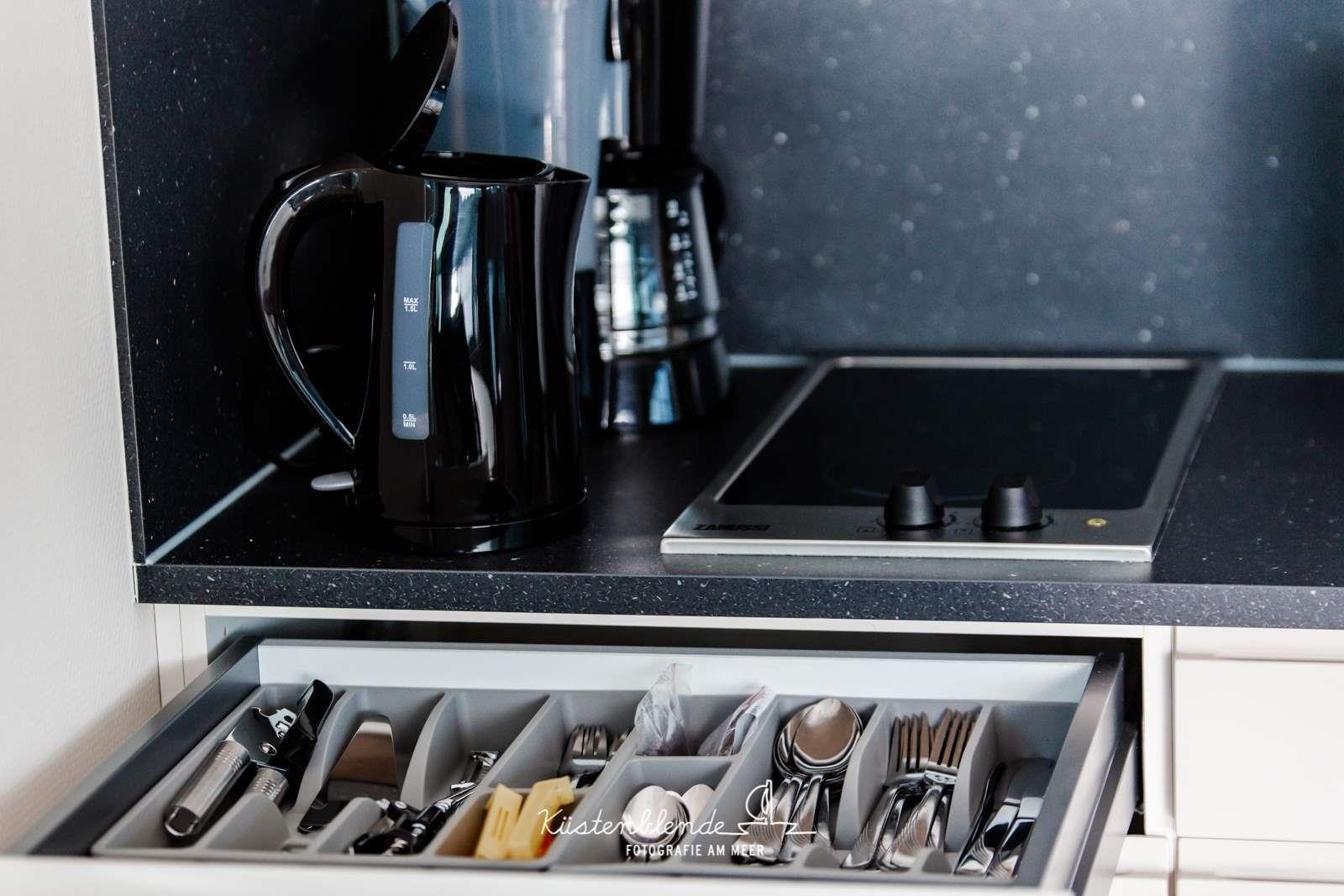 - großzügiger Wohn- und Essraum und voll ausgestatteter Wohnküche (incl. Kühlschrank mit Frostfach, Ceranfeld, Geschirrspüler, Mikrowelle, Kaffeemaschine, Toaster, Wasserkocher, Geschirr, Besteck etc.